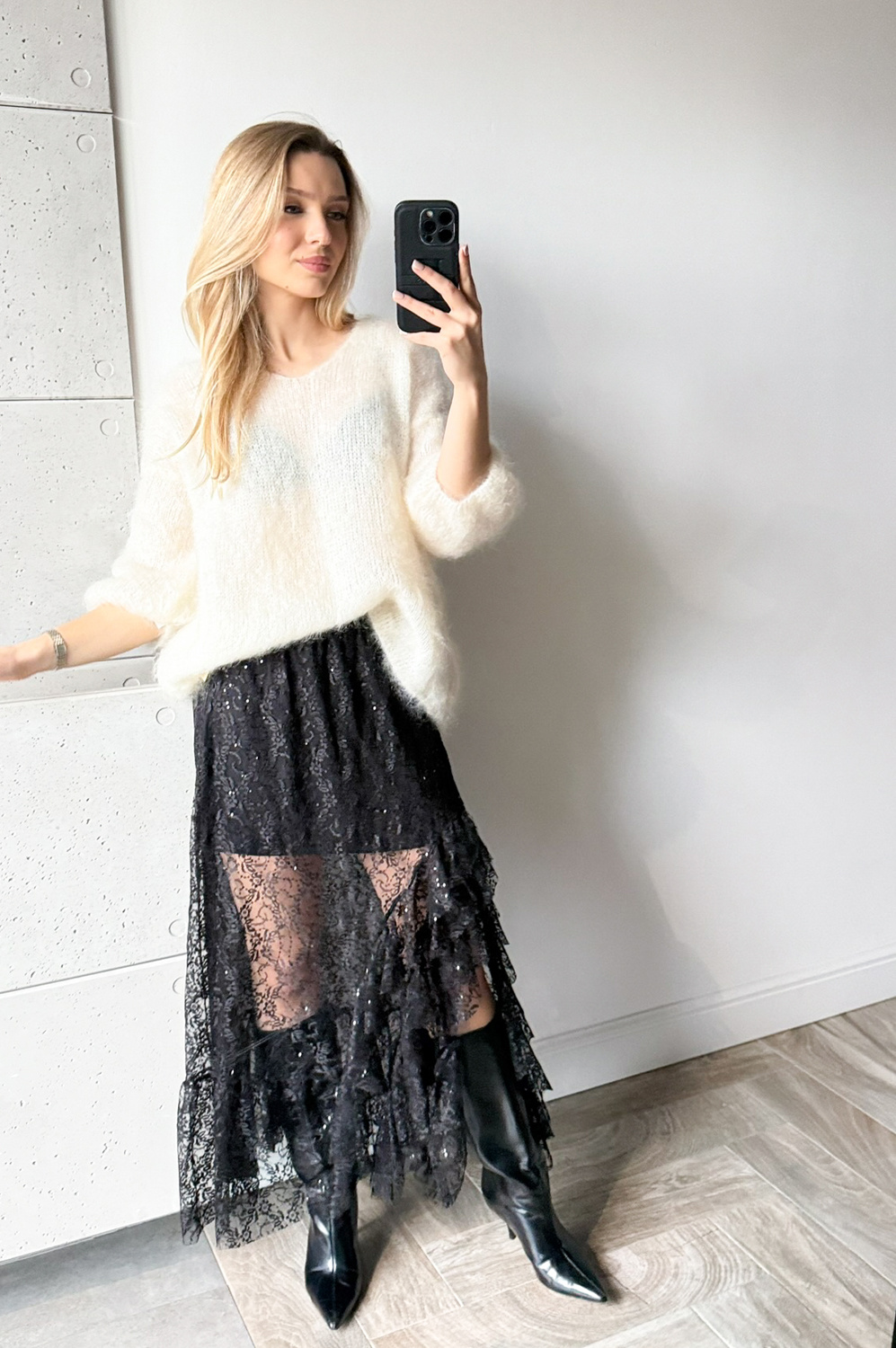 Spódniczka SPÓDNICA CEKINOWA OLLE czarna179.00 zł Najniższa cena towaru, która obowiązywała w okresie 30 dni przed zastosowaniem obniżki: 179.00 zł Opis Spódnica cekinowa koronka, z rozporkiem falbaniastym, spód podszewka, całość ściągnięta gumką w pasie. WYMIARY: długość 94cm.szerokość w pasie 72-104cm ,biodra do 110 cm,dłigość podszewki 36 cm Pasuje na S/M/L SKŁAD: 100% polyester
