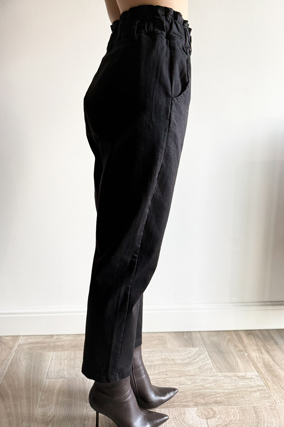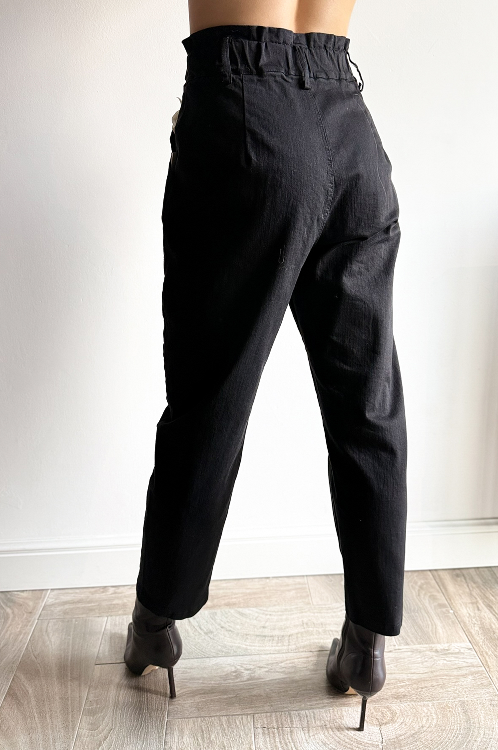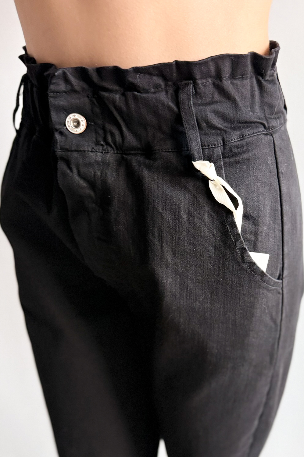 Spodnie WIYA BAWEŁNIANE czarne179.00 zł Najniższa cena towaru, która obowiązywała w okresie 30 dni przed zastosowaniem obniżki: 179.00 zł Opis Spodnie włoskiej marki Wiya, wykonane z bawełny. W pasie posiadają gumę. długość S-M 95 cm,pas 68 do 86