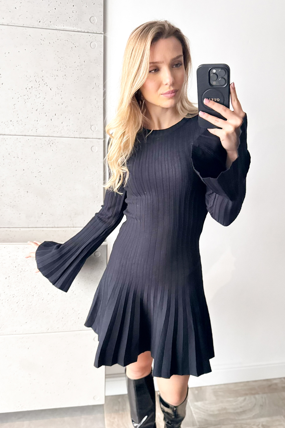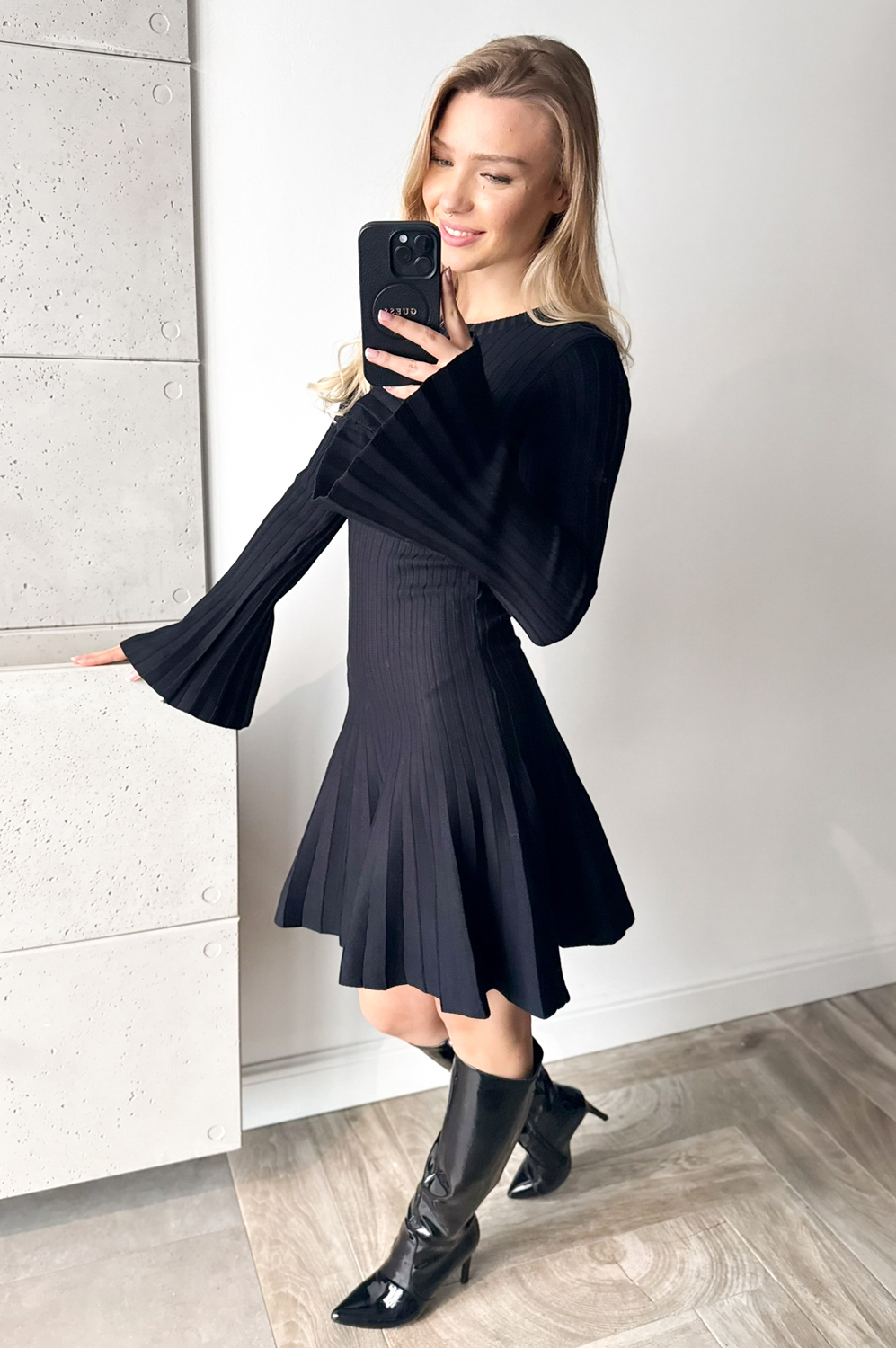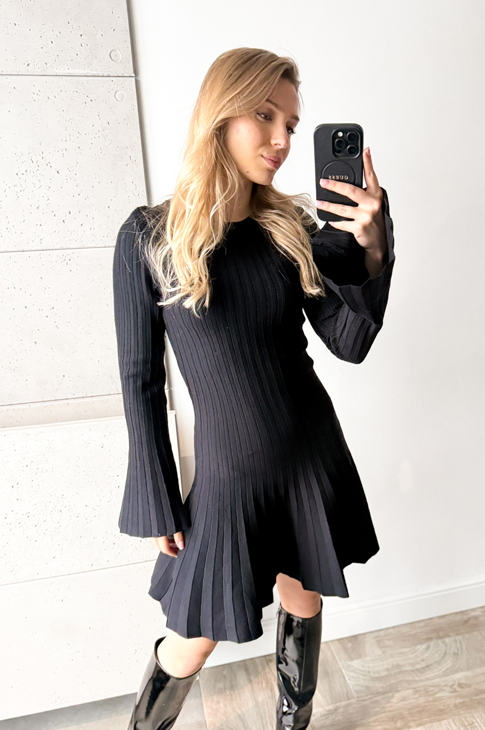 Sukienka KRÓTKA ROZKLOSZOWANA Z DZIANINY czarna69.00 zł Najniższa cena towaru, która obowiązywała w okresie 30 dni przed zastosowaniem obniżki: 189.00 zł Opis Sukienka w delikatny prążek. Sukienka wykonana jest z przemiłej w dotyku, elastycznej dzianiny. Góra sukienki jest raczej dopasowana, natomiast dół lekko rozkloszowany. SKŁAD: 50% wiskoza , 20% polyamid,30% poliester