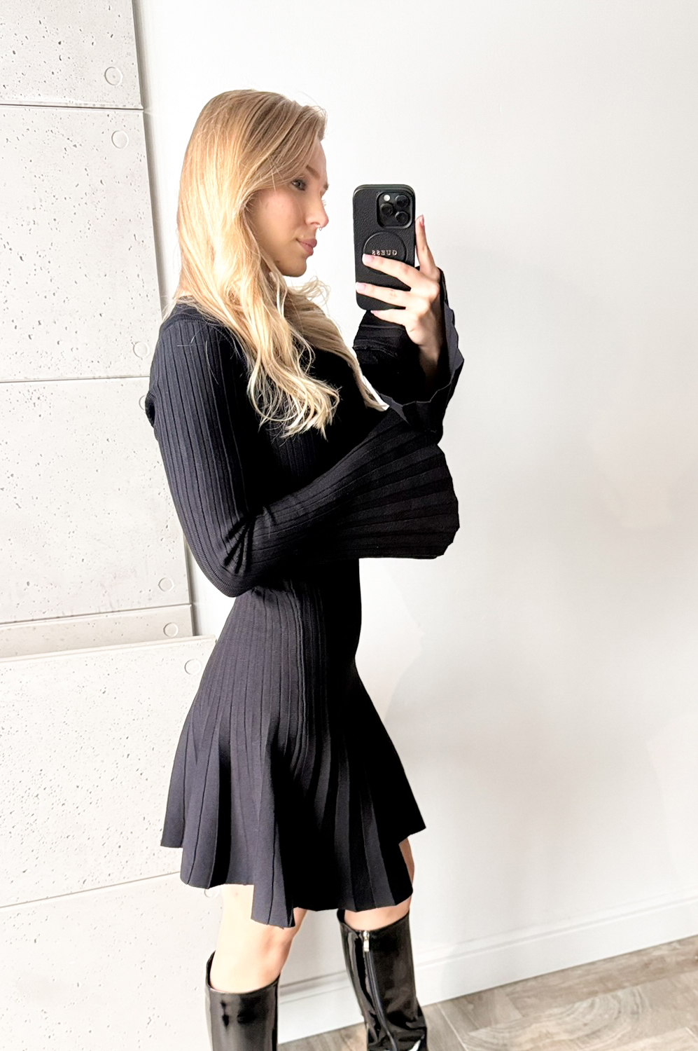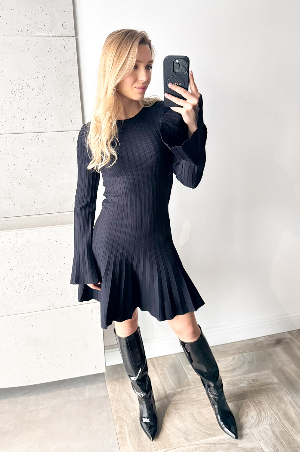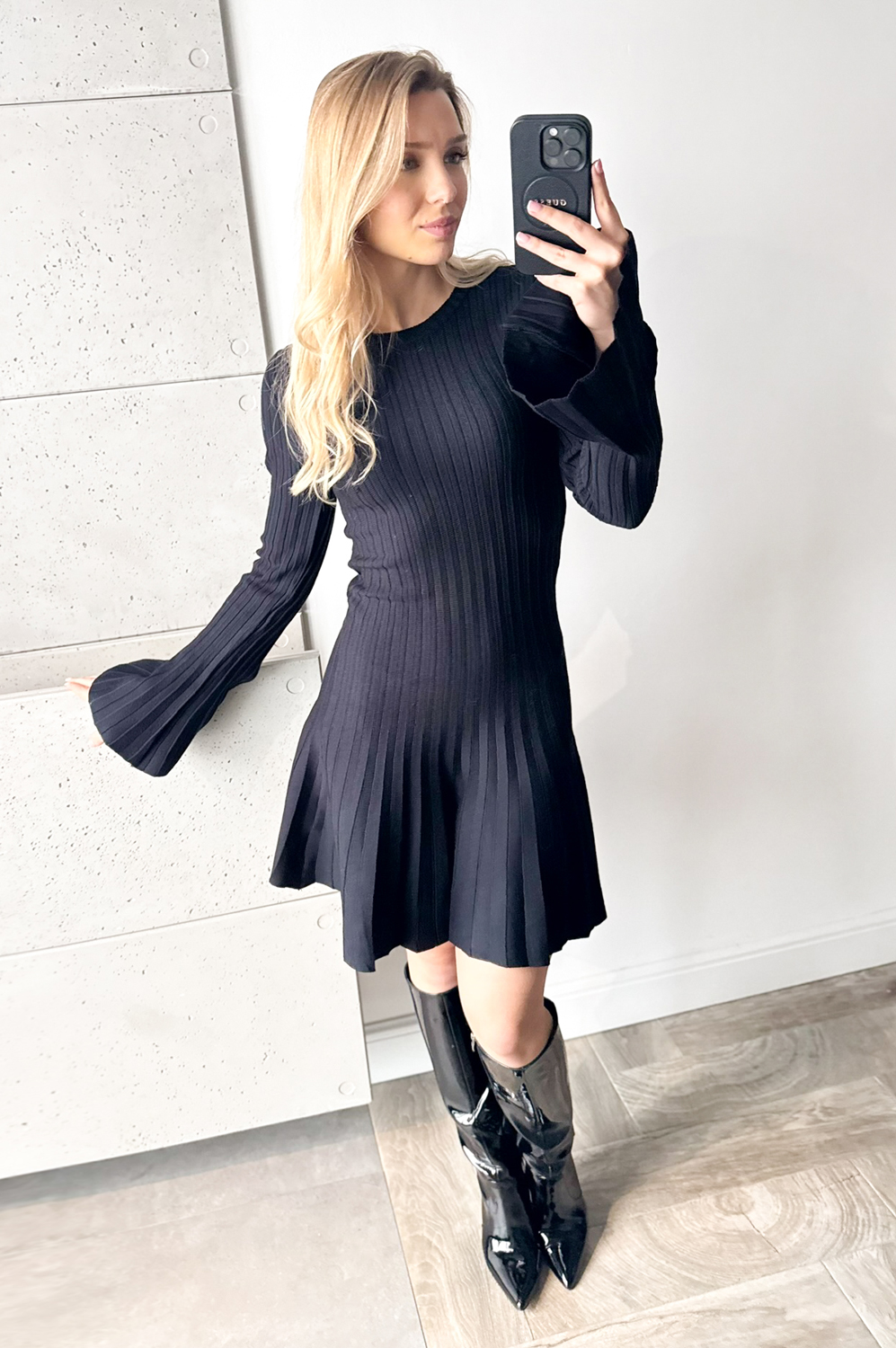 Sukienka KRÓTKA ROZKLOSZOWANA Z DZIANINY czarna69.00 zł Najniższa cena towaru, która obowiązywała w okresie 30 dni przed zastosowaniem obniżki: 189.00 zł Opis Sukienka w delikatny prążek. Sukienka wykonana jest z przemiłej w dotyku, elastycznej dzianiny. Góra sukienki jest raczej dopasowana, natomiast dół lekko rozkloszowany. SKŁAD: 50% wiskoza , 20% polyamid,30% poliester