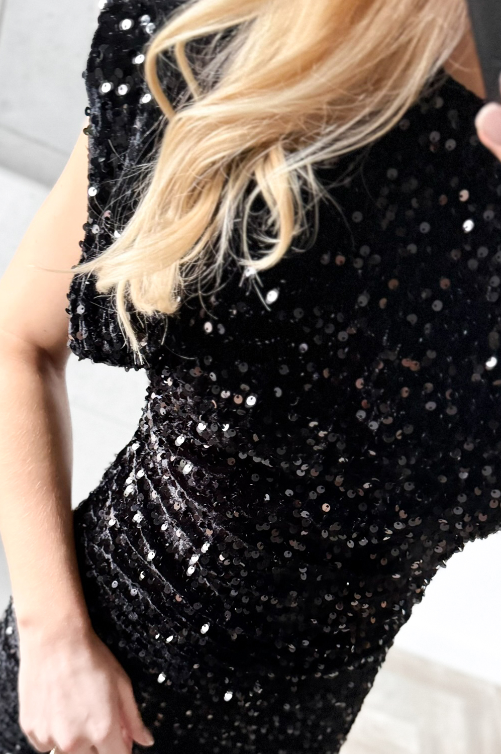 Sukienka KLASYK CEKIN czarna249.00 zł Najniższa cena towaru, która obowiązywała w okresie 30 dni przed zastosowaniem obniżki: 249.00 zł Opis Efektowna welurowa sukienka z cekinami. Na ramiomach malutkie poduszki. Sukienka na podszewce, zapinana na kryty zamek z tyłu. SKŁAD : 100% poliester