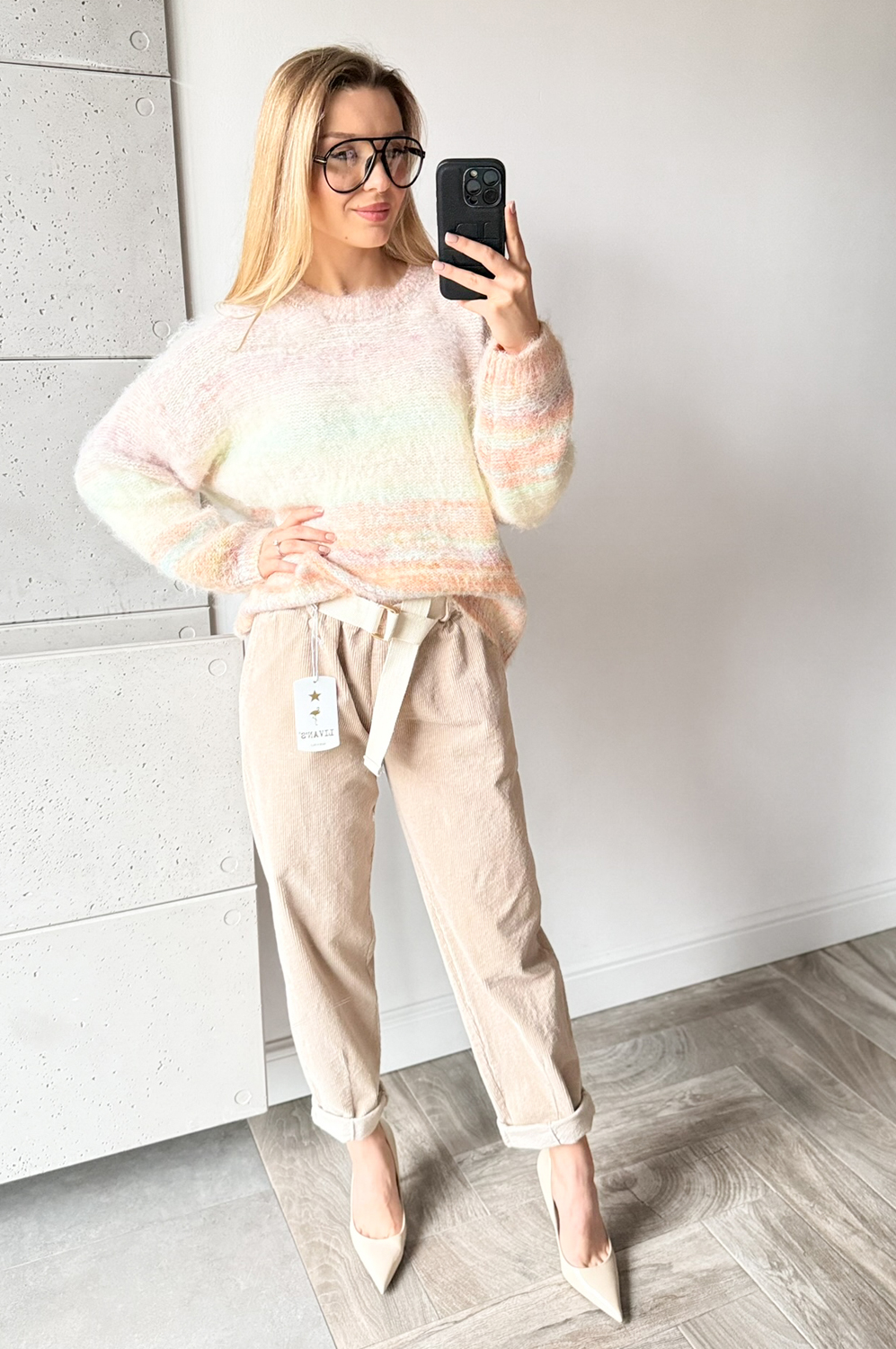 Spodnie włoskiej marki , wykonane z bawełny. W pasie posiadają gumę.