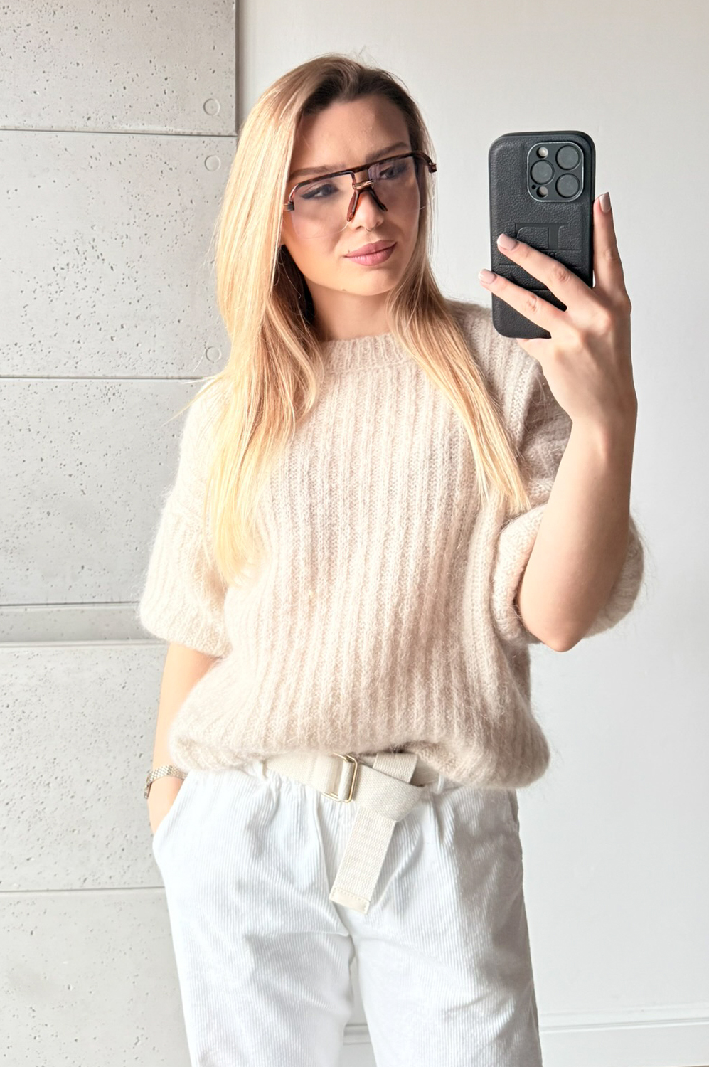 Sweterek MOHER KID 60% KR.RĘKAW BEŻ