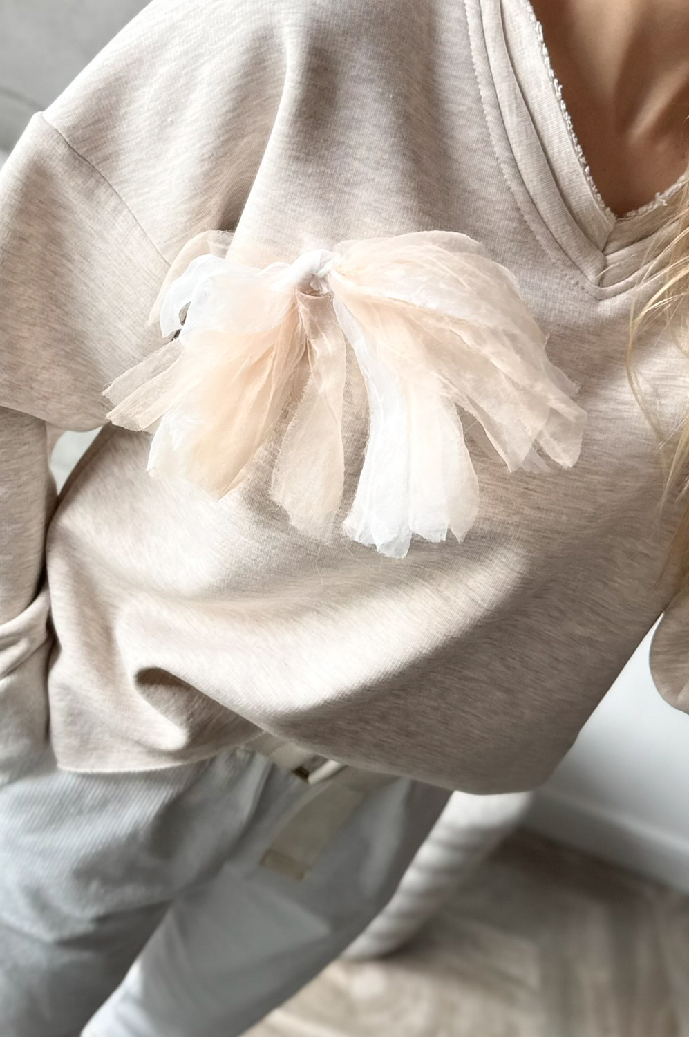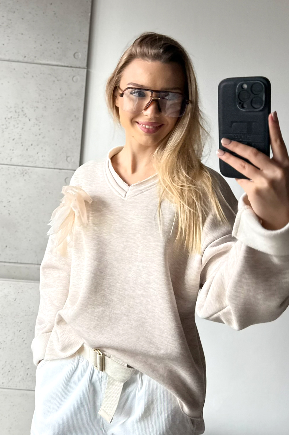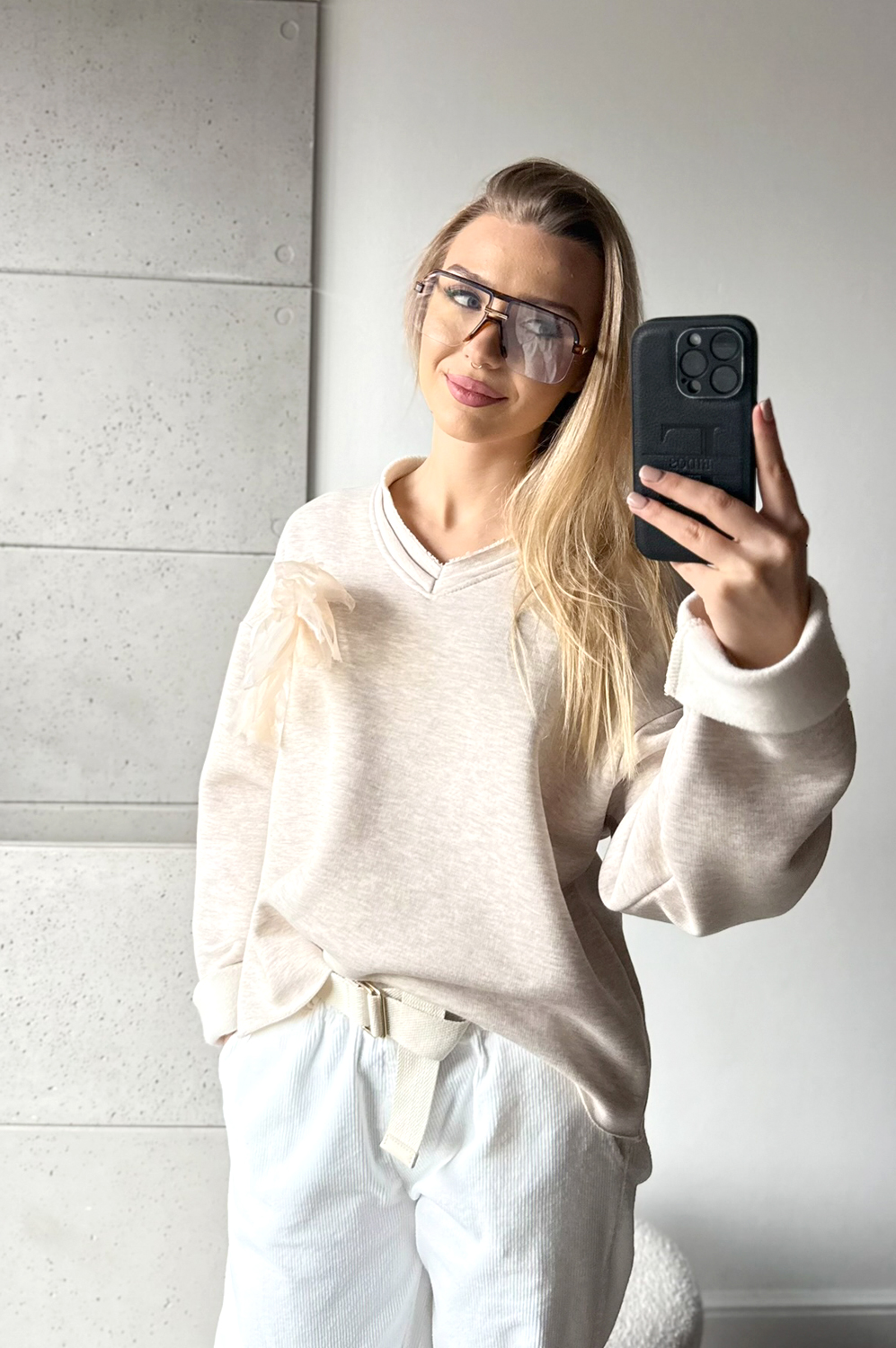 Bluza BLUZA NA PUSZKU Z ODPINANĄ KOKARDĄ159.00 zł Najniższa cena towaru, która obowiązywała w okresie 30 dni przed zastosowaniem obniżki: 159.00 zł Opis Piękna bluza w szpic, przyjemna w dotyku idealna na jesienne stylizacje. SKŁAD : 70% bawełna, 30% poliester