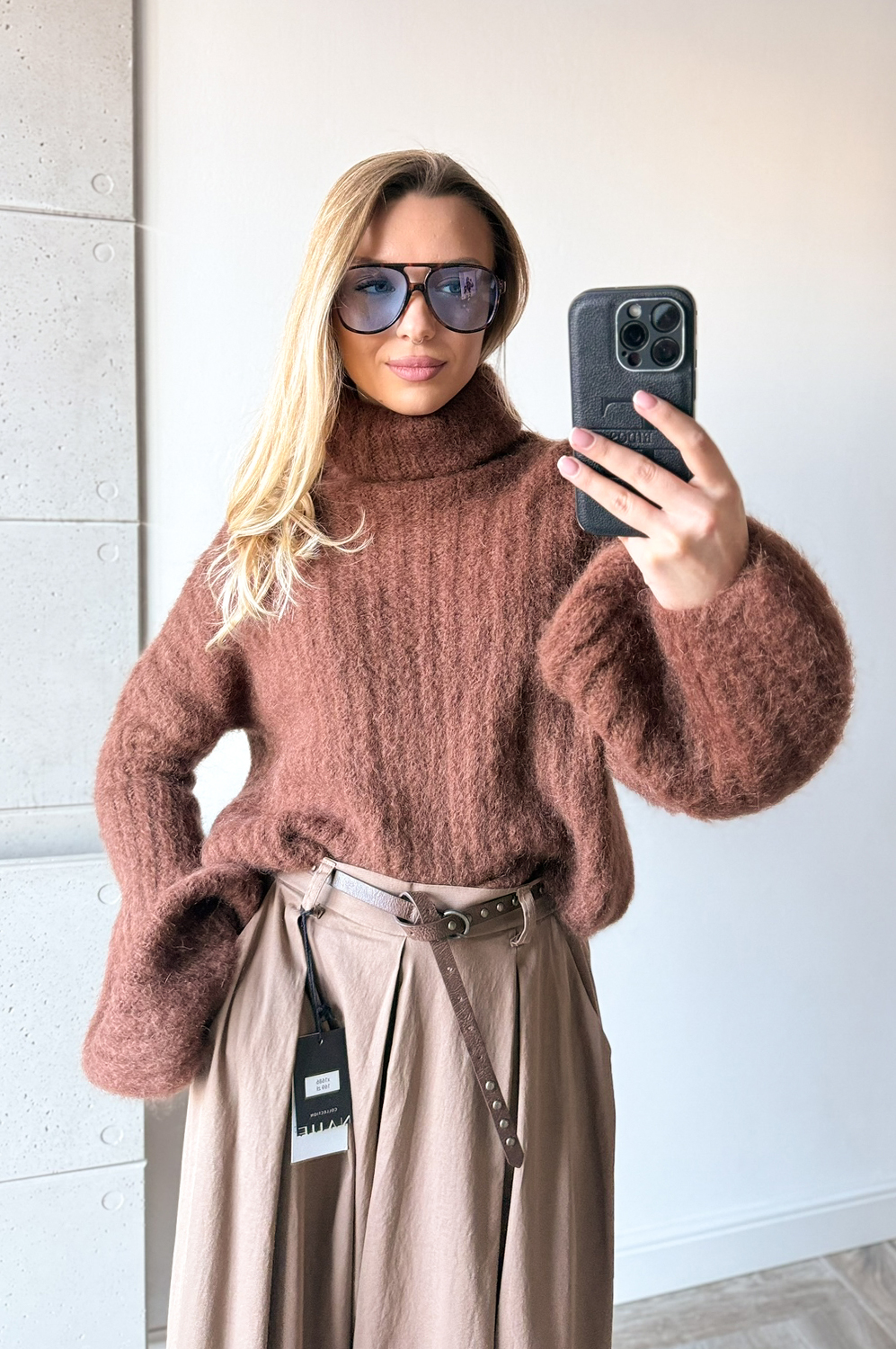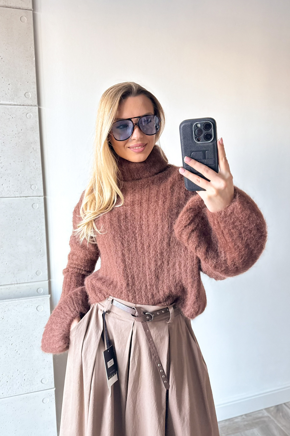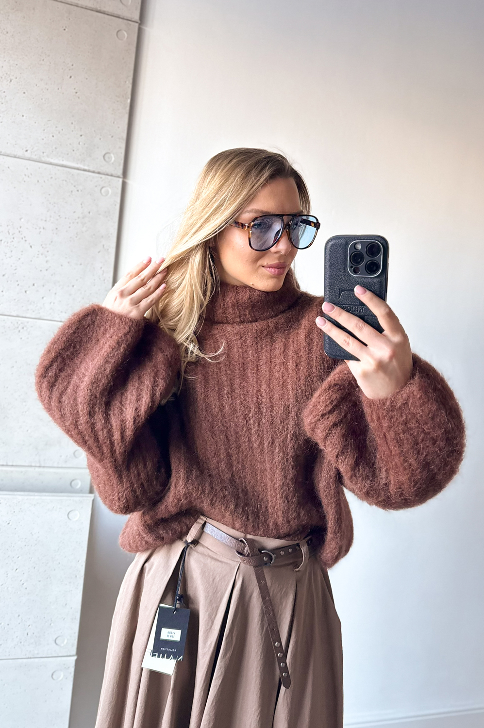 Sweterek DZWONEK MOHEROWY CYNAMONOWO CZEKOLADOWY199.00 zł Najniższa cena towaru, która obowiązywała w okresie 30 dni przed zastosowaniem obniżki: 199.00 zł Opis Sweterek dzwonek z golfem.