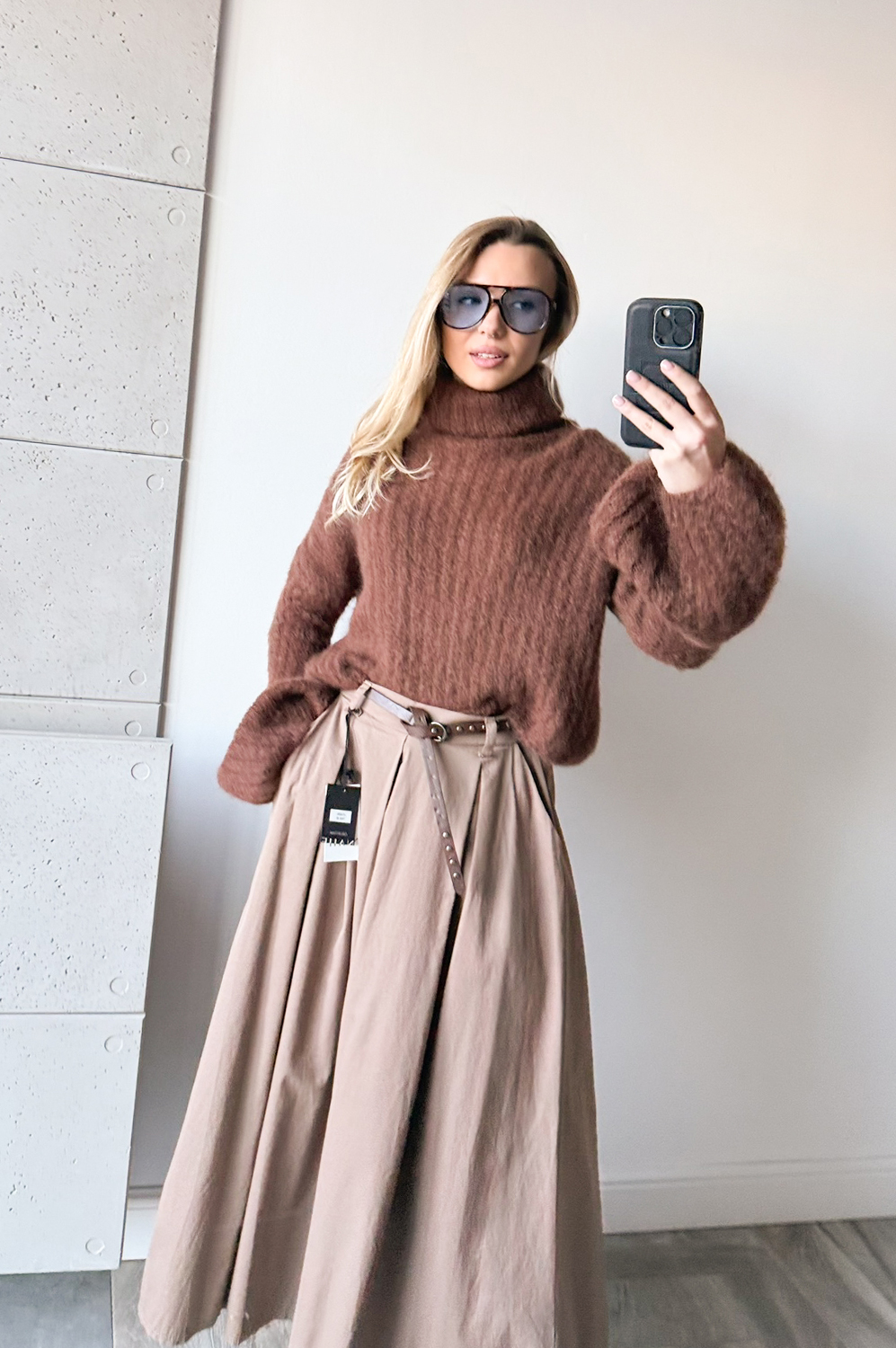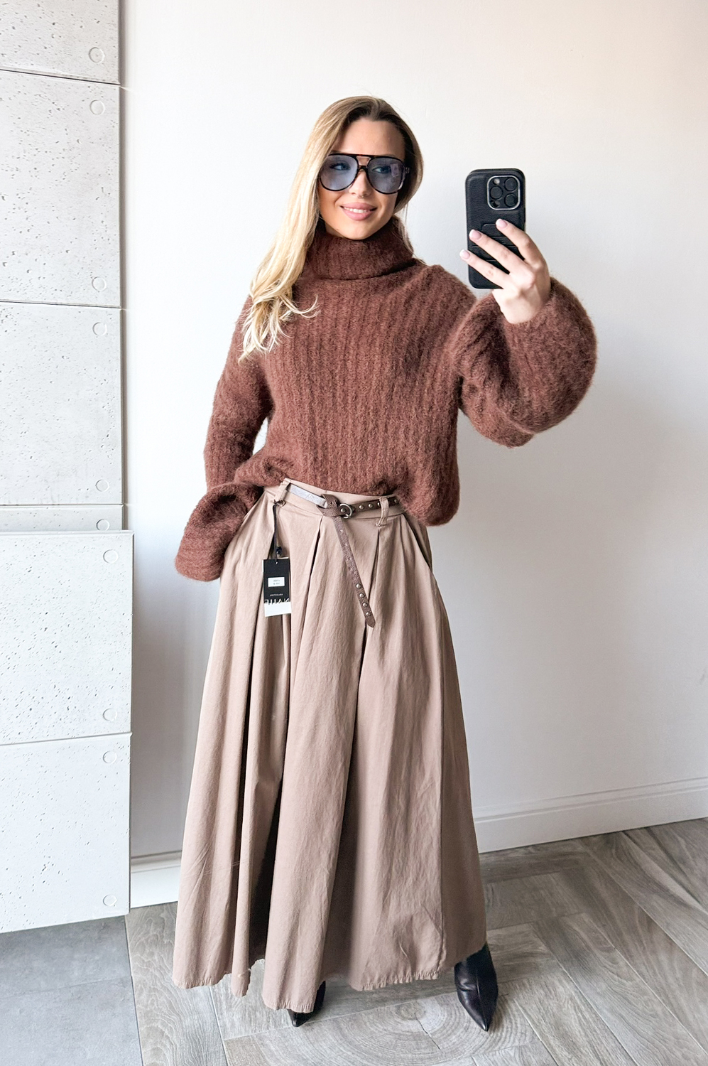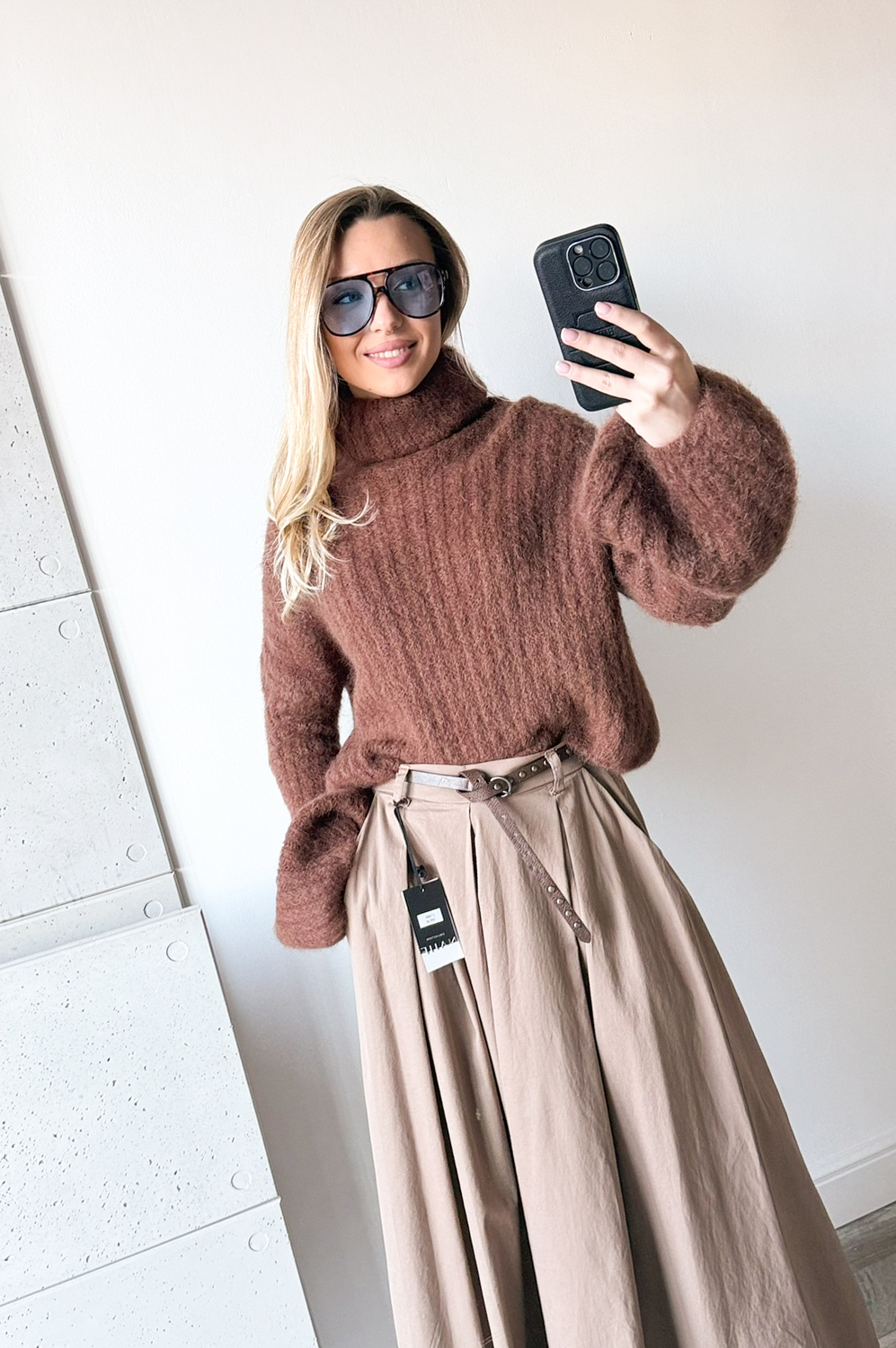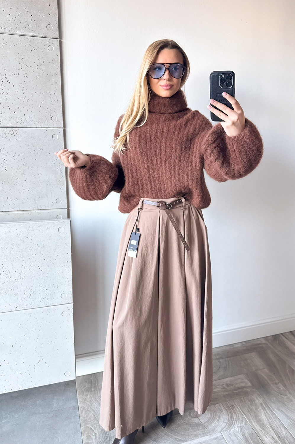 Sweterek DZWONEK MOHEROWY CYNAMONOWO CZEKOLADOWY199.00 zł Najniższa cena towaru, która obowiązywała w okresie 30 dni przed zastosowaniem obniżki: 199.00 zł Opis Sweterek dzwonek z golfem.