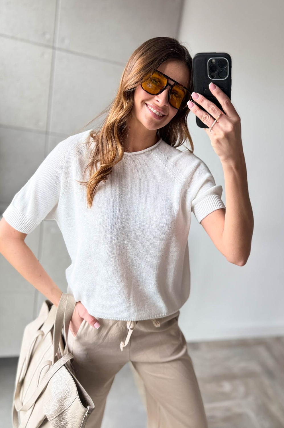 sweterkowa COTTON RAGLAN COTON śmietanka99.00 zł Najniższa cena towaru, która obowiązywała w okresie 30 dni przed zastosowaniem obniżki: 99.00 zł Opis Sweterek raglanowy z krótkim rękawkiem i owalnym dekoltem. Sweterek jest miękki i przyjemny w dotyku. Przewiewny i wykonany z bawełny. WYMIARY: długość: 62 cm, szerokość: 100-106 cm