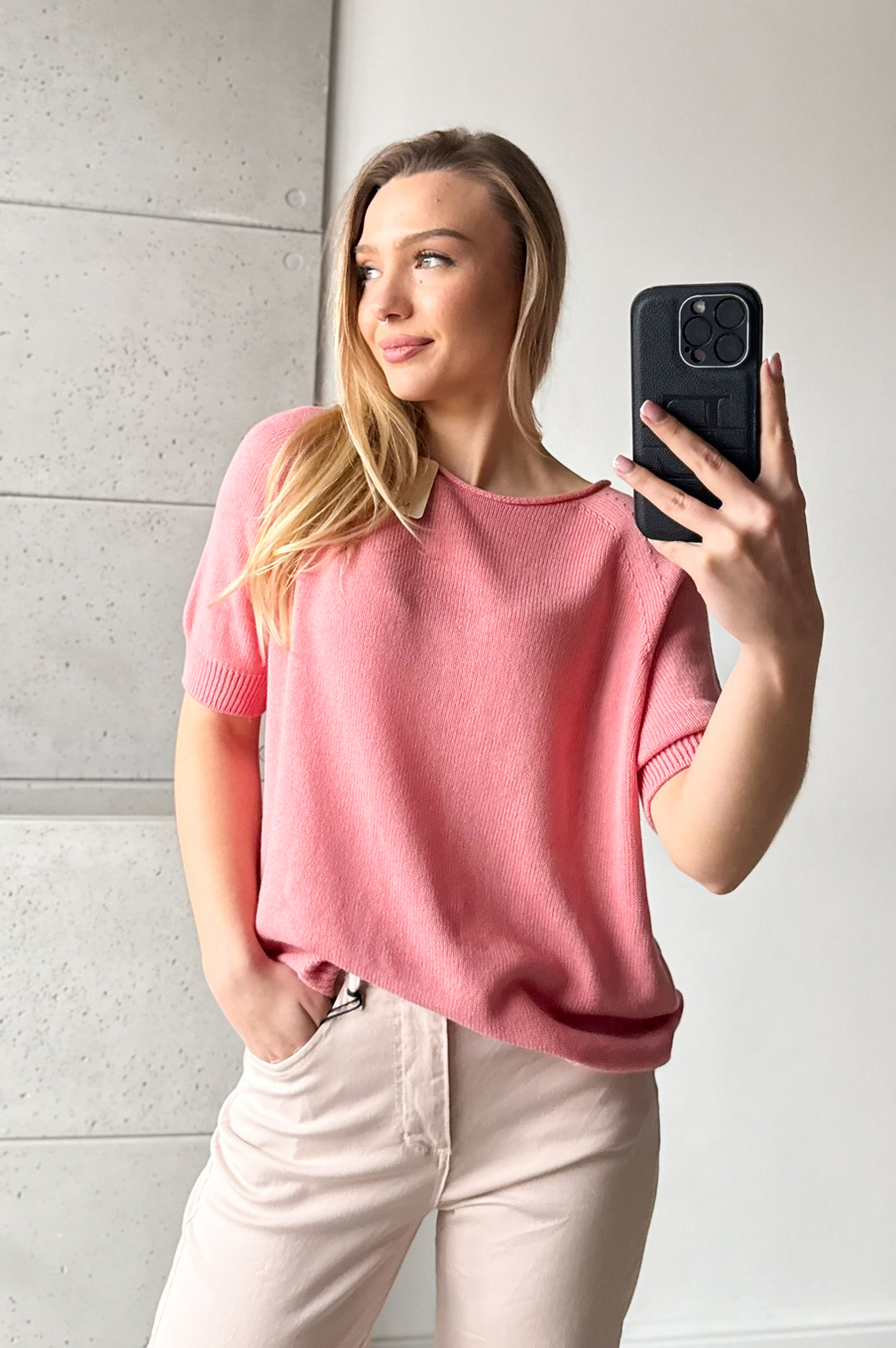 Sweterek RAGLAN COTON jogurt truskawkowy99.00 zł Najniższa cena towaru, która obowiązywała w okresie 30 dni przed zastosowaniem obniżki: 99.00 zł Opis Sweterek raglanowy z krótkim rękawkiem i owalnym dekoltem. Sweterek jest miękki i przyjemny w dotyku. Przewiewny i wykonany z bawełny. WYMIARY: długość: 62 cm, szerokość: 100-106 cm