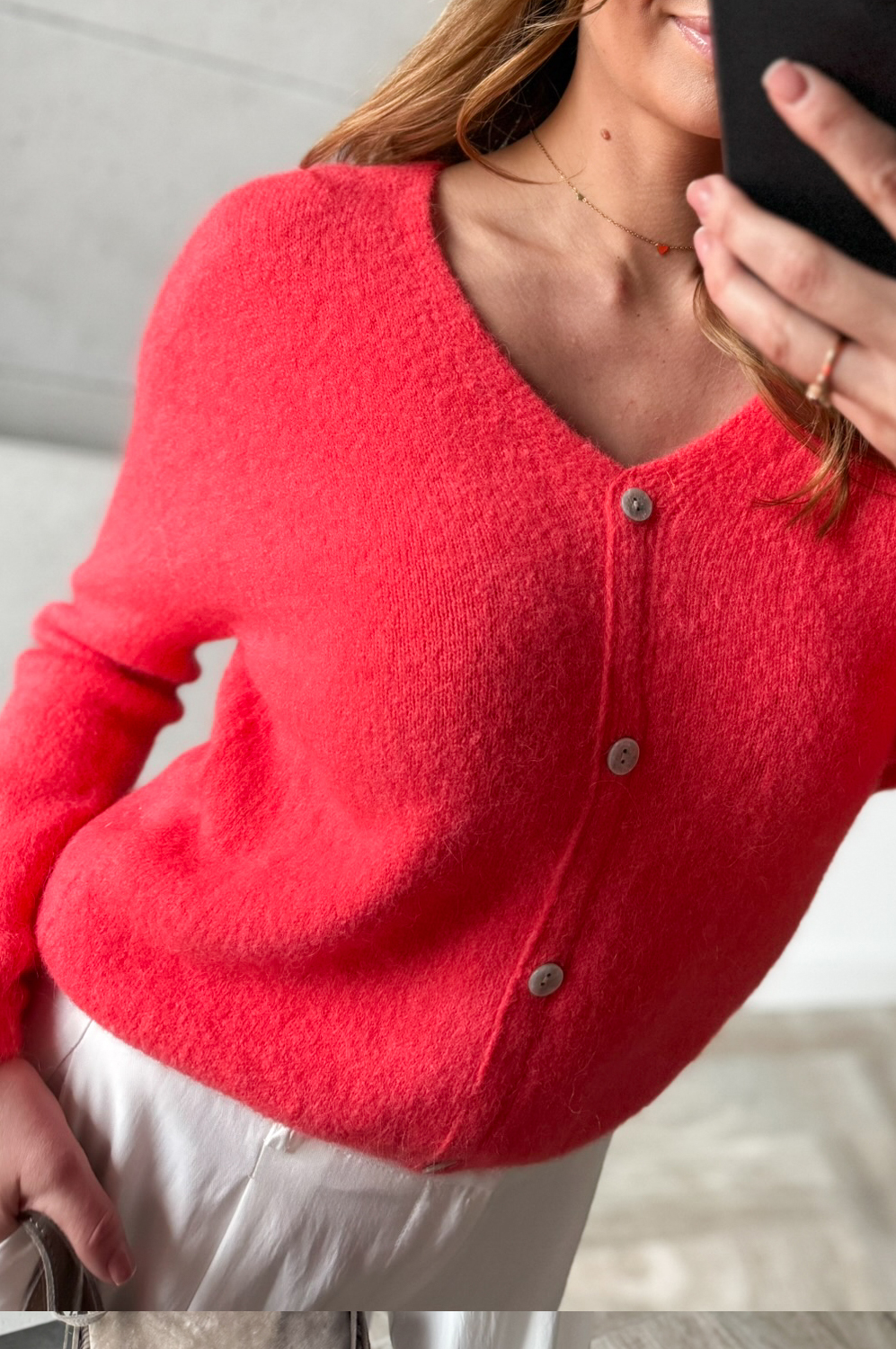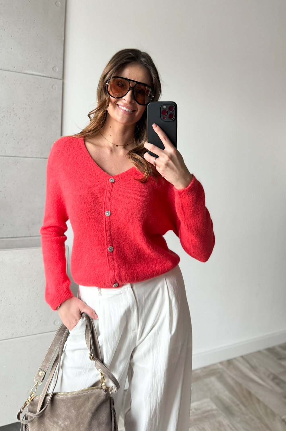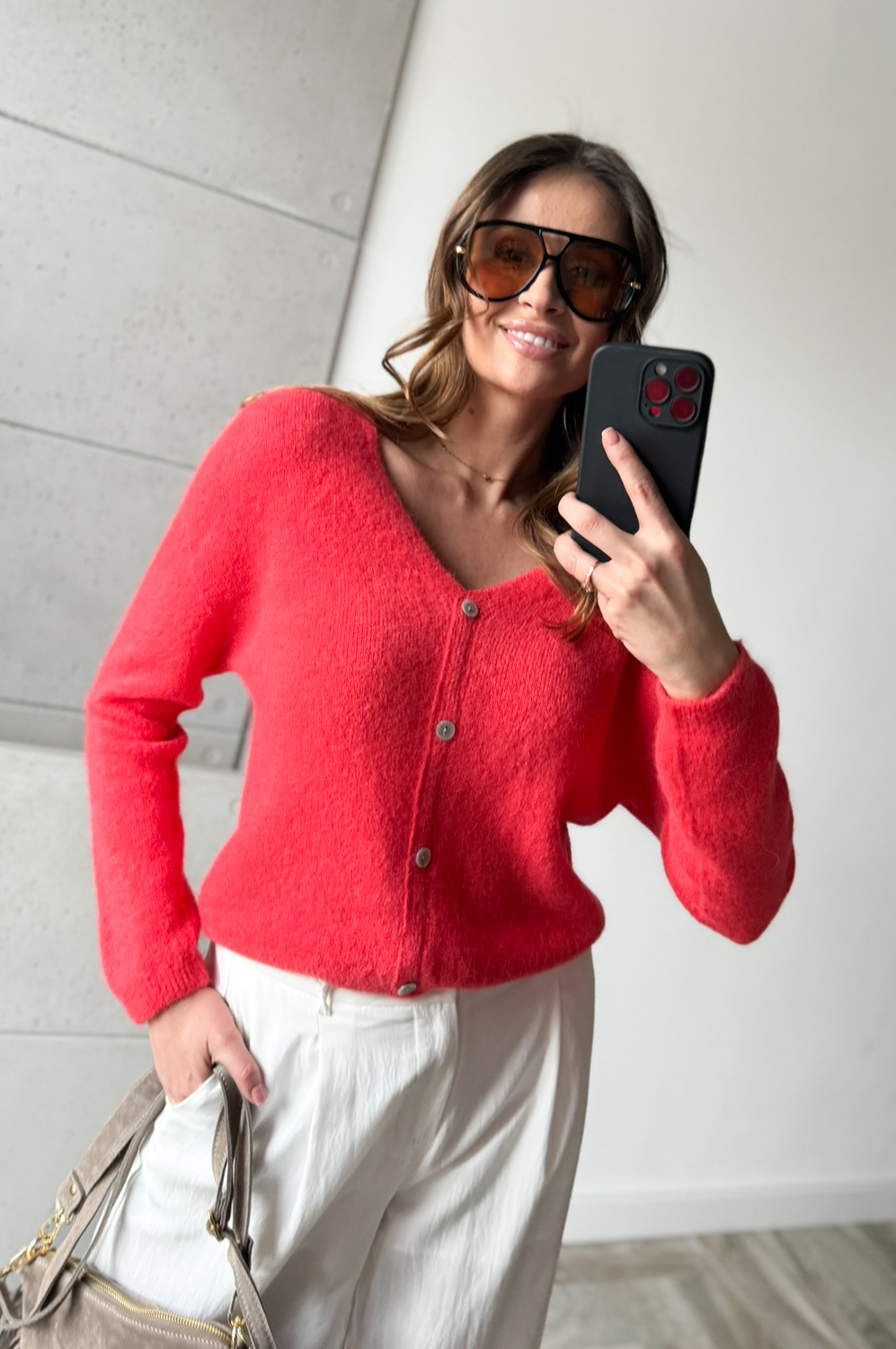 Sweterek BABY ALPAKA KORAL159.00 zł Najniższa cena towaru, która obowiązywała w okresie 30 dni przed zastosowaniem obniżki: 159.00 zł Opis Sweterek w szpic, imitacja zapinania guzikami, w pięknym soczystym kolorze koralowym. ZASADY KONSERWACJI: PRAĆ W 30 STOPNIACH.