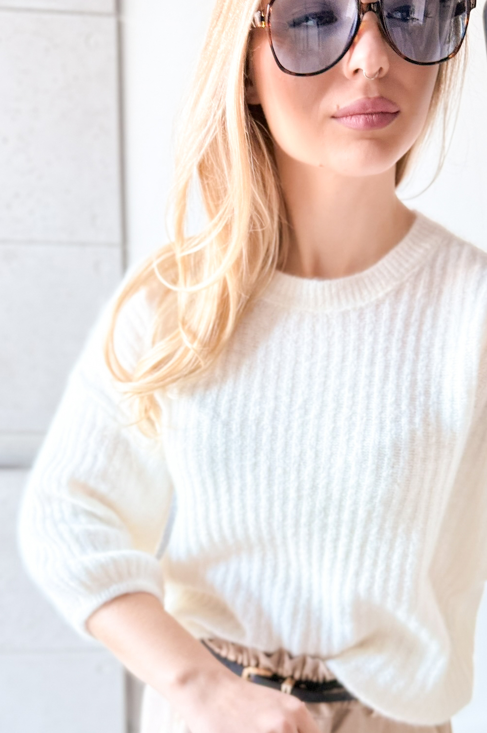 Sweterek ALPAKA W PRĄŻEK K/R ŚMIETANKA