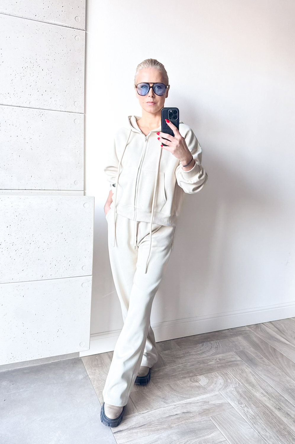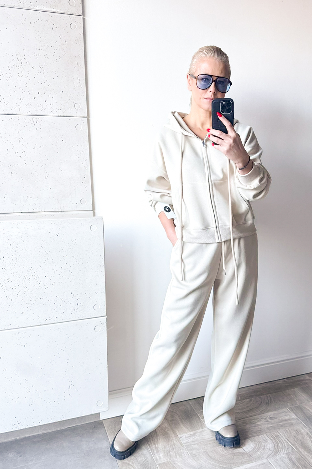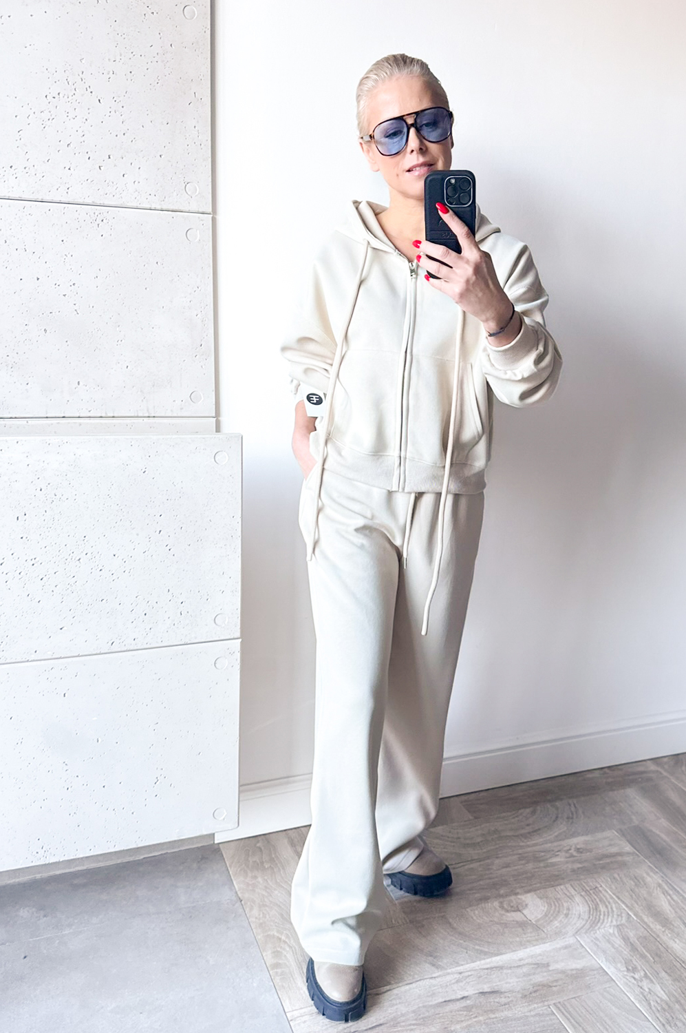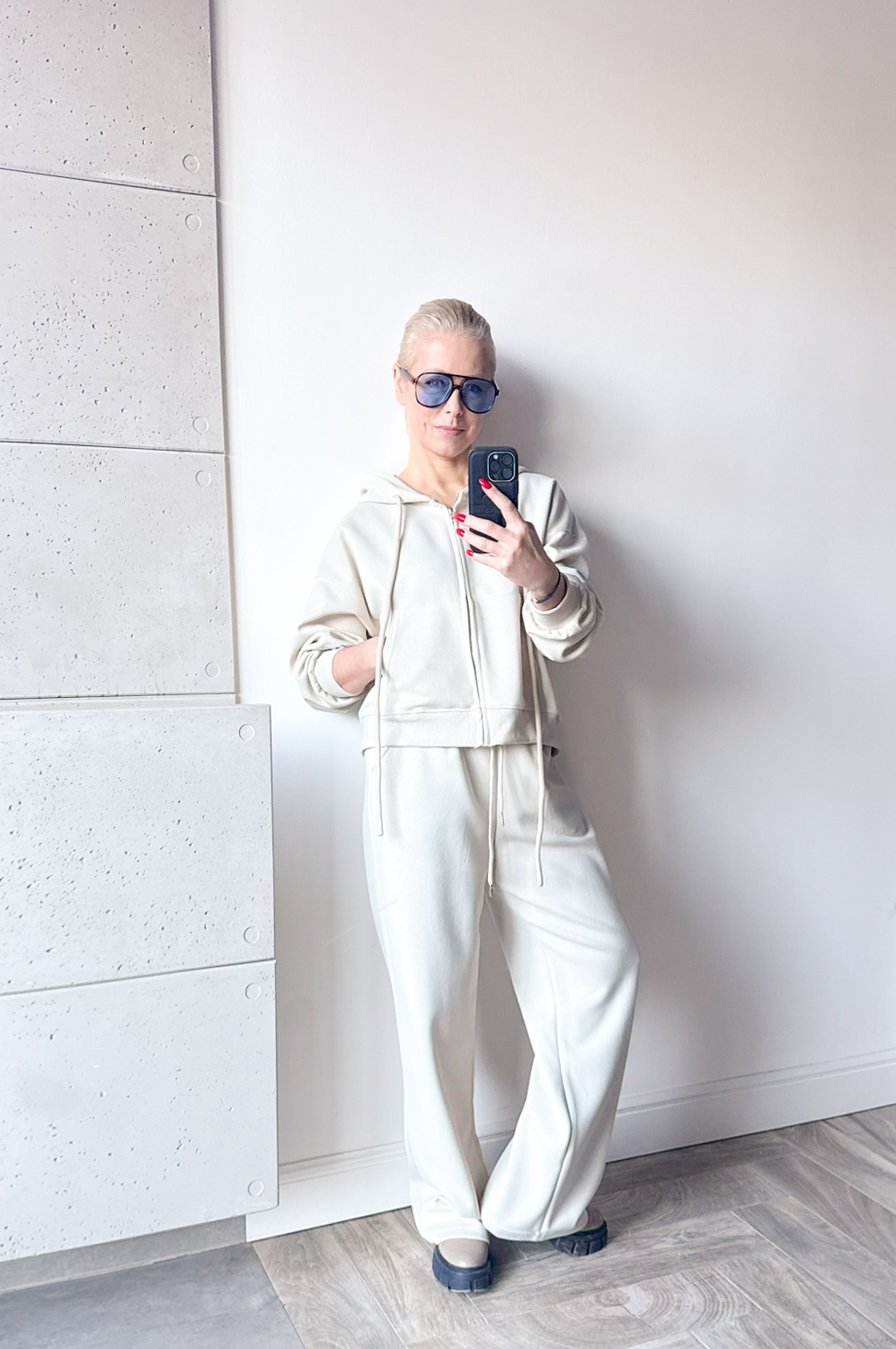 Komplet dresowy SUNNG SOFT BEŻ299.00 zł Najniższa cena towaru, która obowiązywała w okresie 30 dni przed zastosowaniem obniżki: 299.00 zł Opis Dres dwuczęściowy z bawełny. Bluza zapinana na zamek, spodnie w gumę w pasie,prosta nogawka. Komplet luźny, pasuje na rozmiar S-M oraz mała L ZASADY KONSERWACJI : PRANIE W 30 STOPNIACH.