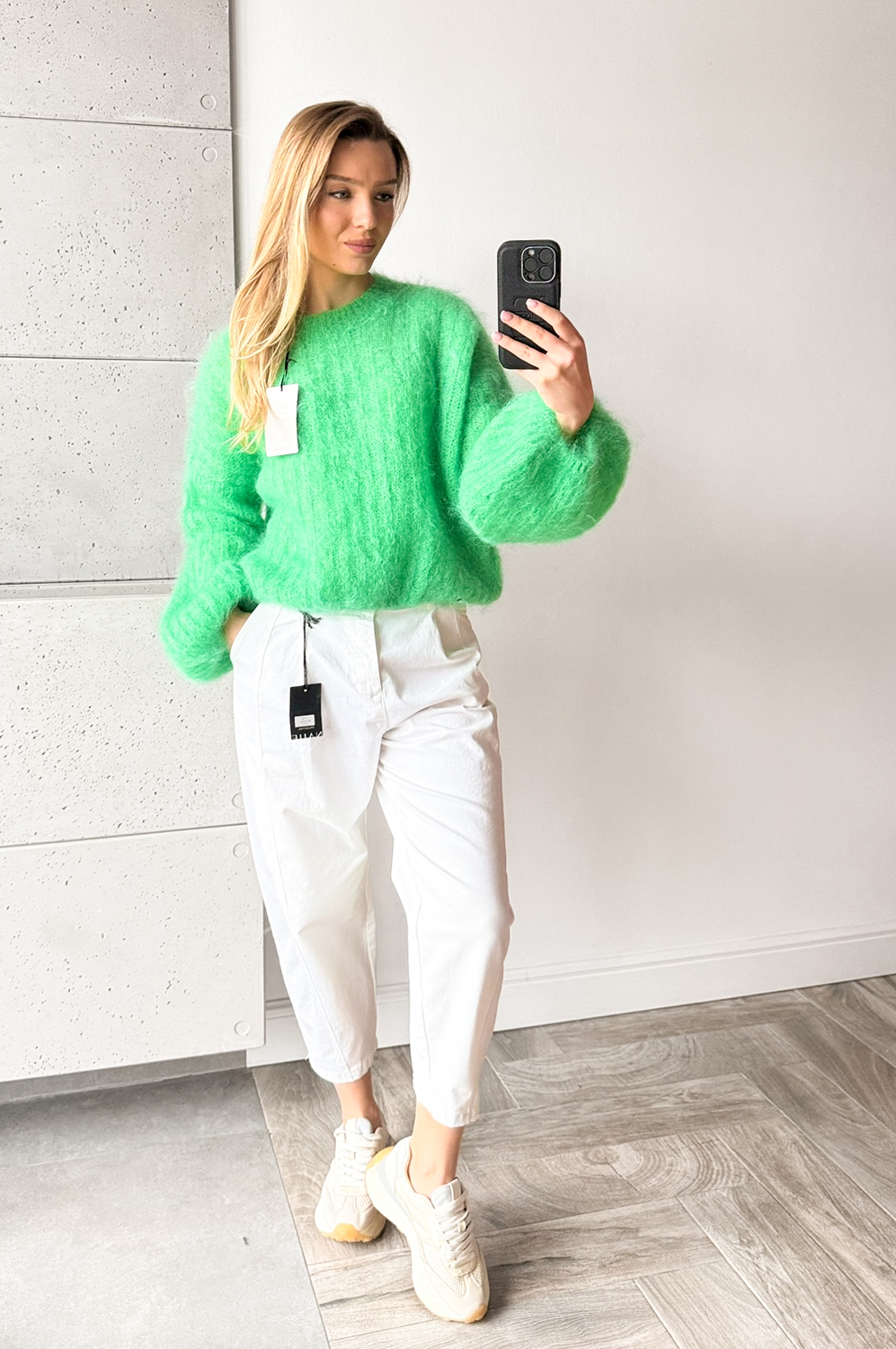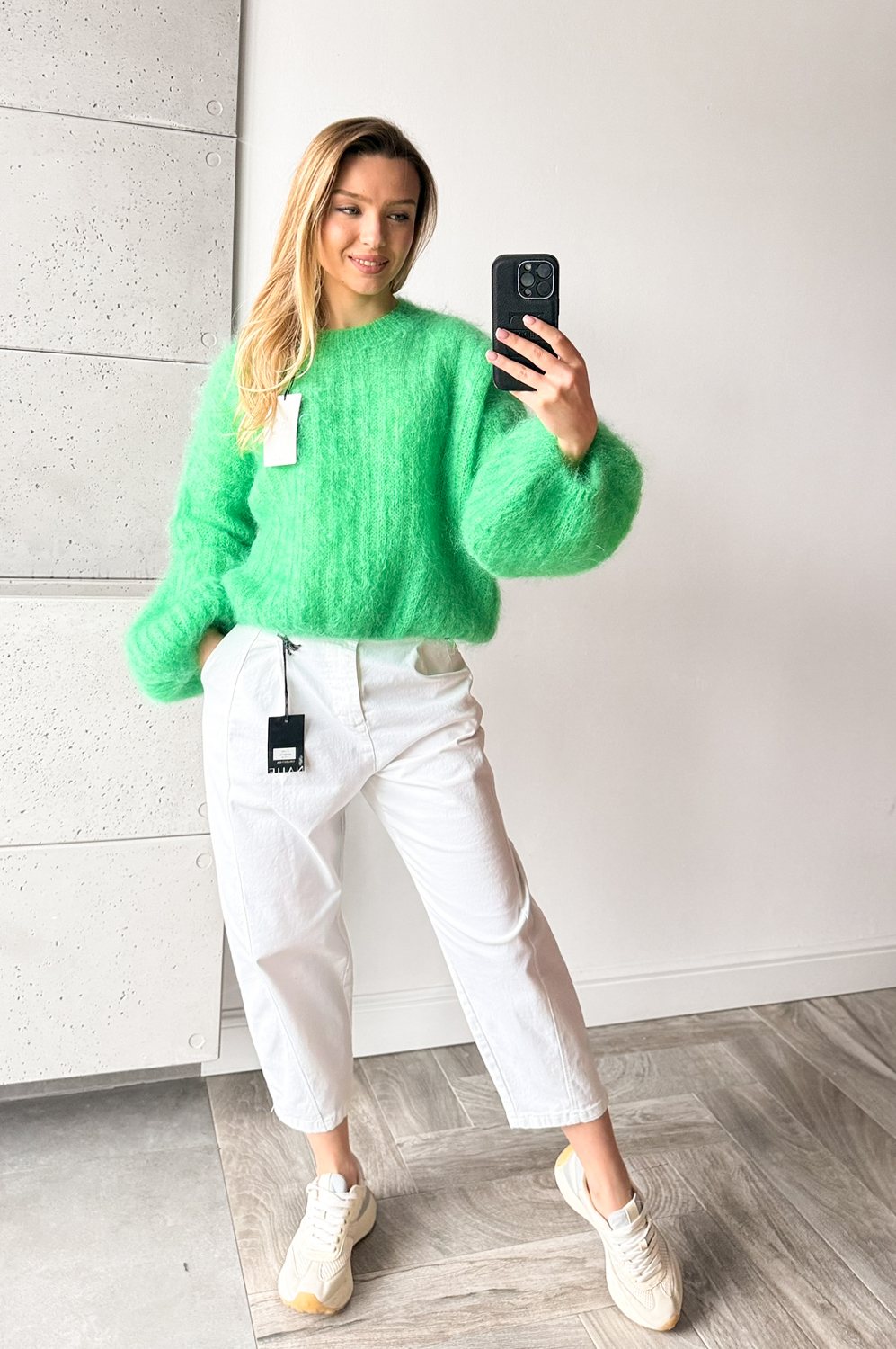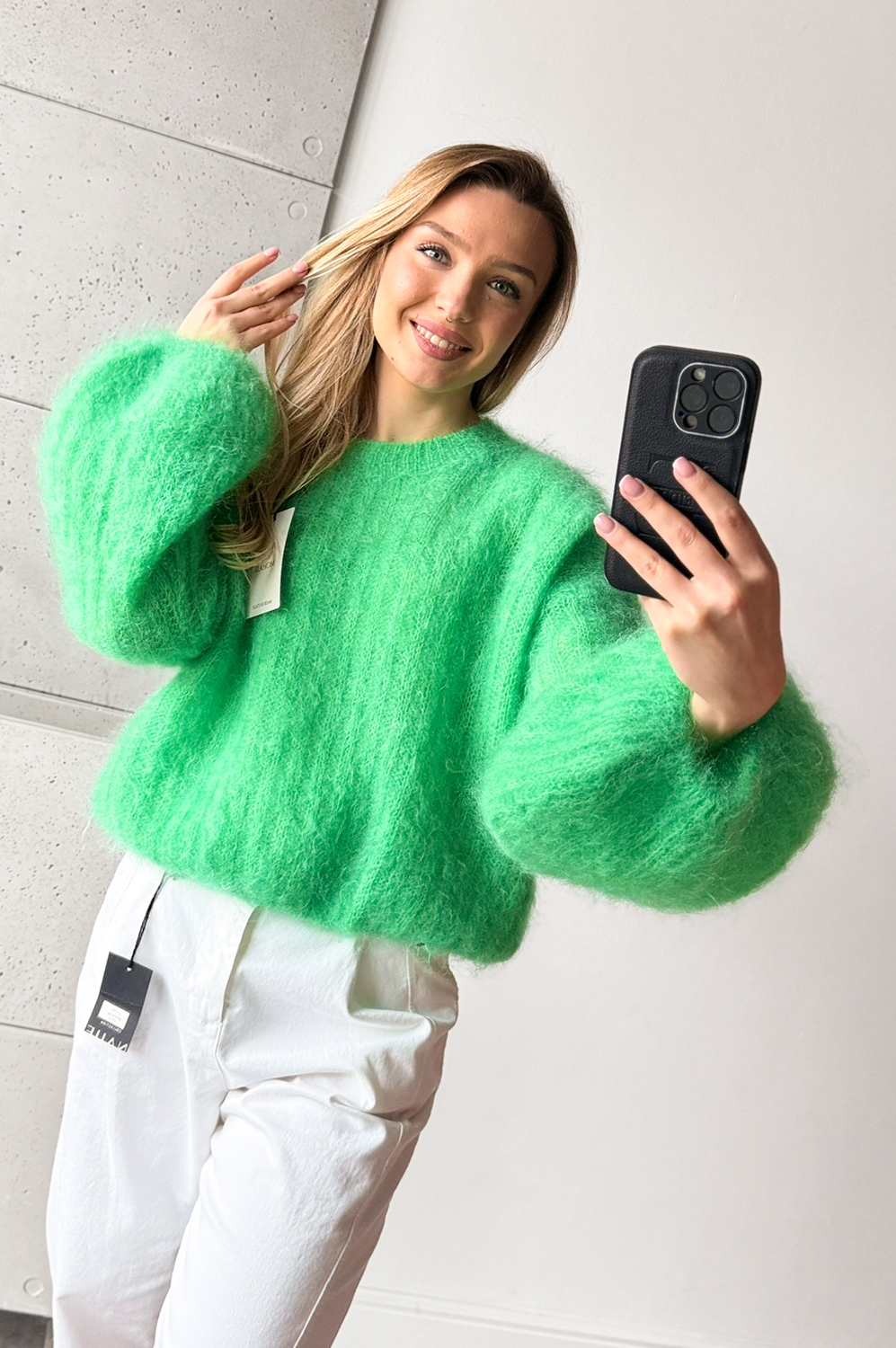 Sweterek DZWONEK MOHER KID 80% zielony229.00 zł Najniższa cena towaru, która obowiązywała w okresie 30 dni przed zastosowaniem obniżki: 229.00 zł Opis Sweterek z moherku delikatny i miękki w chwycie, nie drapie.