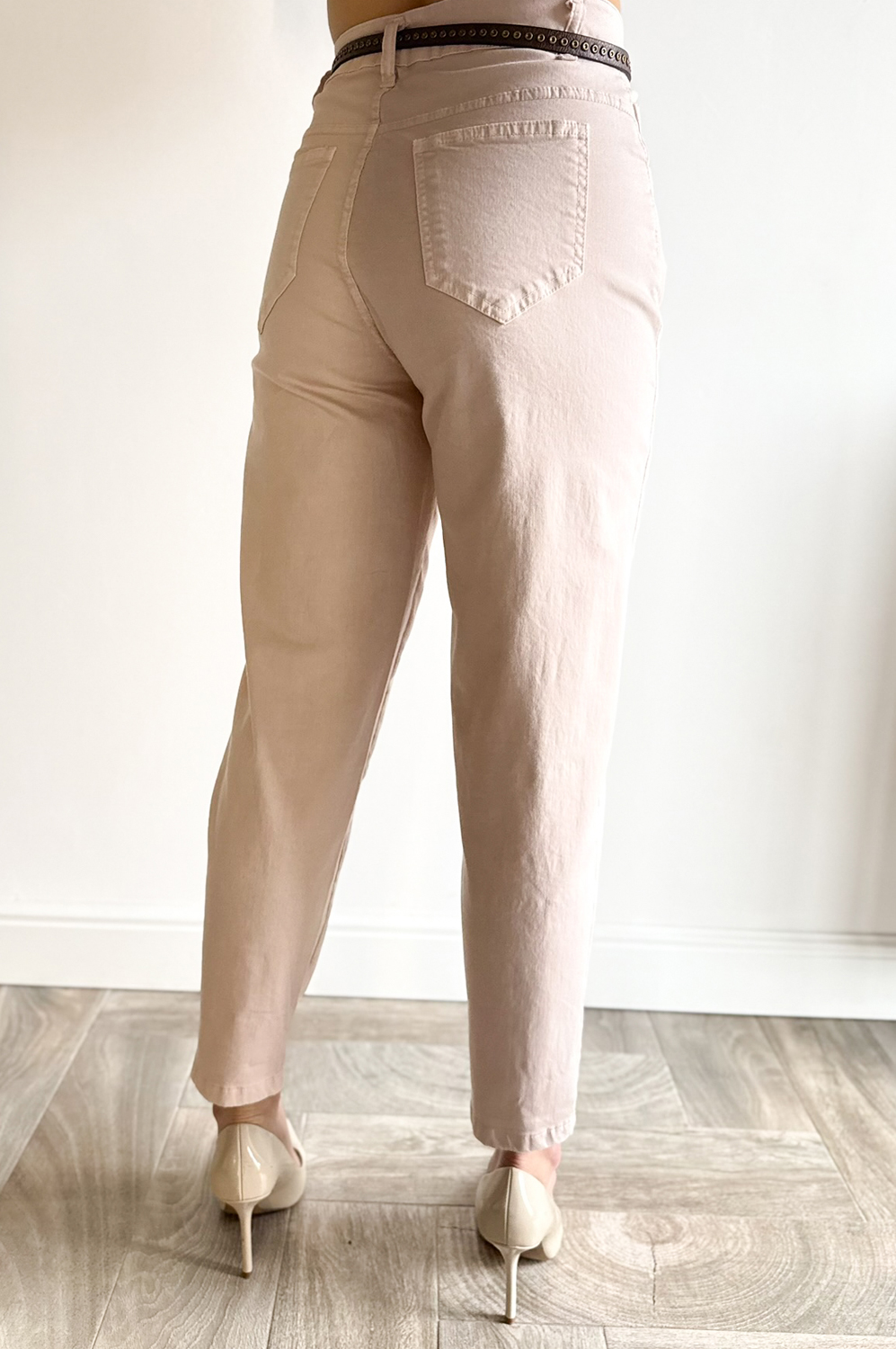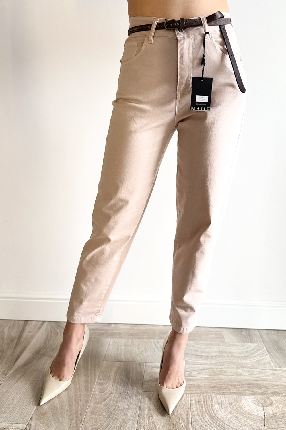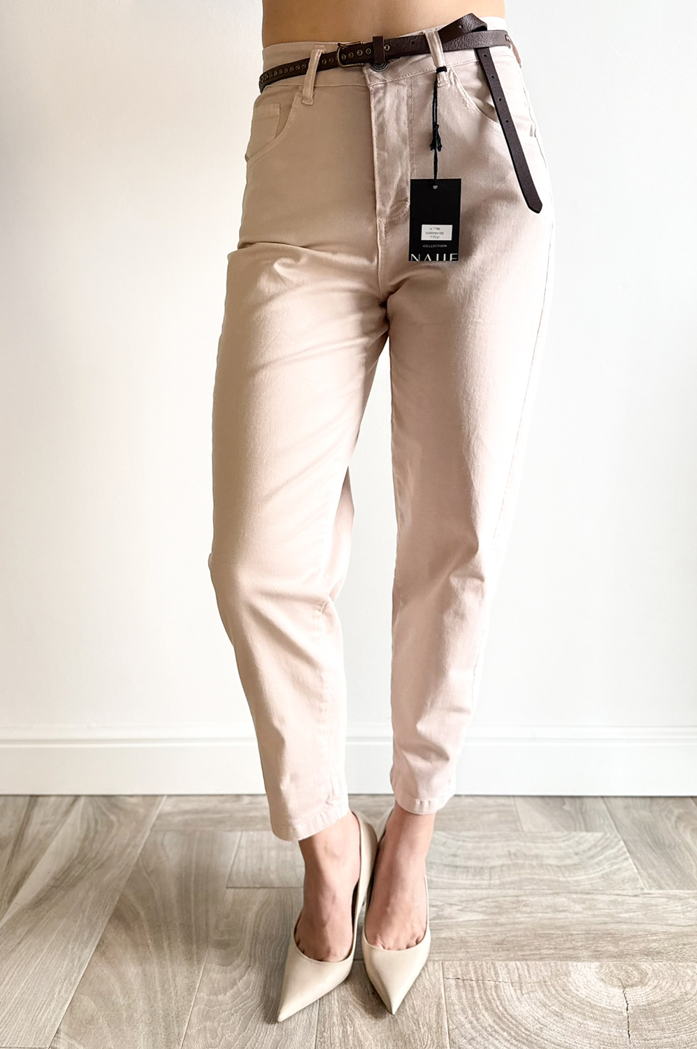 Spodnie NALIE pudrowy róż179.00 zł Najniższa cena towaru, która obowiązywała w okresie 30 dni przed zastosowaniem obniżki: 179.00 zł Opis Spodnie o klasycznym kroju lekko balonowym,wyższe w stanie,posiadają kieszenie,idealnie modelują sylwetkę,są elastyczne. WYMIARY:S-długość zew.96cm,szerokość pas 68-78cm,biodra 98-102cm,M-długość zew.97cm,szerokość pas 70-80cm,biodra 102-106cm. SKŁAD : 98%bawełna,2%elastan