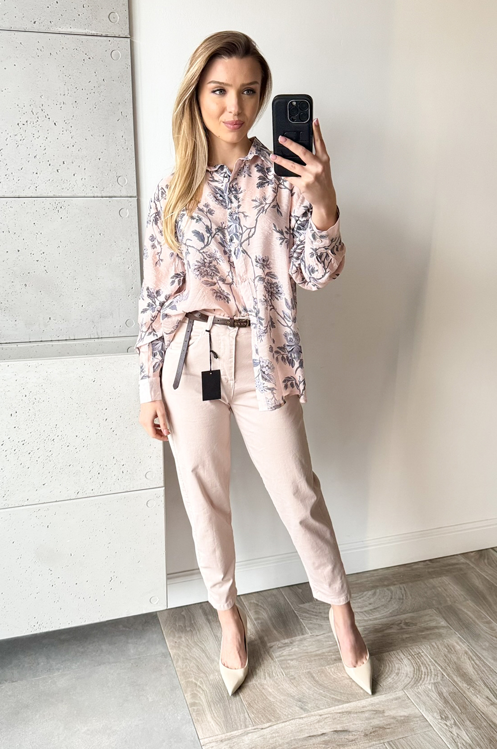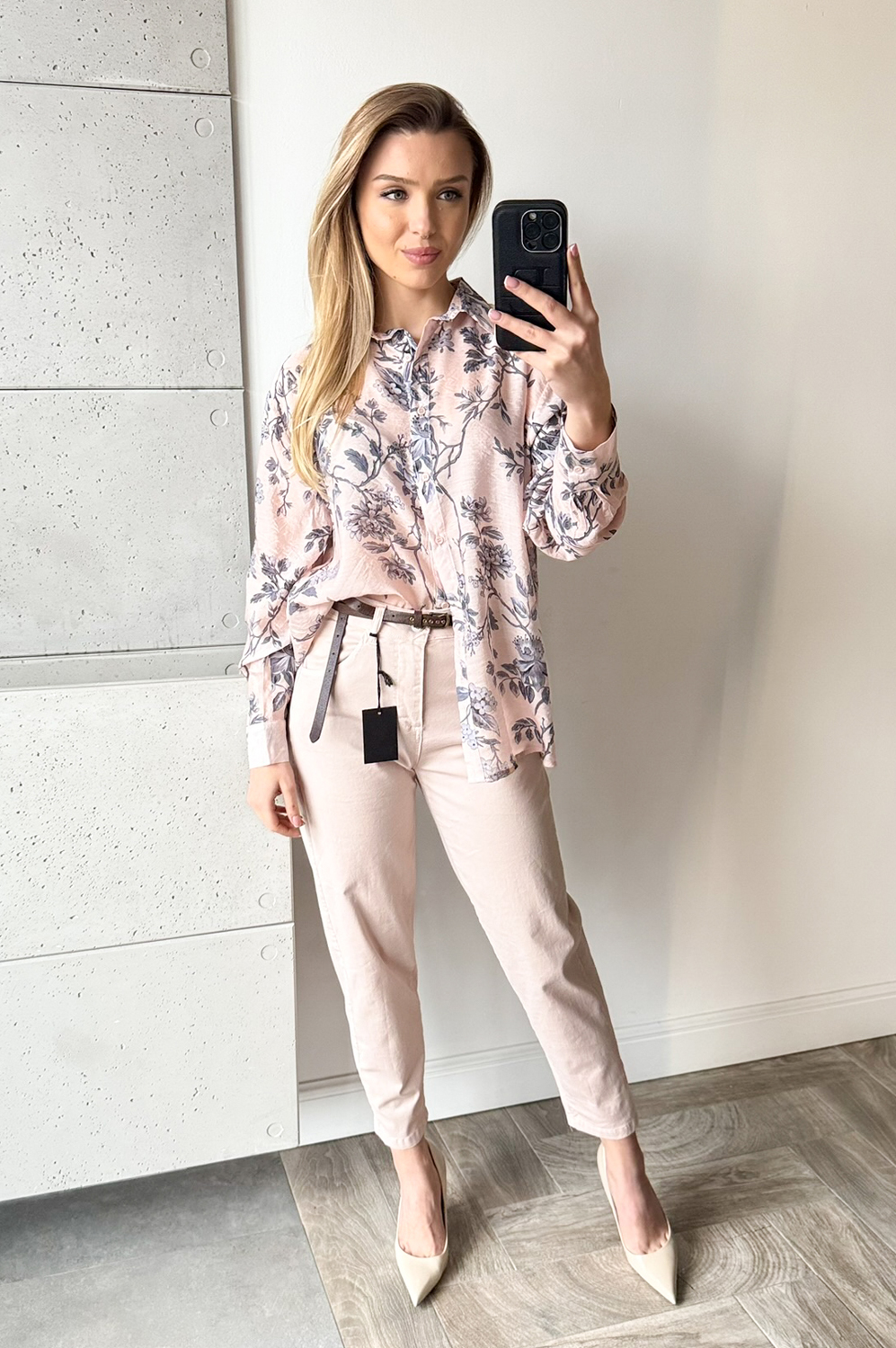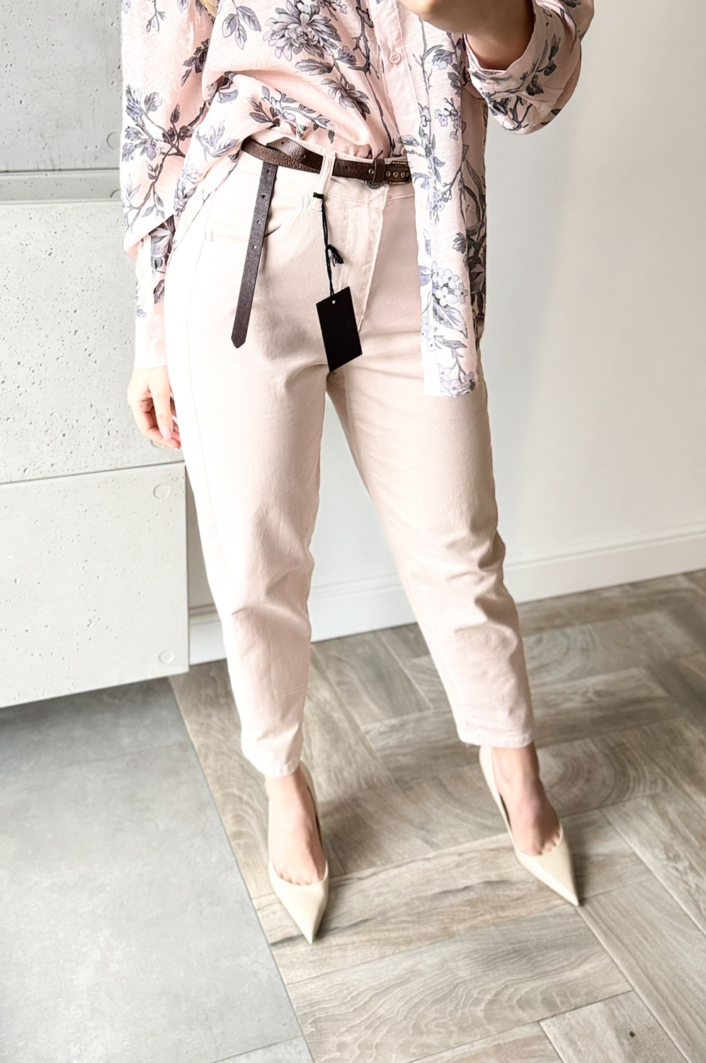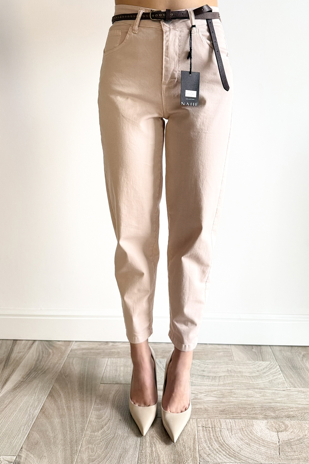 Spodnie NALIE pudrowy róż179.00 zł Najniższa cena towaru, która obowiązywała w okresie 30 dni przed zastosowaniem obniżki: 179.00 zł Opis Spodnie o klasycznym kroju lekko balonowym,wyższe w stanie,posiadają kieszenie,idealnie modelują sylwetkę,są elastyczne. WYMIARY:S-długość zew.96cm,szerokość pas 68-78cm,biodra 98-102cm,M-długość zew.97cm,szerokość pas 70-80cm,biodra 102-106cm. SKŁAD : 98%bawełna,2%elastan
