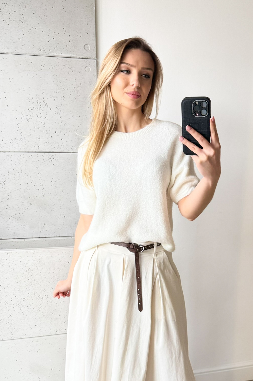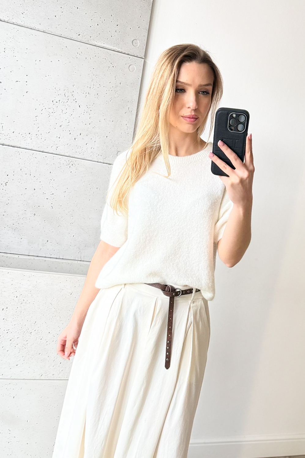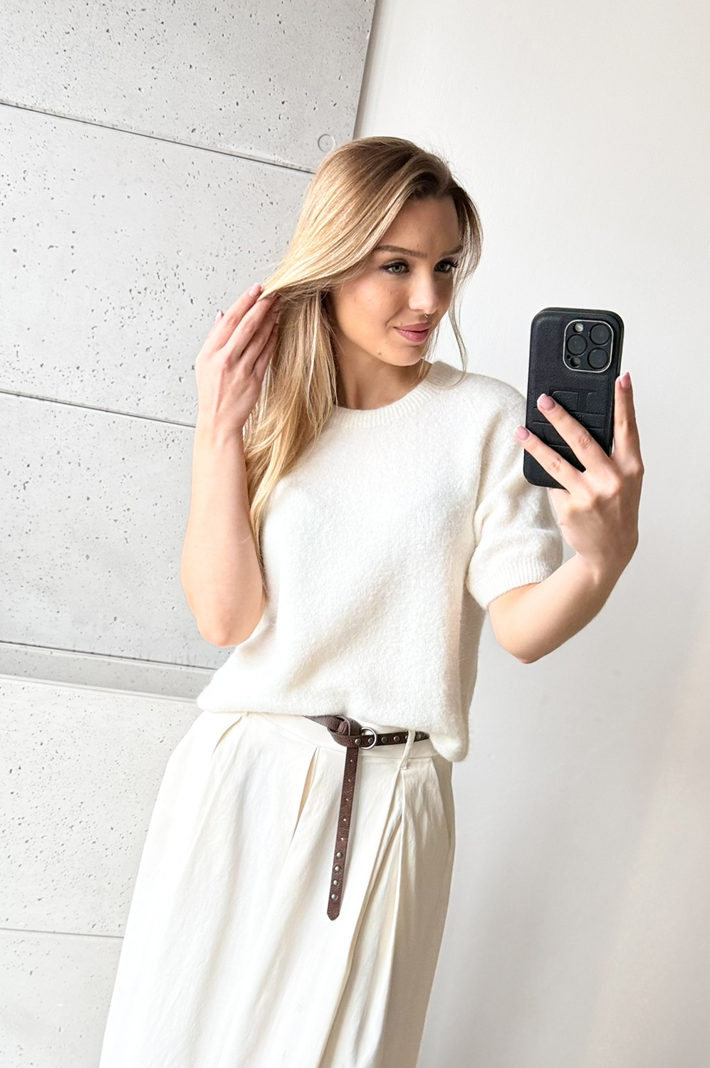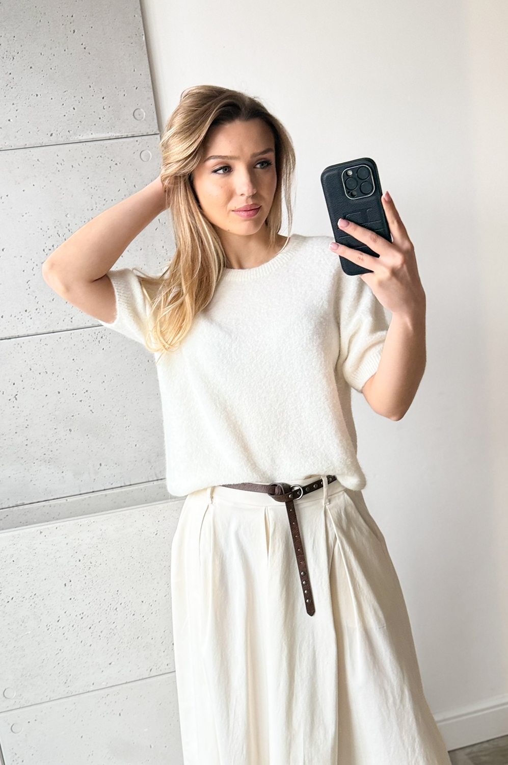 Sweterek ALPAKA KR.RĘKAW ŚMIETANKA119.00 zł Najniższa cena towaru, która obowiązywała w okresie 30 dni przed zastosowaniem obniżki: 149.00 zł Opis Sweterek prosty, bardzo mięciutki.Krótki rękaw wykończony ściągaczem. W składzie BABY ALPAKA, sweterek nie drapie jest cudowny w chwycie i do ciała. SKŁAD: 27% baby alpaka, 38% poliamid- nylon, 22% akryl, 10% wełna, 3% elastan