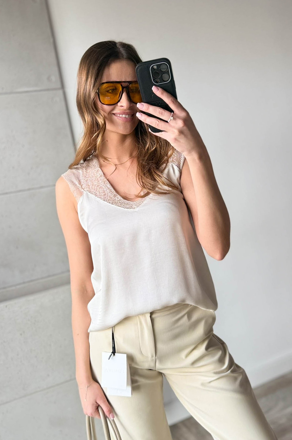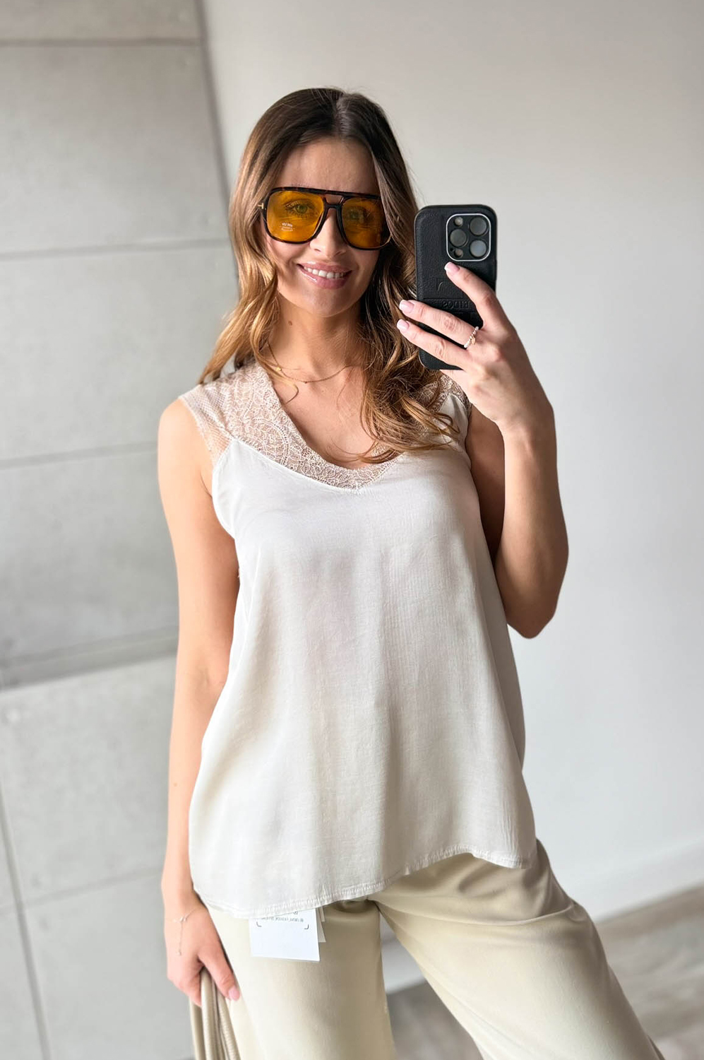 TOP satynowy SATYNA III KORONKA beż129.00 zł Najniższa cena towaru, która obowiązywała w okresie 30 dni przed zastosowaniem obniżki: 129.00 zł Opis Top z bardzo eleganckiej satyny, z koronką na ramionach. Posiada dekolt w szpic, z tyłu gumkę. WYMIARY: Bluzka dla większych, pełniejszych biustów. Polecana od rozmiaru S+ do L
