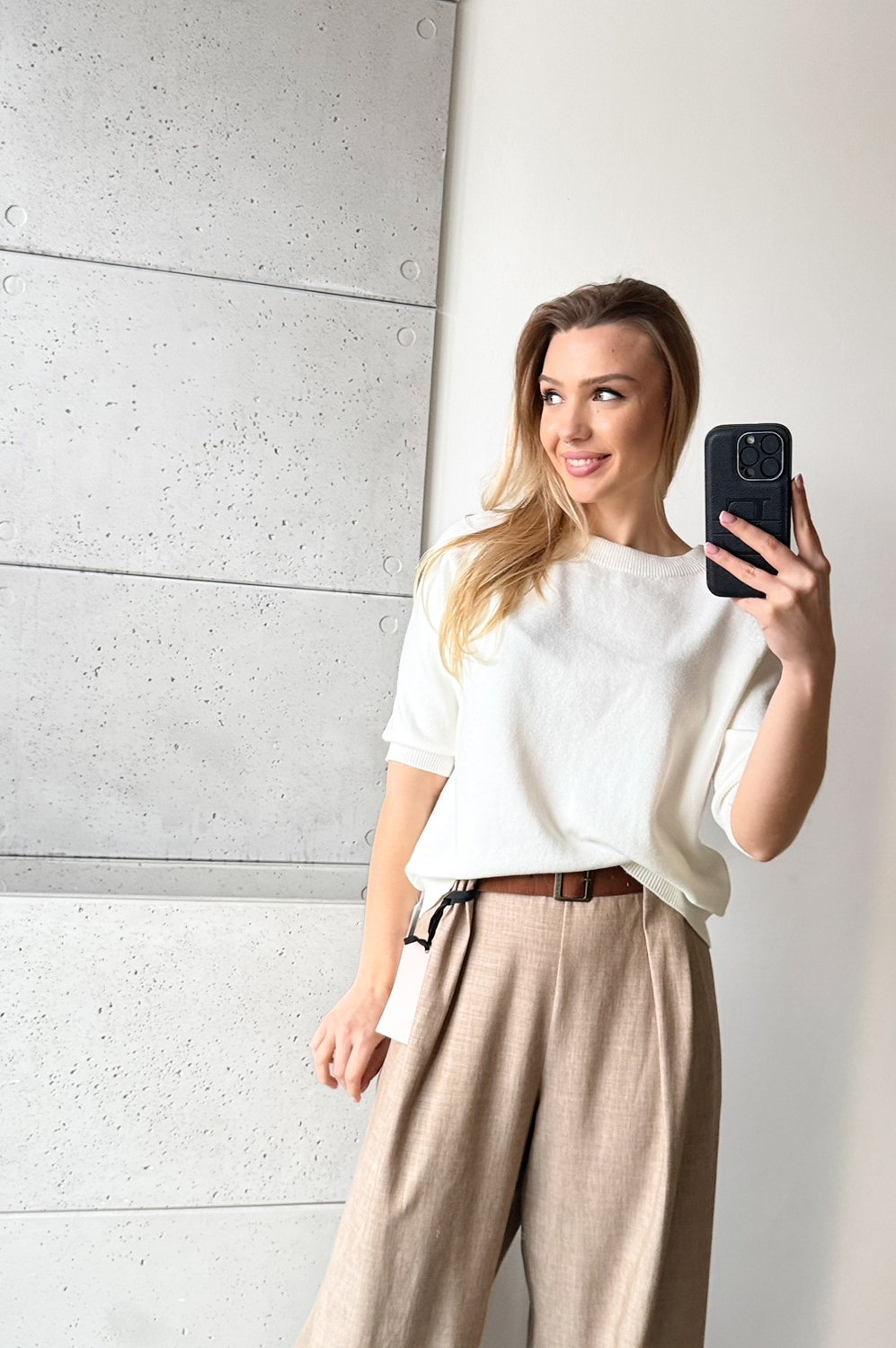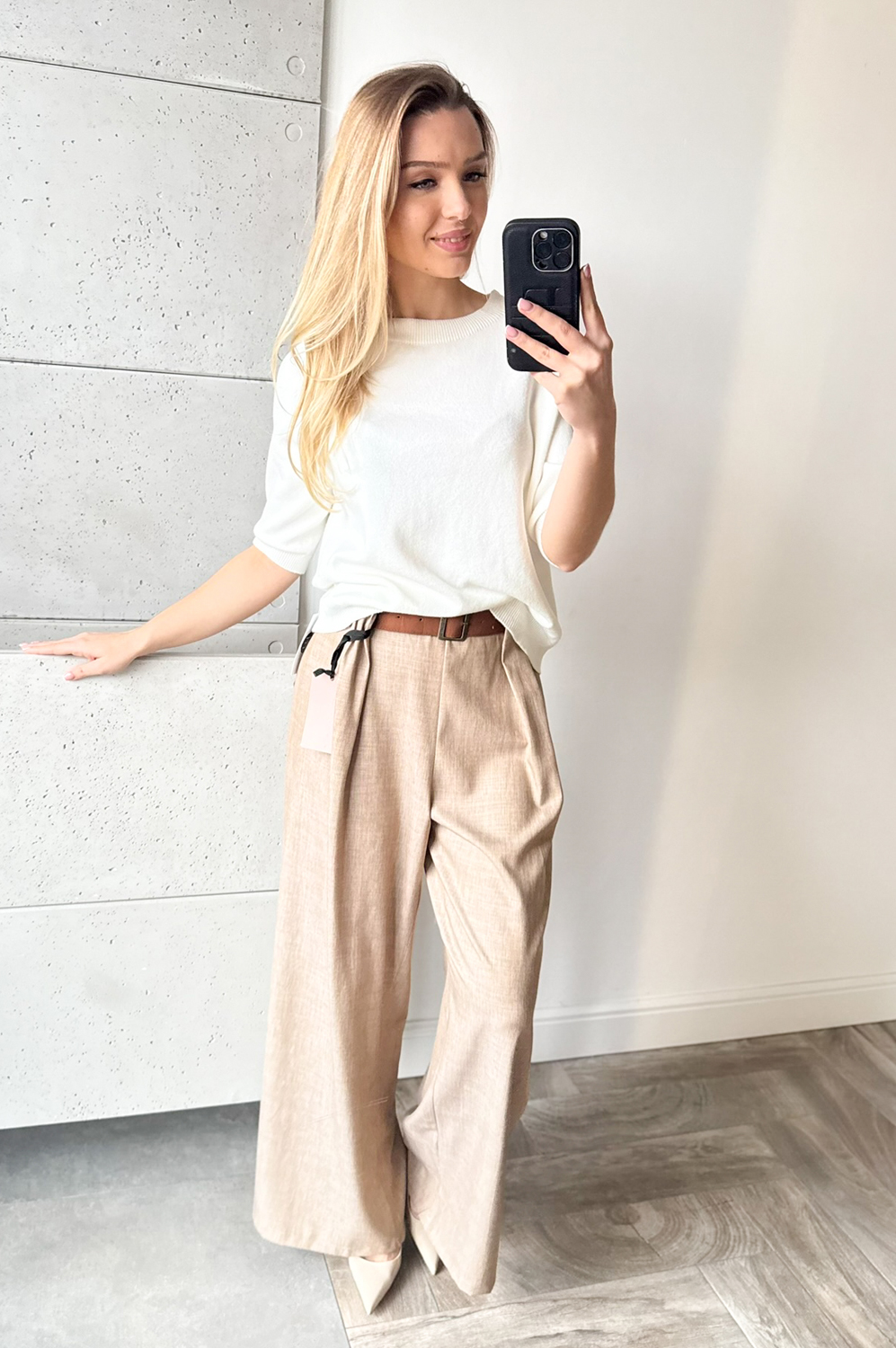 Spodnie MIHOS whisky219.00 zł Najniższa cena towaru, która obowiązywała w okresie 30 dni przed zastosowaniem obniżki: 219.00 zł Opis Spodnie włoskiej firmy MIHOS z prostą nogawką do dołu,kieszenie w szwach bocznych,w tyle w pasie posiada gumę, która idealnie dopasowywuje się do sylwetki,dodatkowo posiada pasek ,który z przodu wdziany jest w efektowną kontrafałdę . WYMIARY; S-M długość zew-108 cm,szerokość pas-74-94cm,biodra do 110cm. M-L długość zew 110cm,szerokość pas -80-100cm,biodra d0 130cm ZASADY KONSERWACJI: PRAĆ W 30 STOPNIACH.