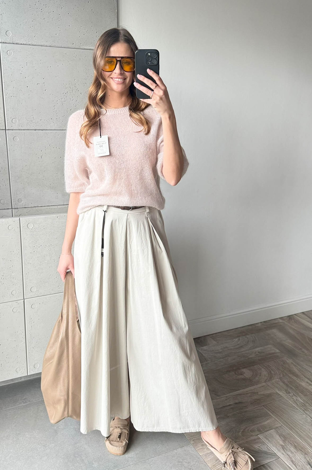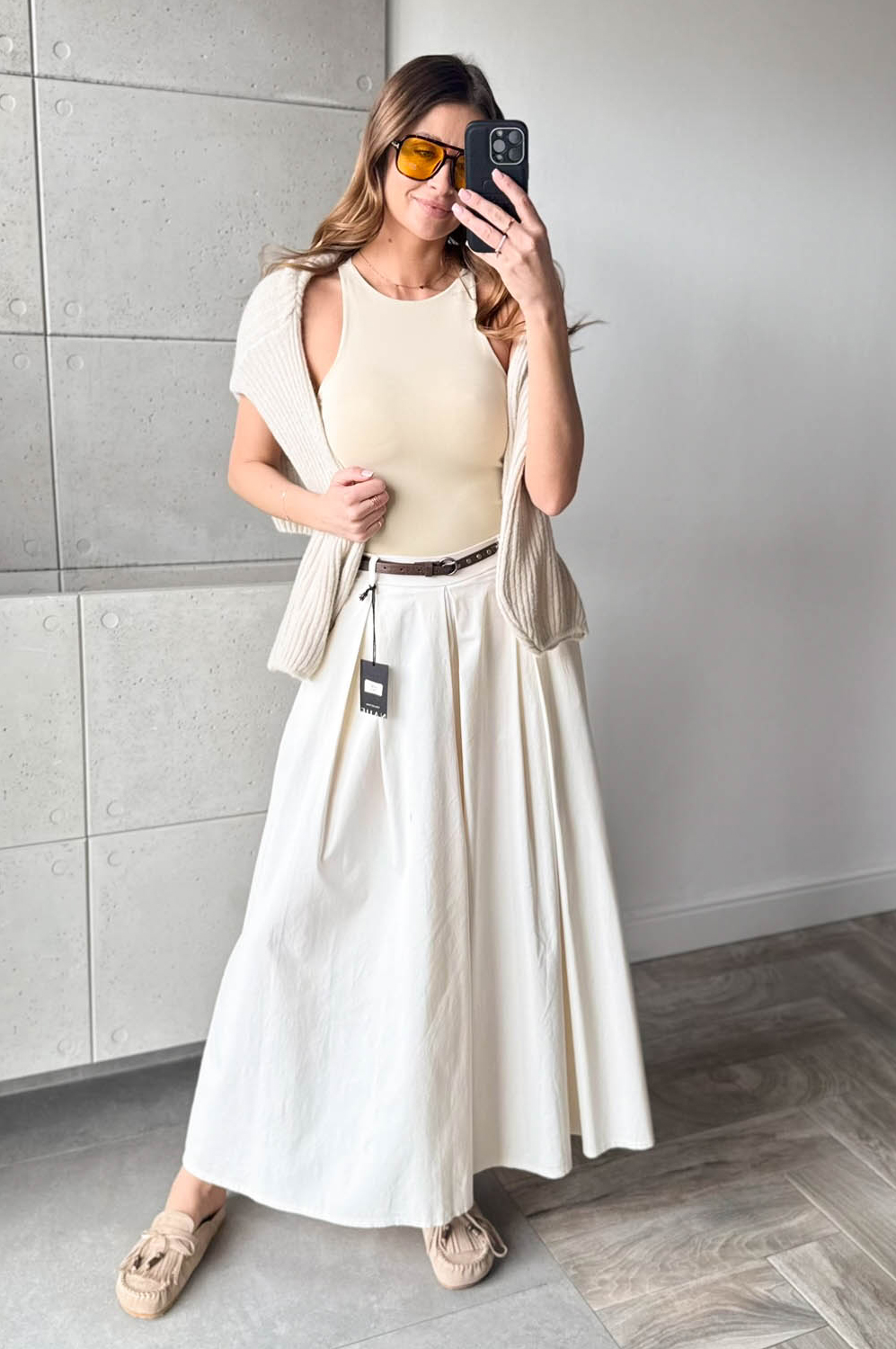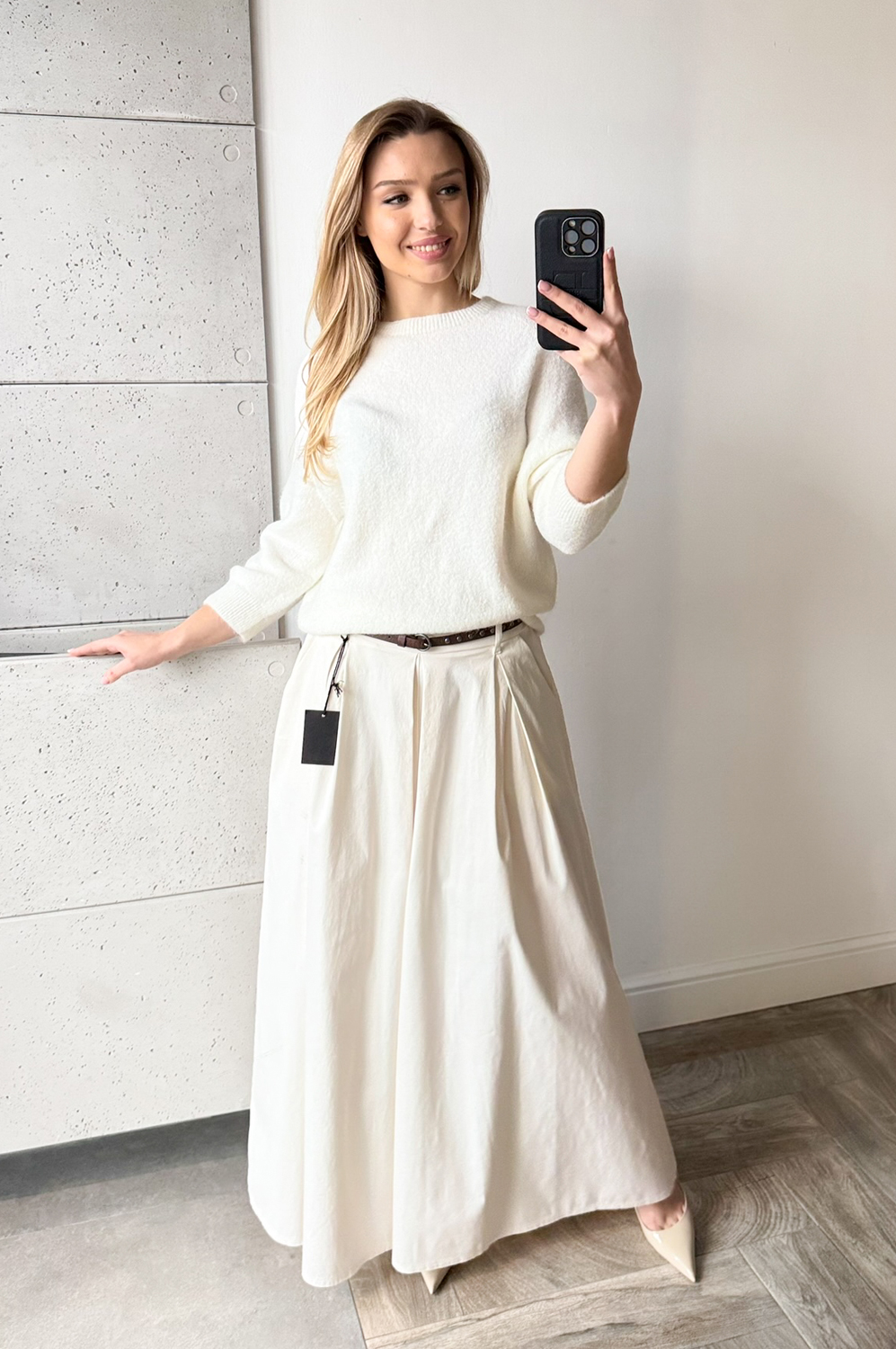 Spodnie SPÓDNICO-SPODNIE KREM125.30 zł Najniższa cena towaru, która obowiązywała w okresie 30 dni przed zastosowaniem obniżki: 179.00 zł Opis Spódnico spodnie z kieszeniami w tyle posiadają gumę. Swietna jakość. WYMIARY: długość 100 cm, szerokośc w pasie 70cm-96cm
