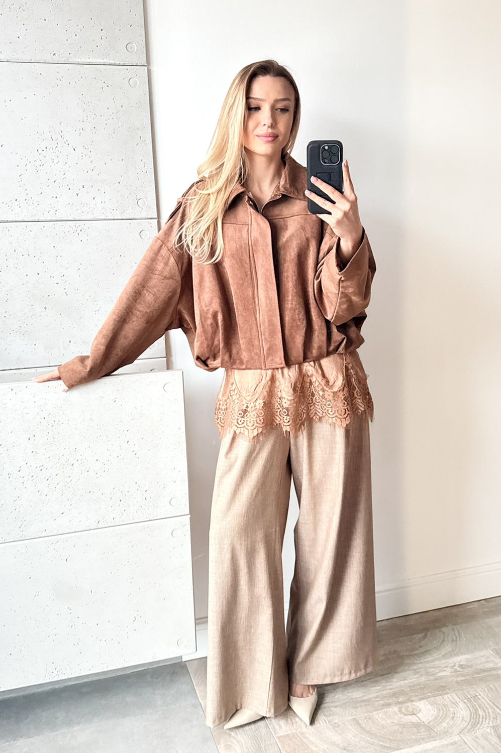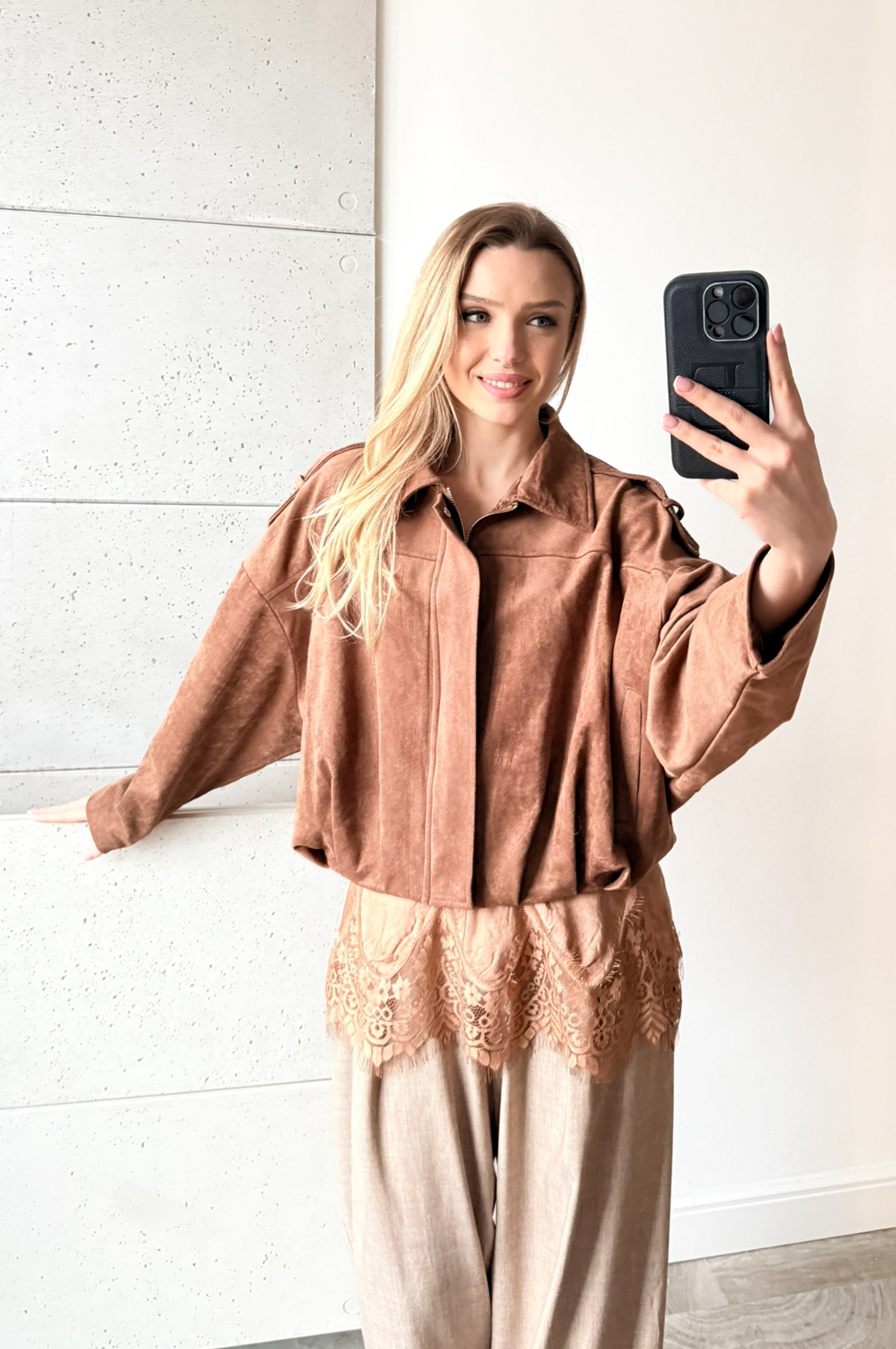 Kurtka WIRALOWA ZAMSZOWA MLECZNA CZEKOLADA219.00 zł Najniższa cena towaru, która obowiązywała w okresie 30 dni przed zastosowaniem obniżki: 219.00 zł Opis WIRALOWA– must have w Twojej szafie! Ta kurtka to prawdziwa ikona stylu – wykonana z mięciutkiego zamszu, która pięknie układa się na sylwetce i nadaje charakteru każdej stylizacji. To model idealny dla kobiet, które cenią odważny, wyrazisty look – świetnie sprawdzi się zarówno do jeansów i T-shirtu, jak i w przełamaniu eleganckiej sukienki. WYMIARY: długość 56cm,szerokość biust 140cm,szerokość biodra do 106cm.