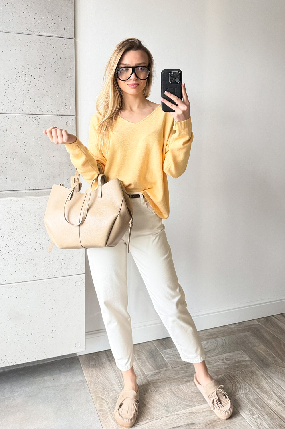 Sweterek BASIC SZPIC melon139.00 zł Najniższa cena towaru, która obowiązywała w okresie 30 dni przed zastosowaniem obniżki: 139.00 zł Opis Bluzka-sweterek z długim rękawem i dekoltem w szpic. Milutka dla ciała, wyglądająco zjawiskowo i elegancko.