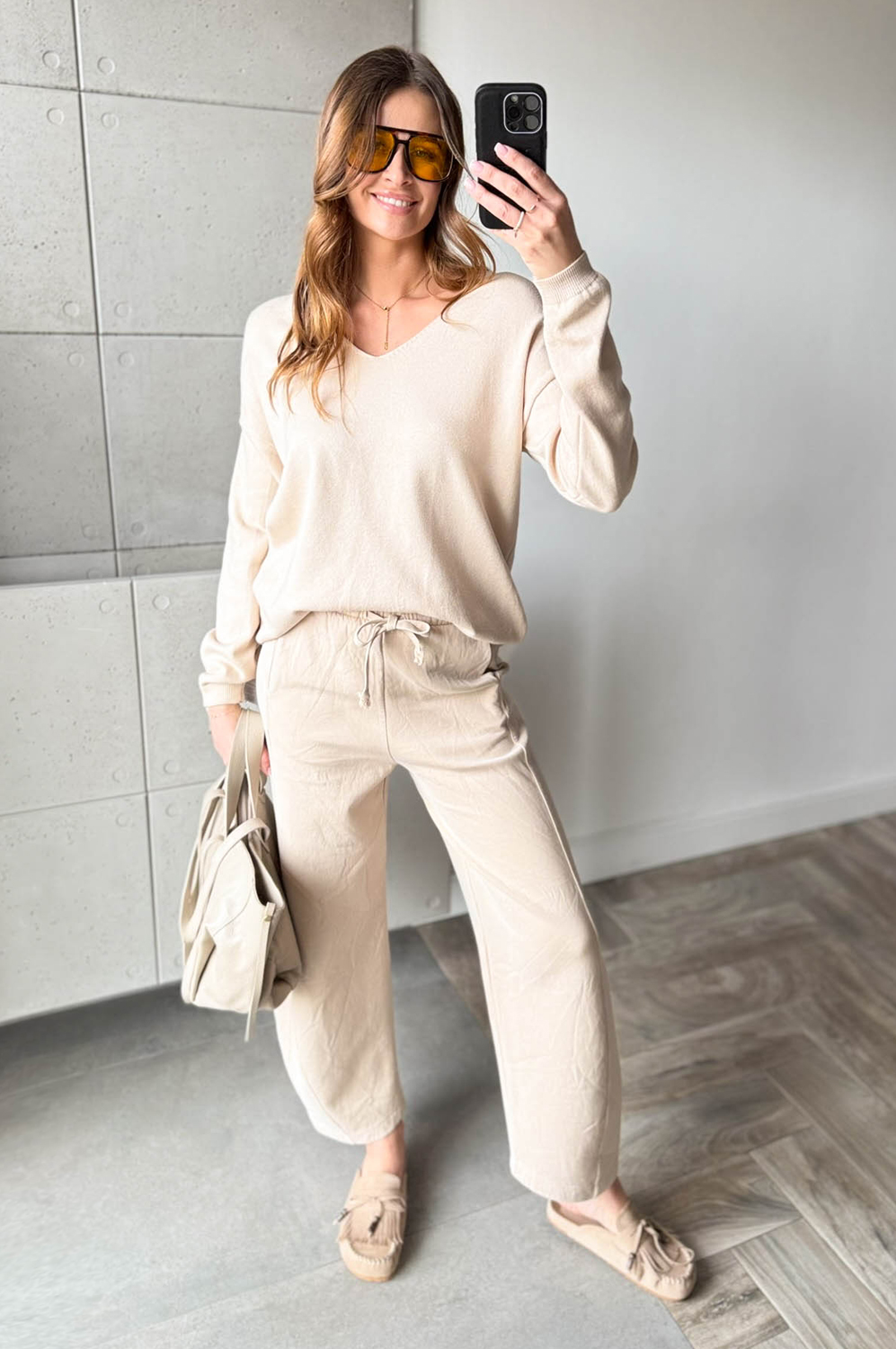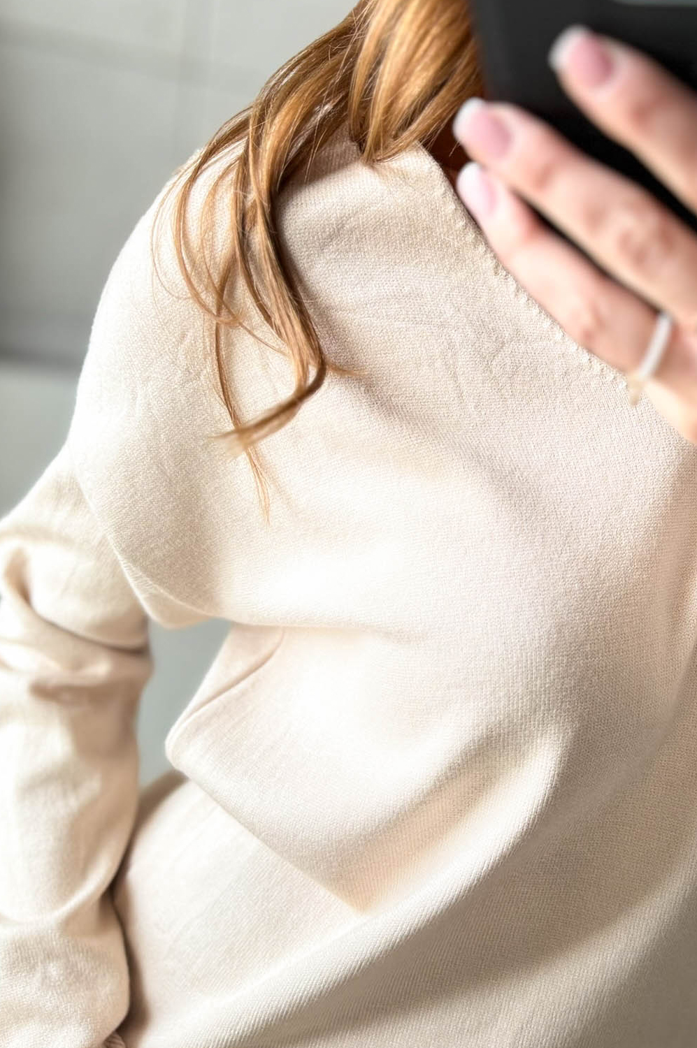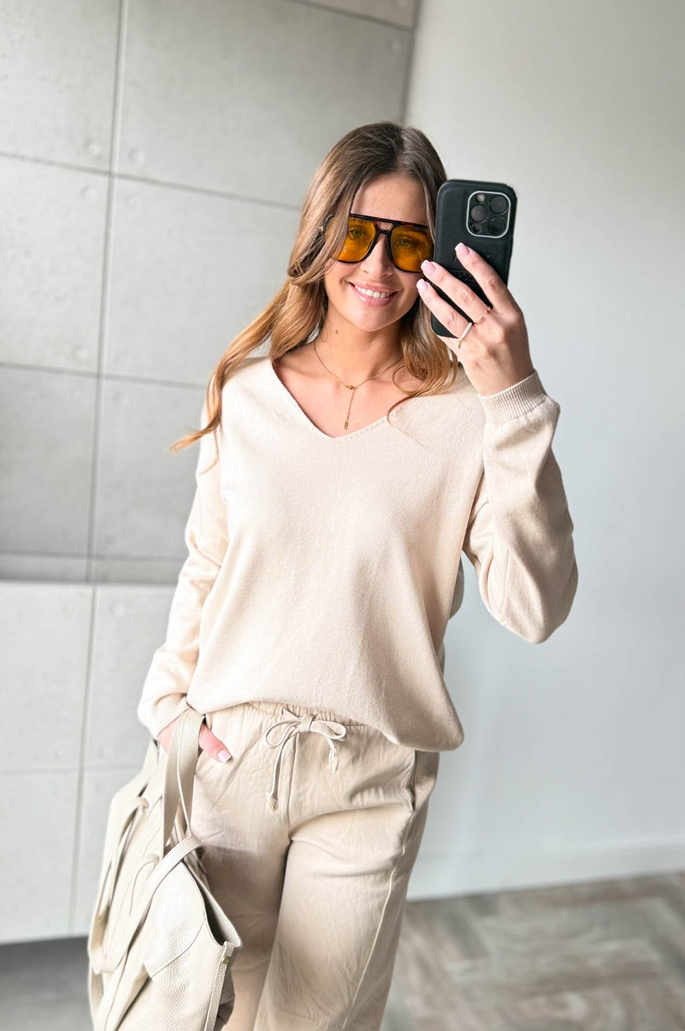 Bluzka-sweterek z długim rękawem i dekoltem w szpic. Milutka dla ciała, wyglądająco zjawiskowo i elegancko.