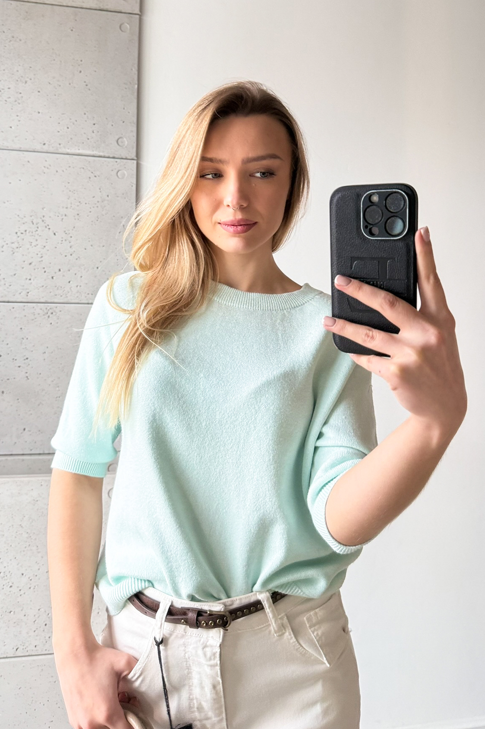 Sweterek RAGLAN WISKOZA mięta129.00 zł Najniższa cena towaru, która obowiązywała w okresie 30 dni przed zastosowaniem obniżki: 129.00 zł Opis Bluzka-sweterek z krótkim rękawem. Milutka dla ciała, wyglądająco zjawiskowo i elegancko. ZASADY KONSERWACJI : PRANIE W 30 STOPNIACH.