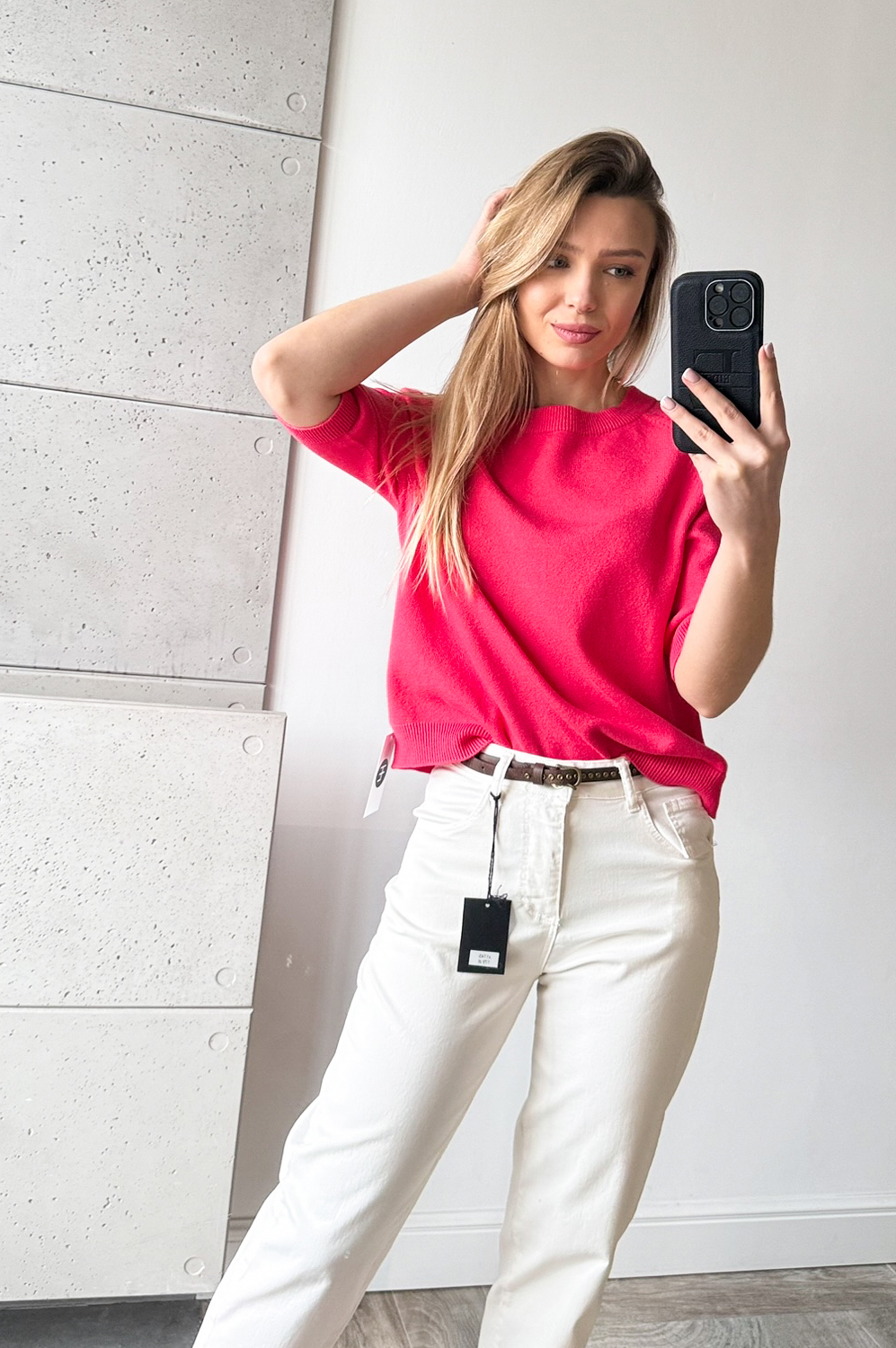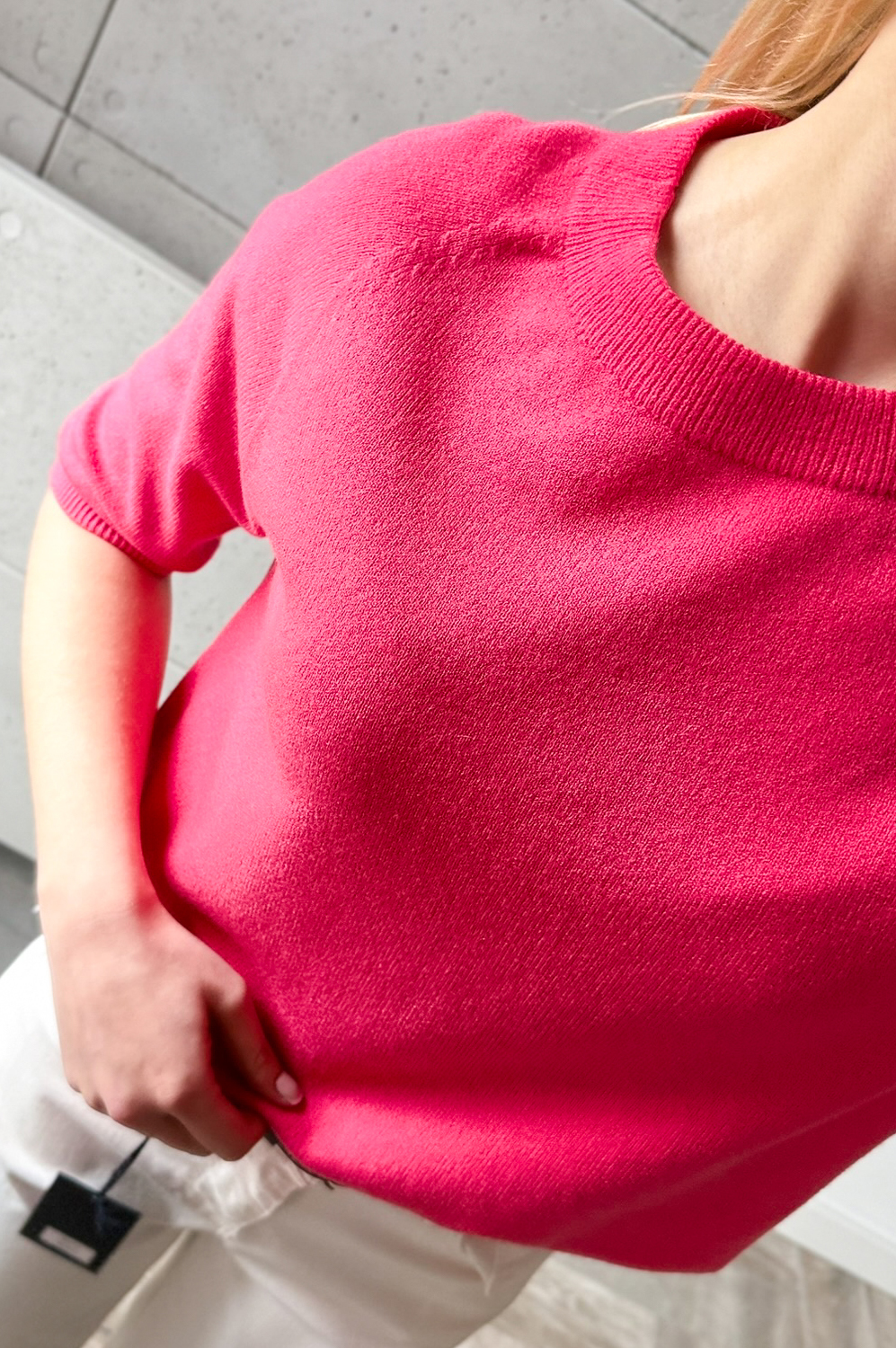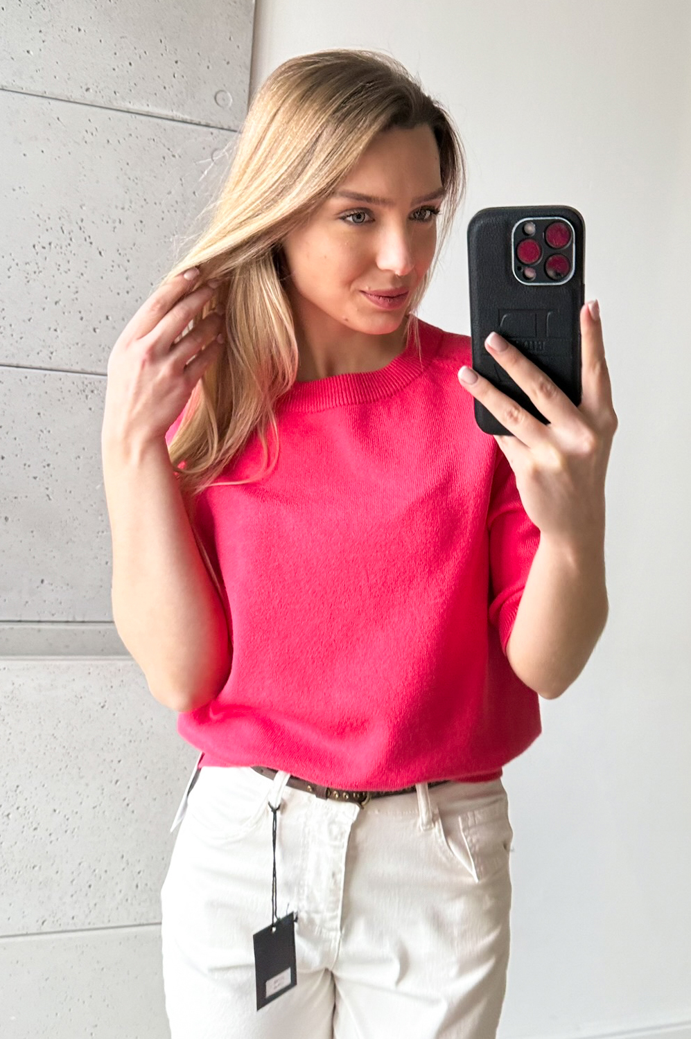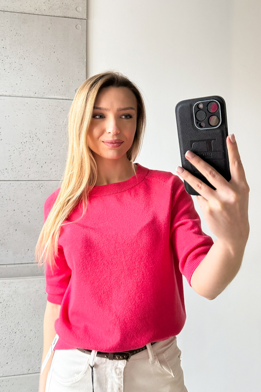 Bluzka-sweterek z kótkim rękawem. Milutka dla ciała, wyglądająco zjawiskowo i elegancko.