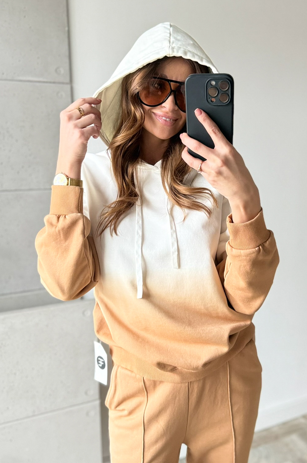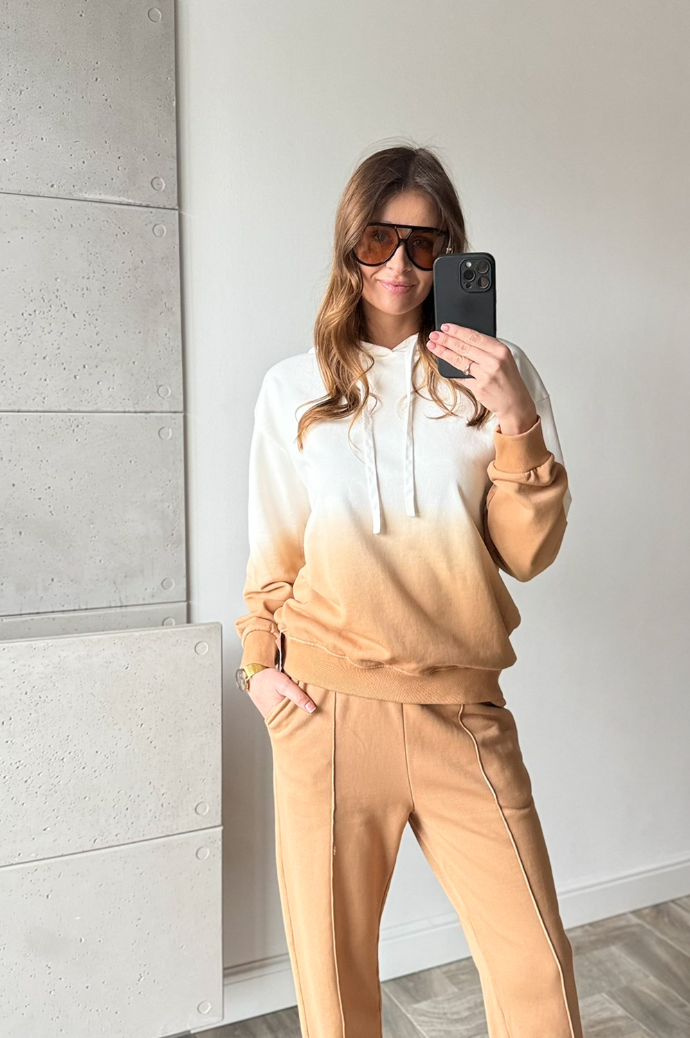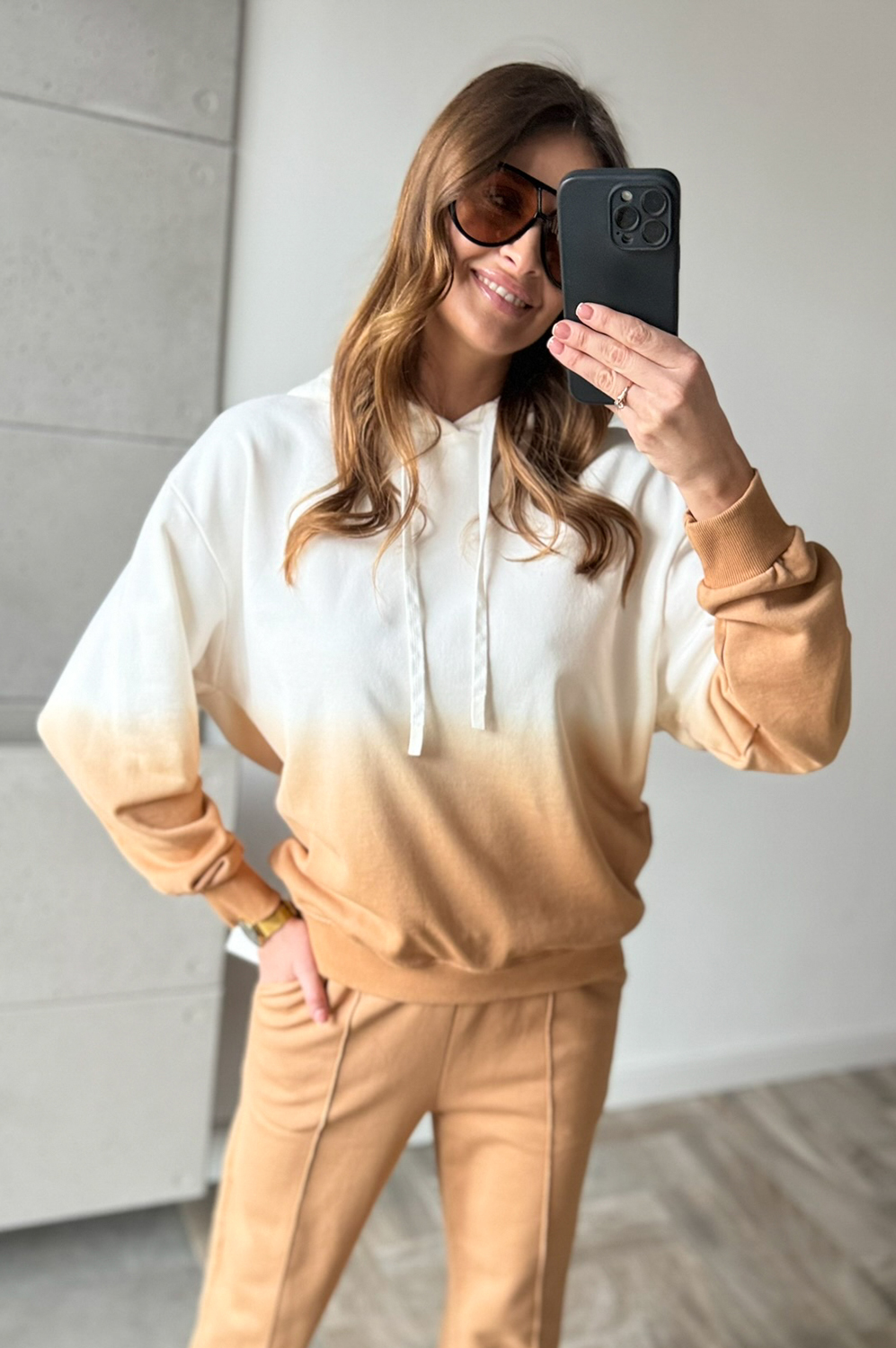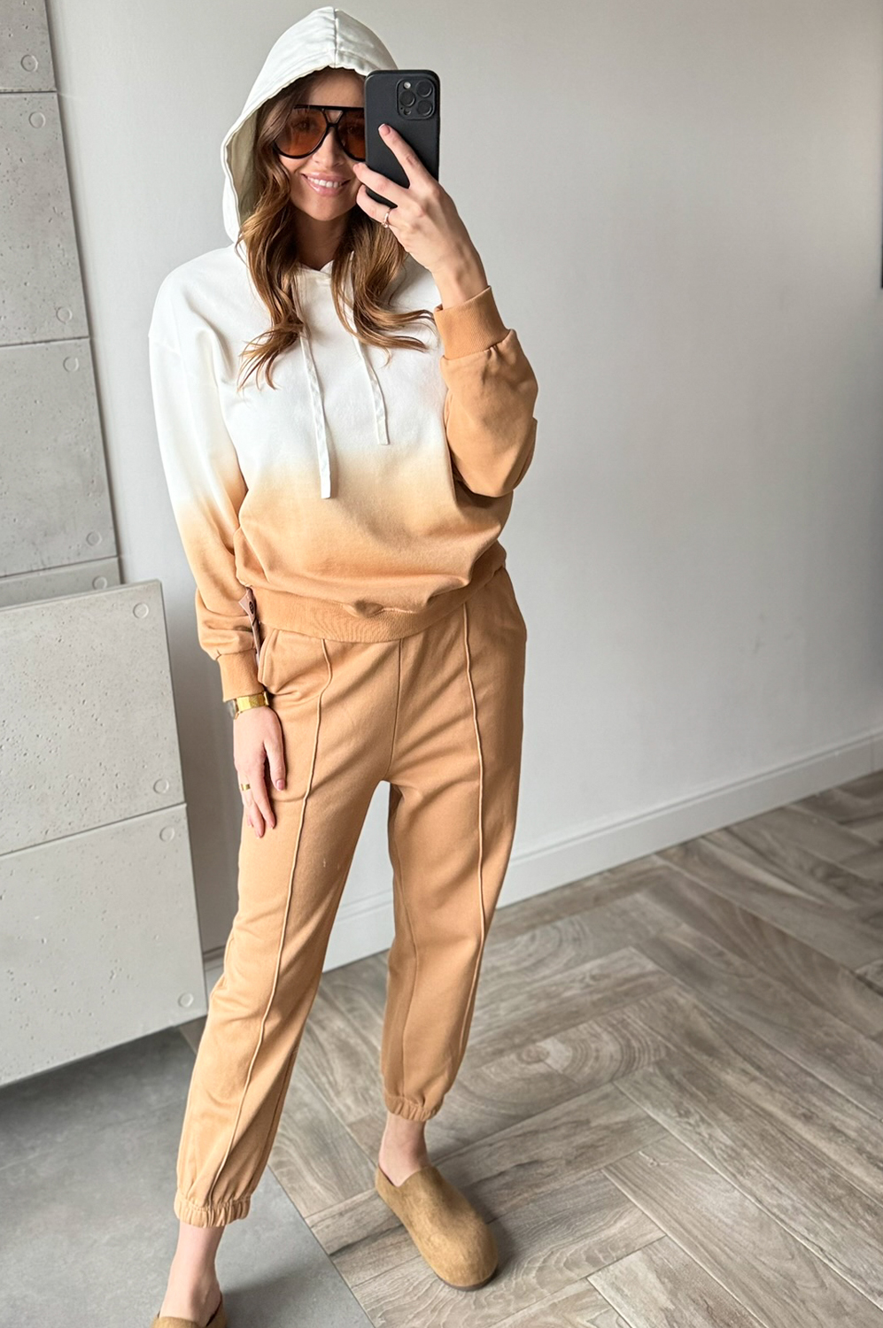 Komplet dresowy OMBRE CARMELOWO-ECRU249.00 zł Najniższa cena towaru, która obowiązywała w okresie 30 dni przed zastosowaniem obniżki: 249.00 zł Opis Komplet dresowy cieniowany. Bluza posiada kaptur ,spodnie w w gume w pasie oraz na dole posiada gumę w formie mankietu. WYMIARY: Pasuje na rozmiary S MBLUZA ;DŁ66CM,SZER;120CM