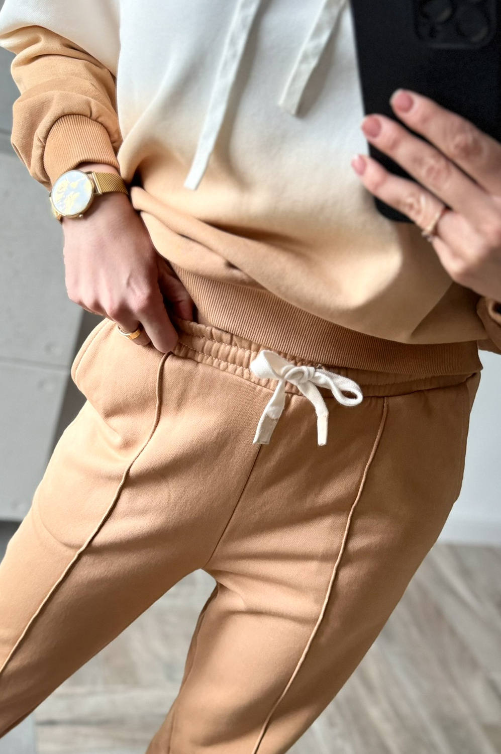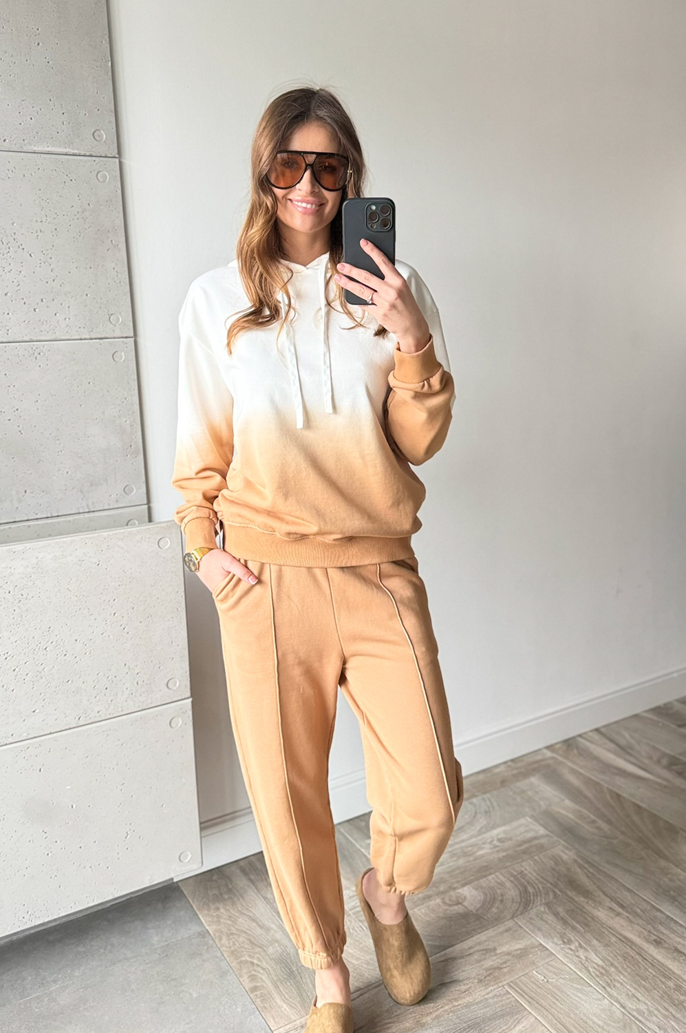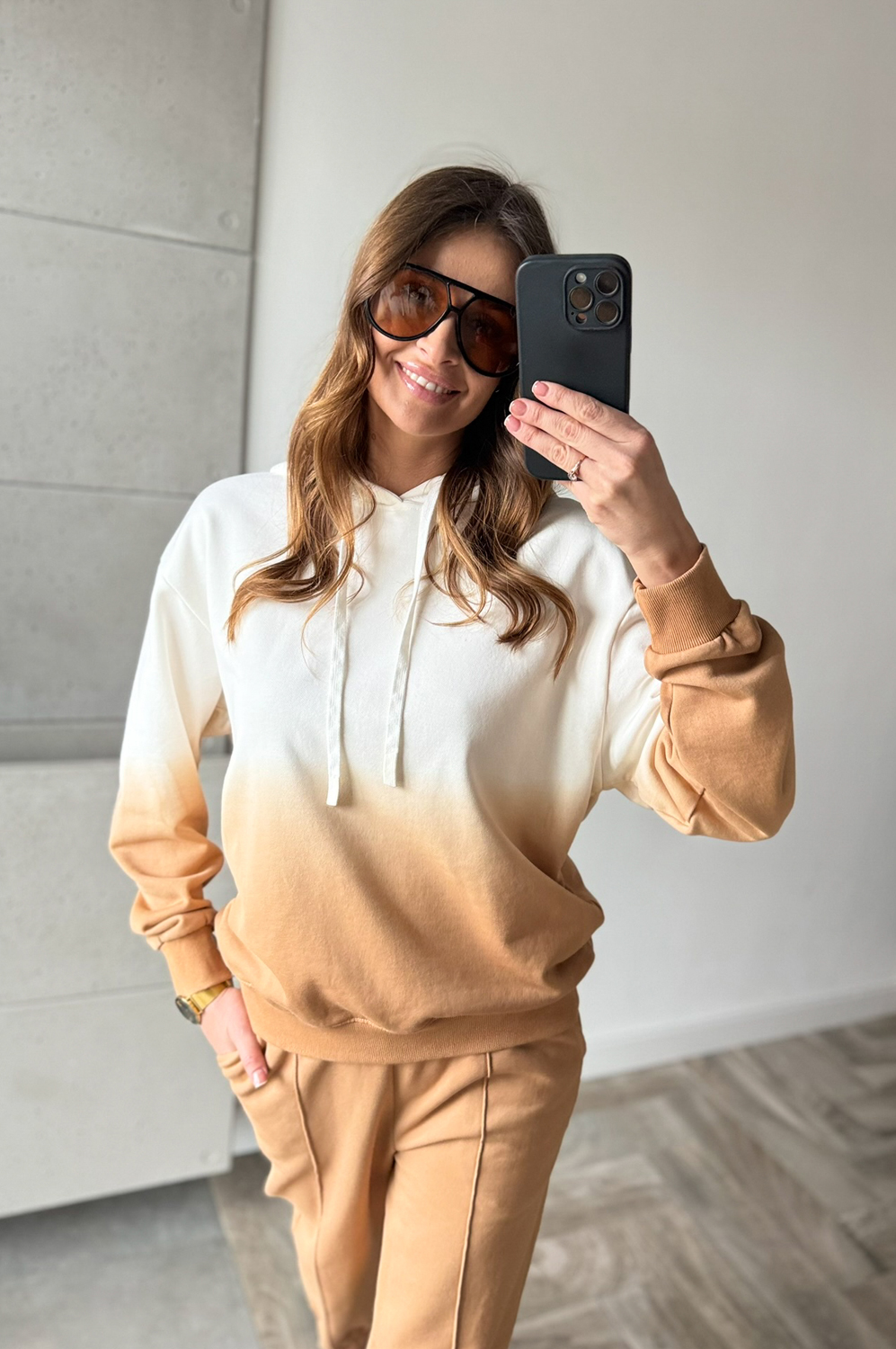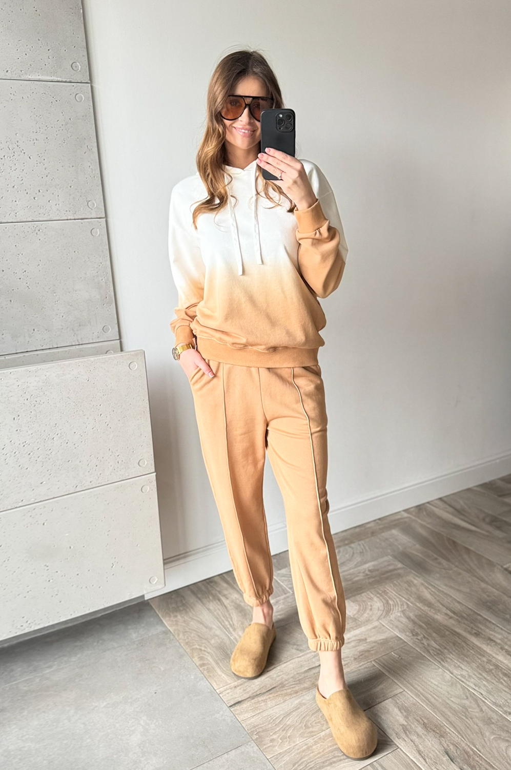 Komplet dresowy OMBRE CARMELOWO-ECRU249.00 zł Najniższa cena towaru, która obowiązywała w okresie 30 dni przed zastosowaniem obniżki: 249.00 zł Opis Komplet dresowy cieniowany. Bluza posiada kaptur ,spodnie w w gume w pasie oraz na dole posiada gumę w formie mankietu. WYMIARY: Pasuje na rozmiary S MBLUZA ;DŁ66CM,SZER;120CM
