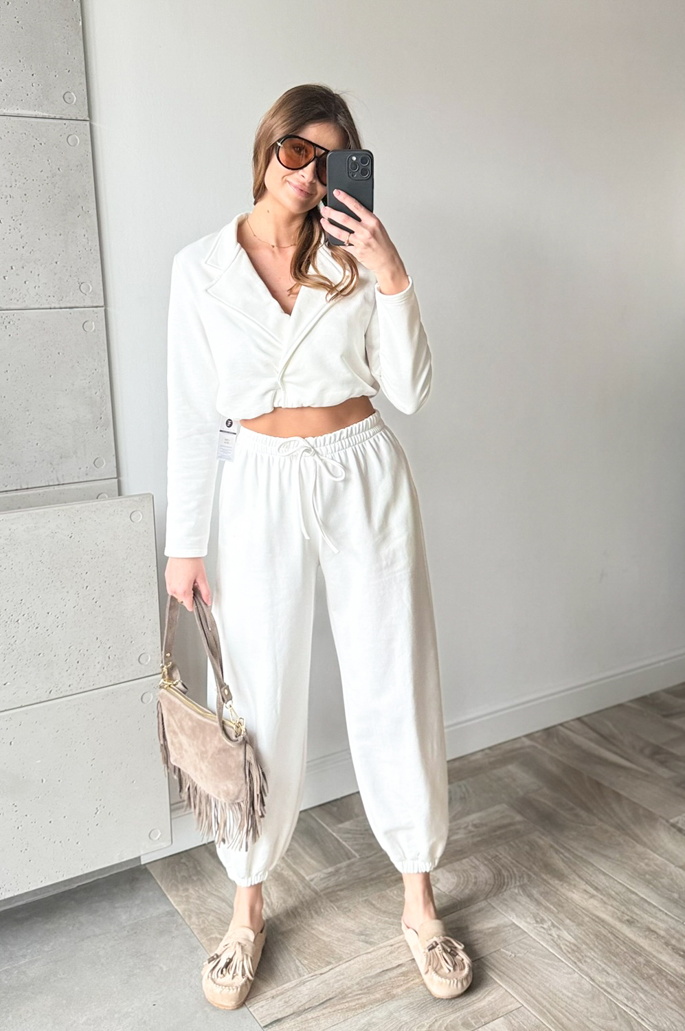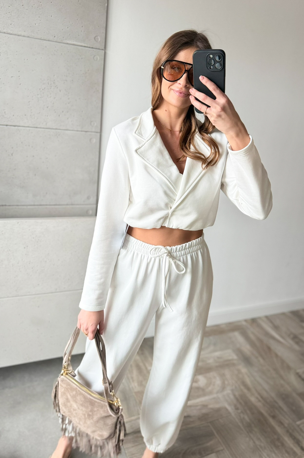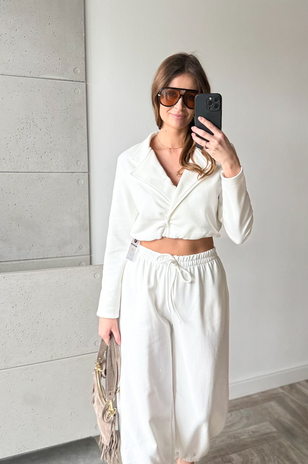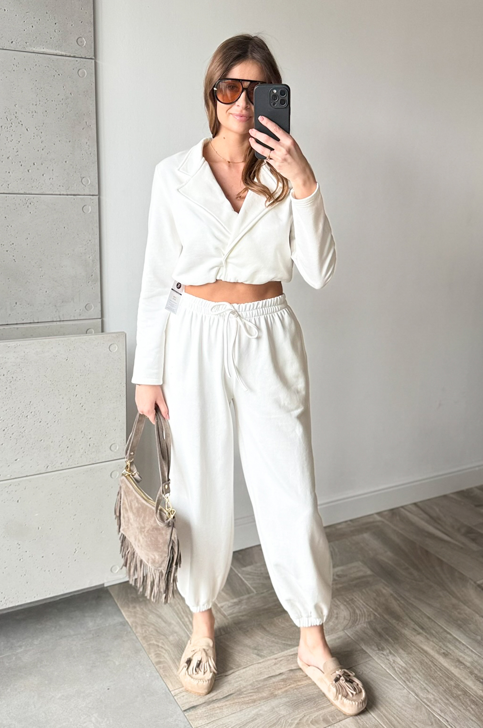 Komplet dresowy AZARA ŚMIETANKA239.00 zł Najniższa cena towaru, która obowiązywała w okresie 30 dni przed zastosowaniem obniżki: 239.00 zł Opis Komplet dresowy włoskiej firmyAZARA . Bluza jest w formie krótkiej marynarki,spodnie w w gume w pasie oraz na dole posiada gumę w formie mankietu. WYMIARY: BLUZA ;DŁ 43CM,SZER 100CM