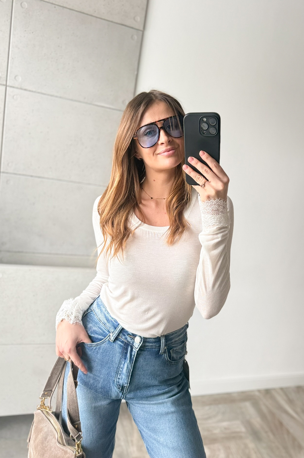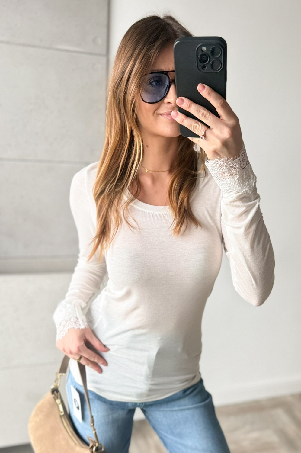 Bluzka KASZMIREK LUMINA - koronka przy rękawie ŚMIETANKA119.00 zł Najniższa cena towaru, która obowiązywała w okresie 30 dni przed zastosowaniem obniżki: 119.00 zł Opis Zwrot ZWROTY
