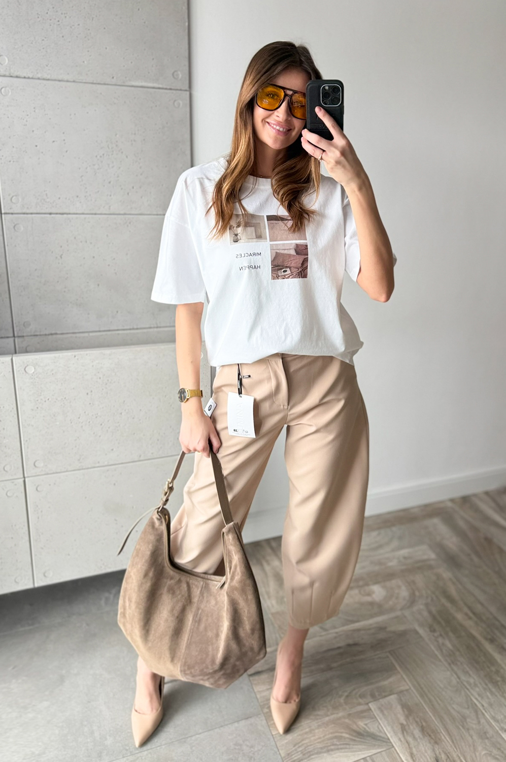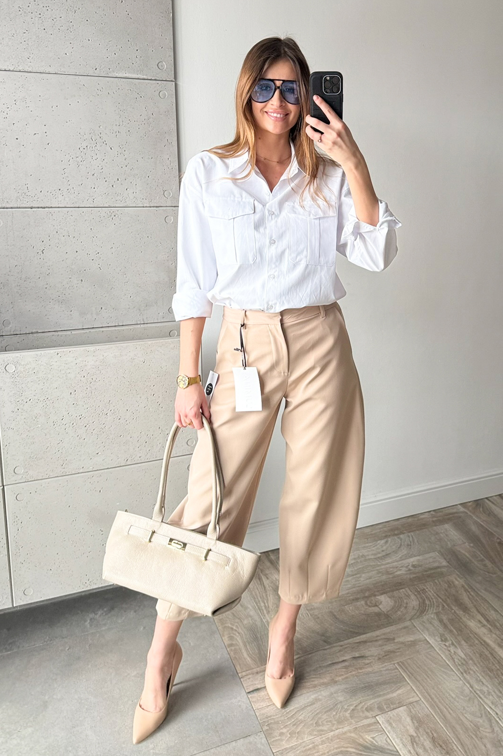 Spodnie BALONOWE LUMINA pudrowy beż99.00 zł 179.00 zł Najniższa cena towaru, która obowiązywała w okresie 30 dni przed zastosowaniem obniżki: 179.00 zł Opis Spodnie balonowe, łądnie modelujące figurę i,wykonane z miękkiej przyjemnej do ciała tkaniny. WYMIARY: