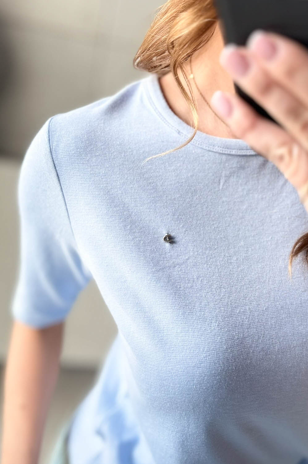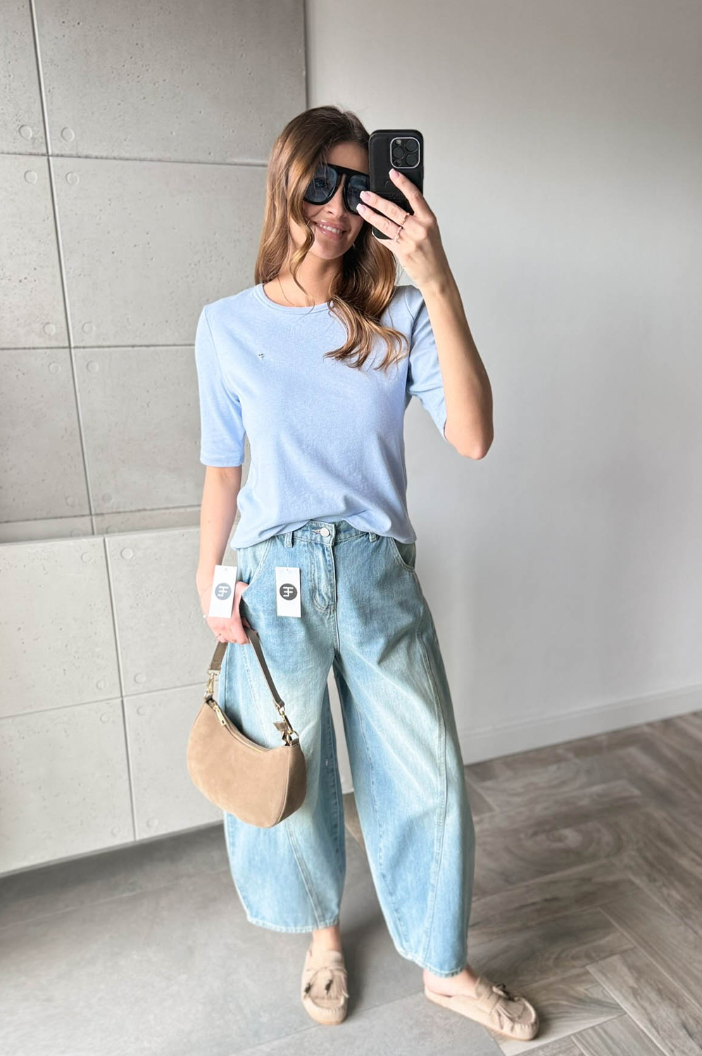 Bluzka YOY BASIC DO ŁOKCIA błękit79.20 zł Najniższa cena towaru, która obowiązywała w okresie 30 dni przed zastosowaniem obniżki: 99.00 zł Opis Bluzka z krótkim rękawem z delikatnej, bardzo elastycznej i miękkiej bawełny, typowy basic pod marynarkę oraz innych ciekawych stylizacji. ZASADY KONSERWACJI : PRAĆ W TEMPERATURZE 30 stopni.