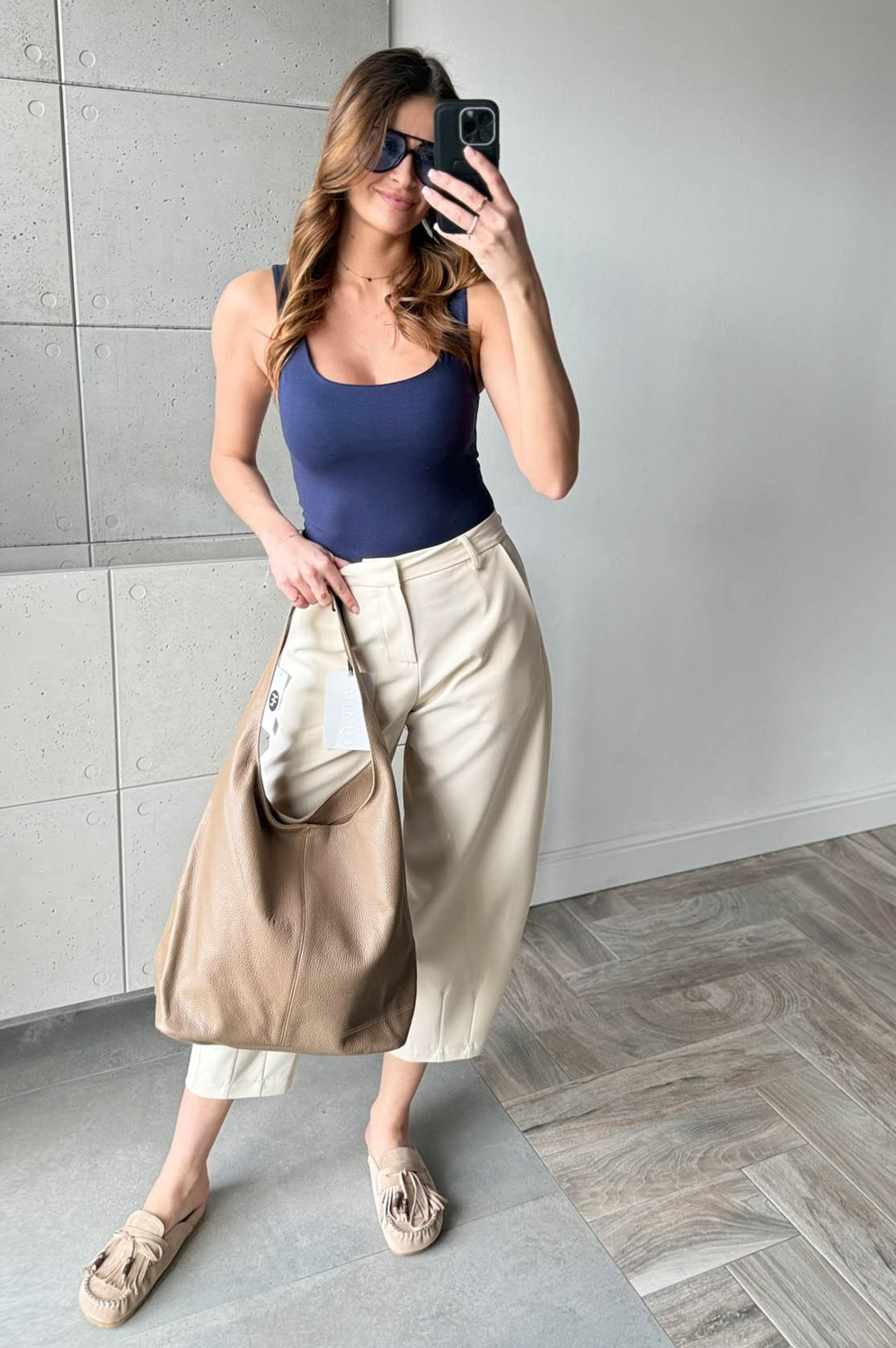Bluzka TOP WISKOZA granat69.00 zł Najniższa cena towaru, która obowiązywała w okresie 30 dni przed zastosowaniem obniżki: 69.00 zł Opis Koszulka bez rękawków, z okrągłym dekoltem, bardzo elastyczna SKŁAD : 95%wiskoza, 5% elastan