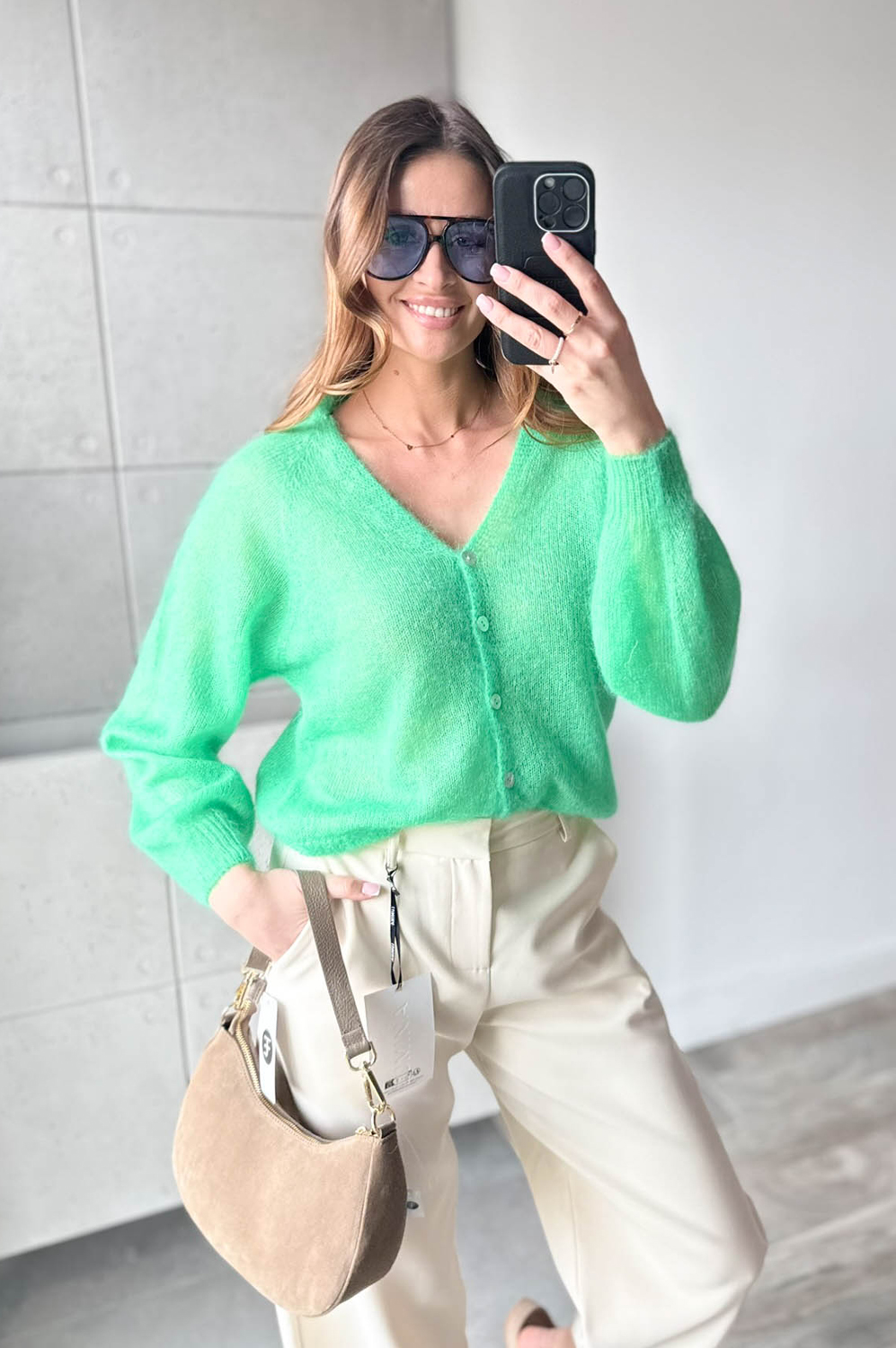 Sweterek MOHER NA GUZICZKI zielony209.00 zł Najniższa cena towaru, która obowiązywała w okresie 30 dni przed zastosowaniem obniżki: 209.00 zł Opis Zwrot ZWROTY