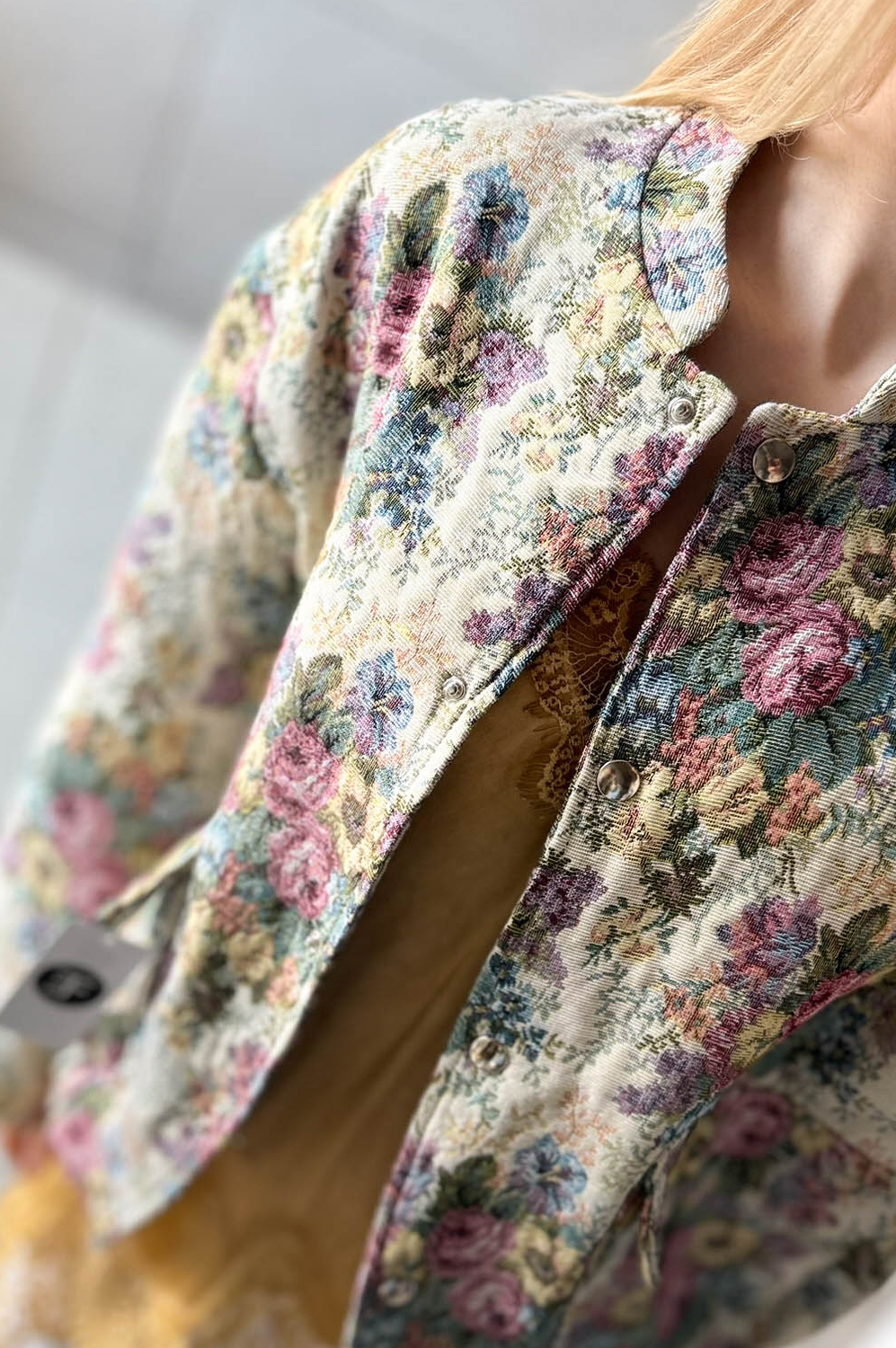 Bomberka z printem dużego kwiata,zapinana na napy,posiada kieszenie z patkami