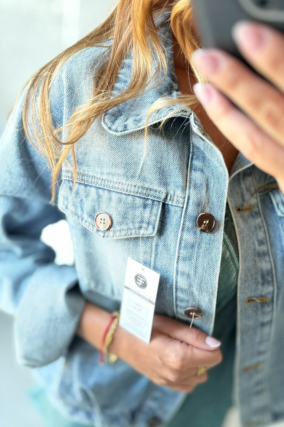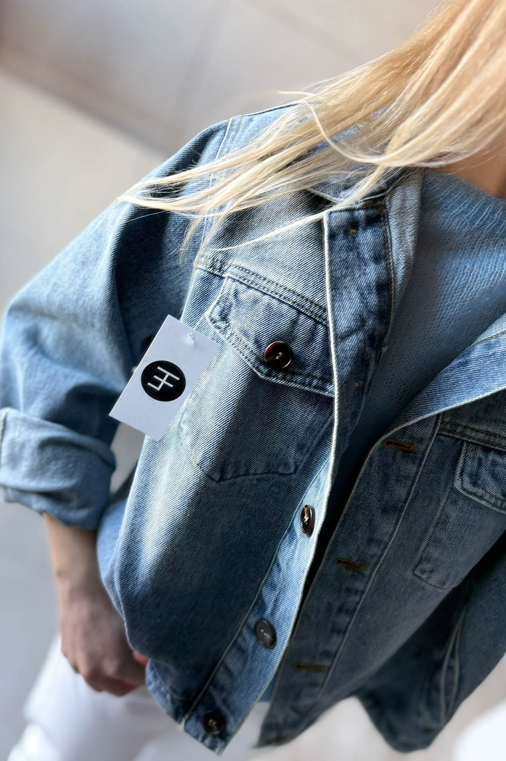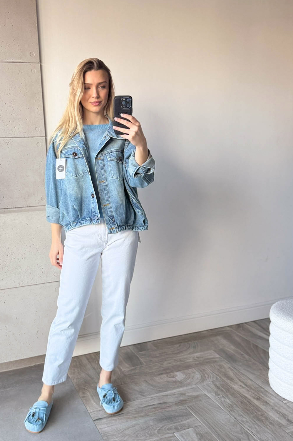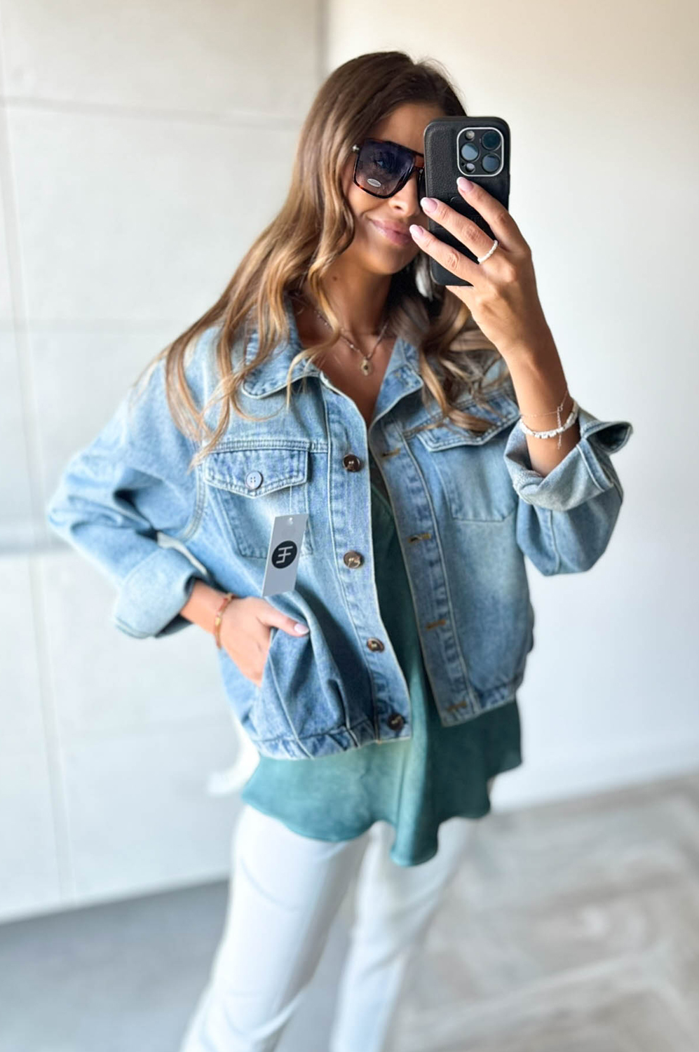 Kurtka jeansowa oversizowa ,zapinana na napy,na dole posiada gumkę .