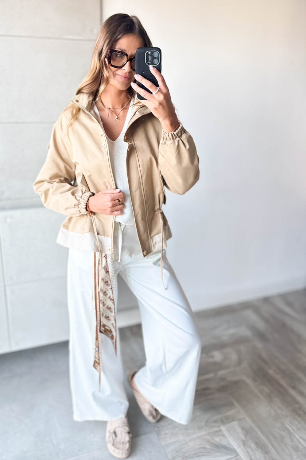 Kurtka parka , taliowana. Zapinana na zamek i napy,z dosadkową wypustką w kolorze ecru.