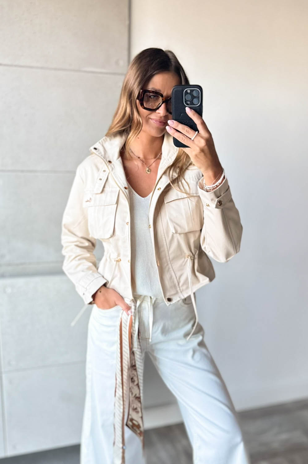 Kurtka KURTKA PARKA beż259.00 zł Najniższa cena towaru, która obowiązywała w okresie 30 dni przed zastosowaniem obniżki: 259.00 zł Opis Kurtka parka dopasowana, taliowana. Zapinana na zamek i napy WYMIARY: S wypada jak M