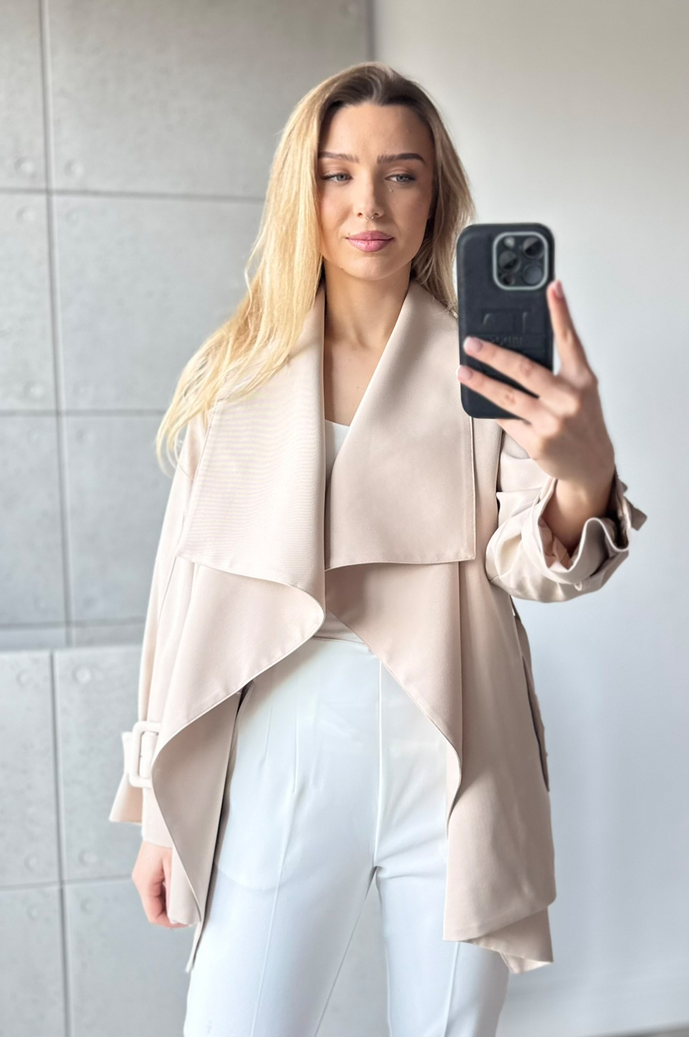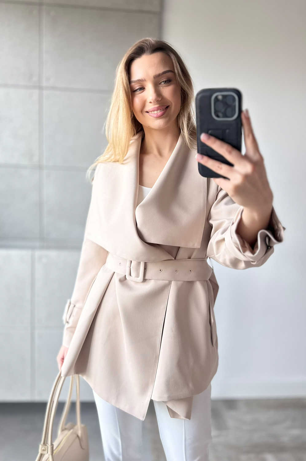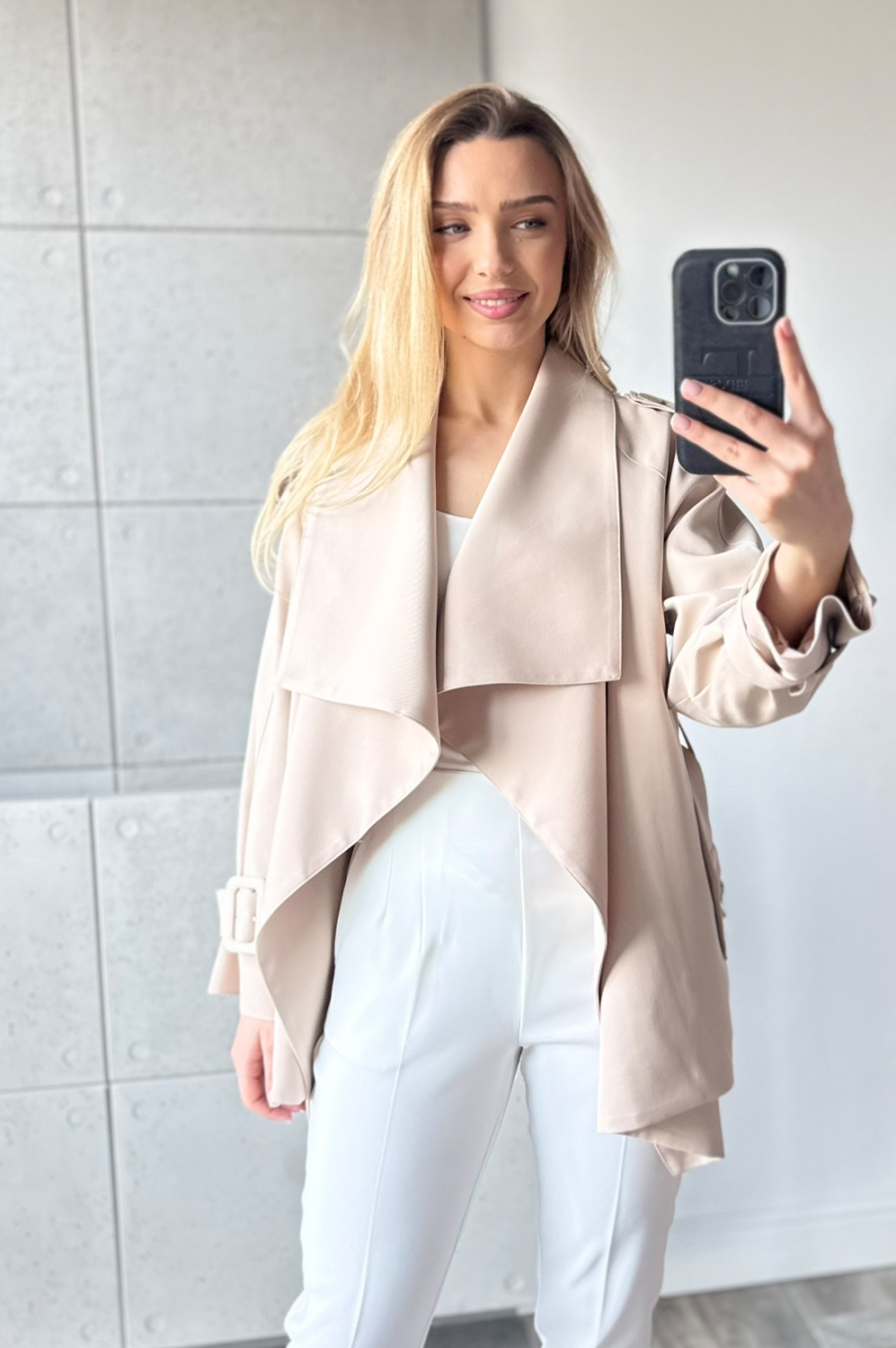 Kurtka KLASYCZNA beż255.20 zł Najniższa cena towaru, która obowiązywała w okresie 30 dni przed zastosowaniem obniżki: 319.00 zł Opis Klasyczny płaszc do połowy bioderka, idealnie odnajdzie się zarówno w stylizacji wiosennej jak i póżniej na jesień.Paszcz jest przepięknie odszyty na podszewce dodatkowo posiada pasek. ZASADY KONSERWACJI : PRANIE W 30 STOPNIACH.