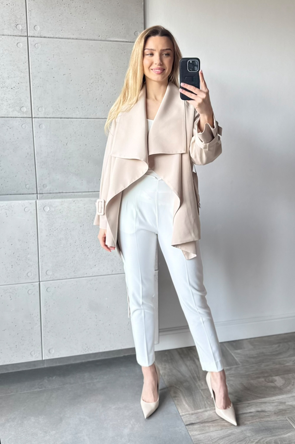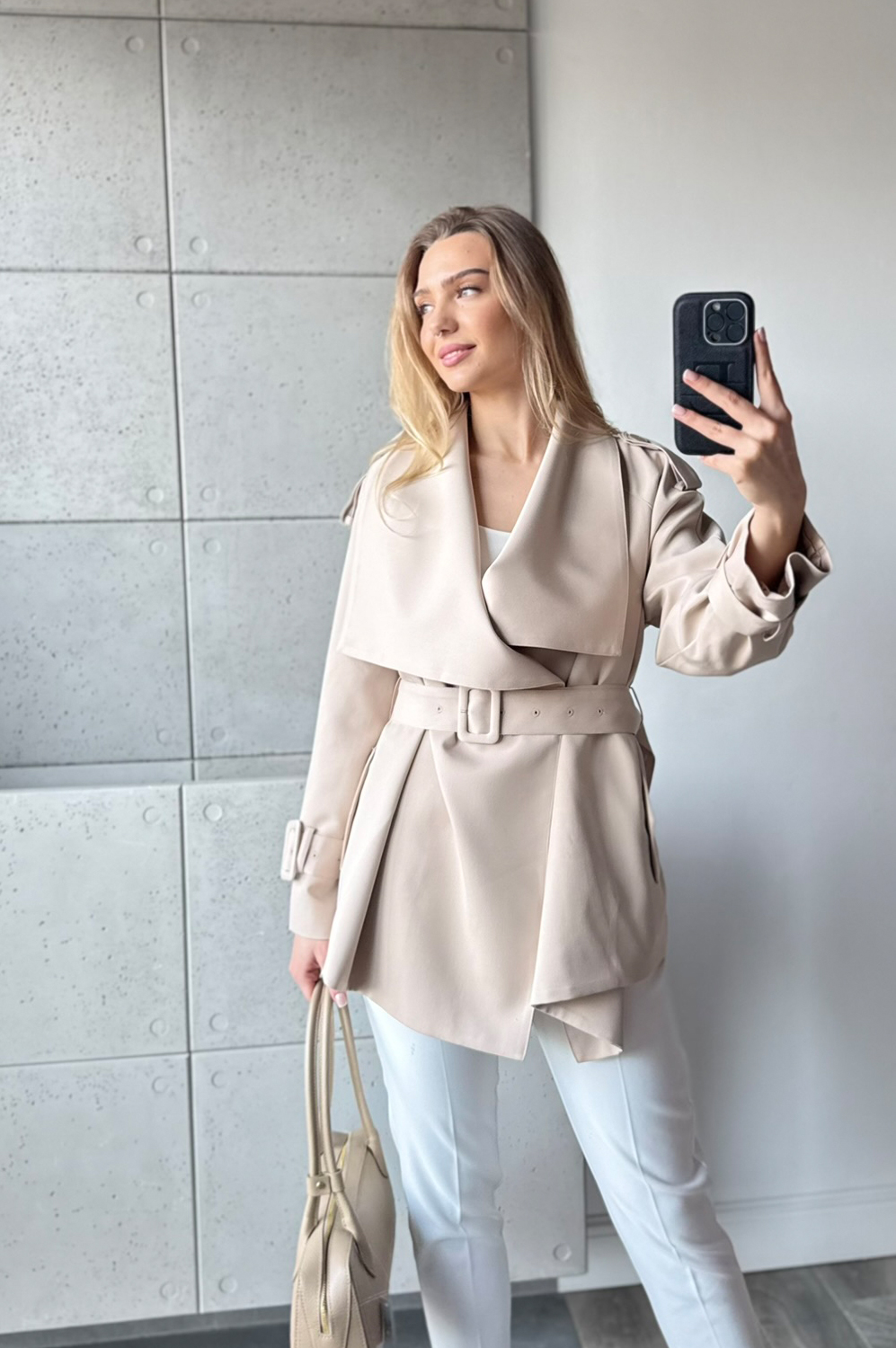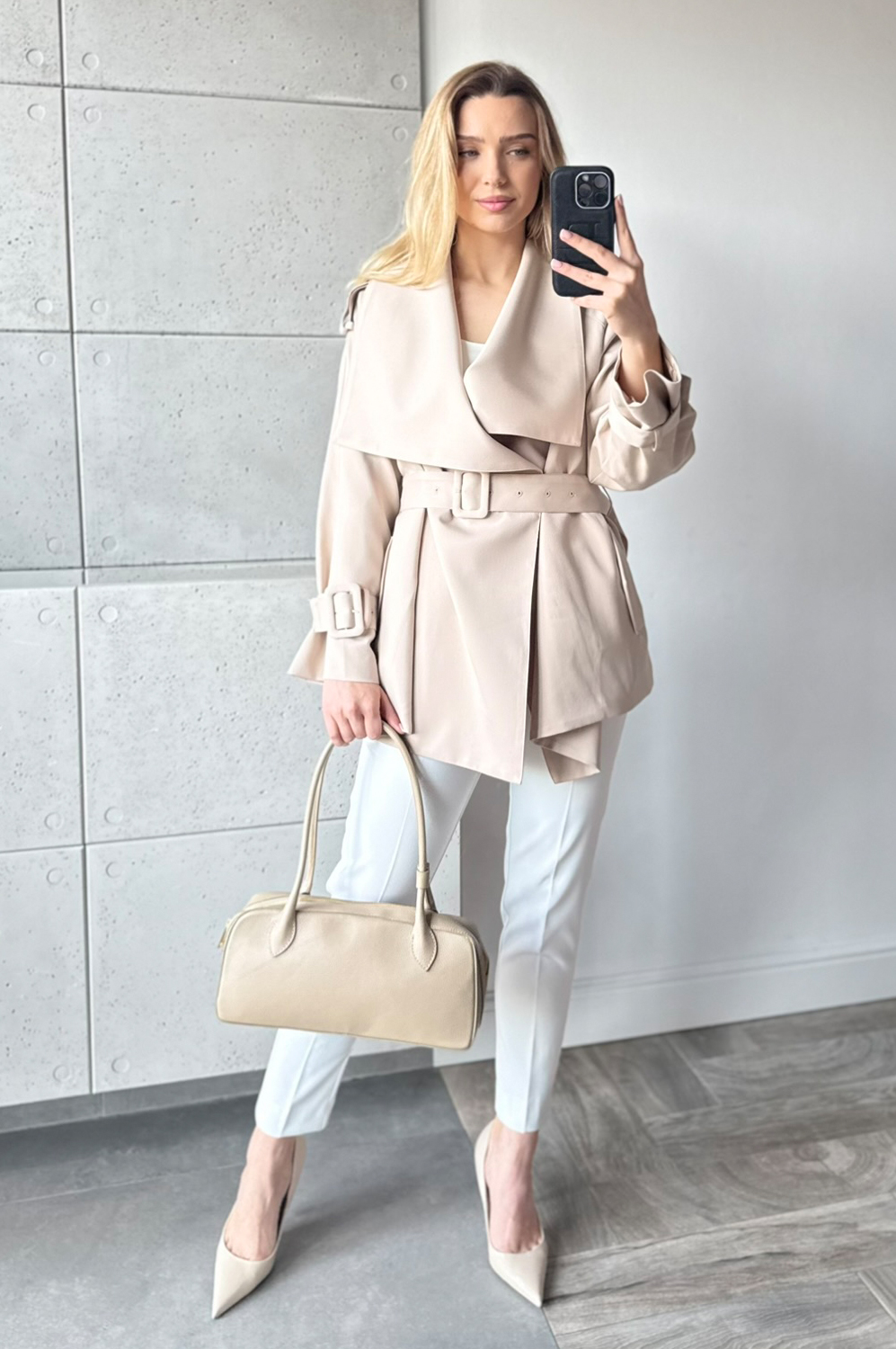Kurtka KLASYCZNA beż255.20 zł Najniższa cena towaru, która obowiązywała w okresie 30 dni przed zastosowaniem obniżki: 319.00 zł Opis Klasyczny płaszc do połowy bioderka, idealnie odnajdzie się zarówno w stylizacji wiosennej jak i póżniej na jesień.Paszcz jest przepięknie odszyty na podszewce dodatkowo posiada pasek. ZASADY KONSERWACJI : PRANIE W 30 STOPNIACH.