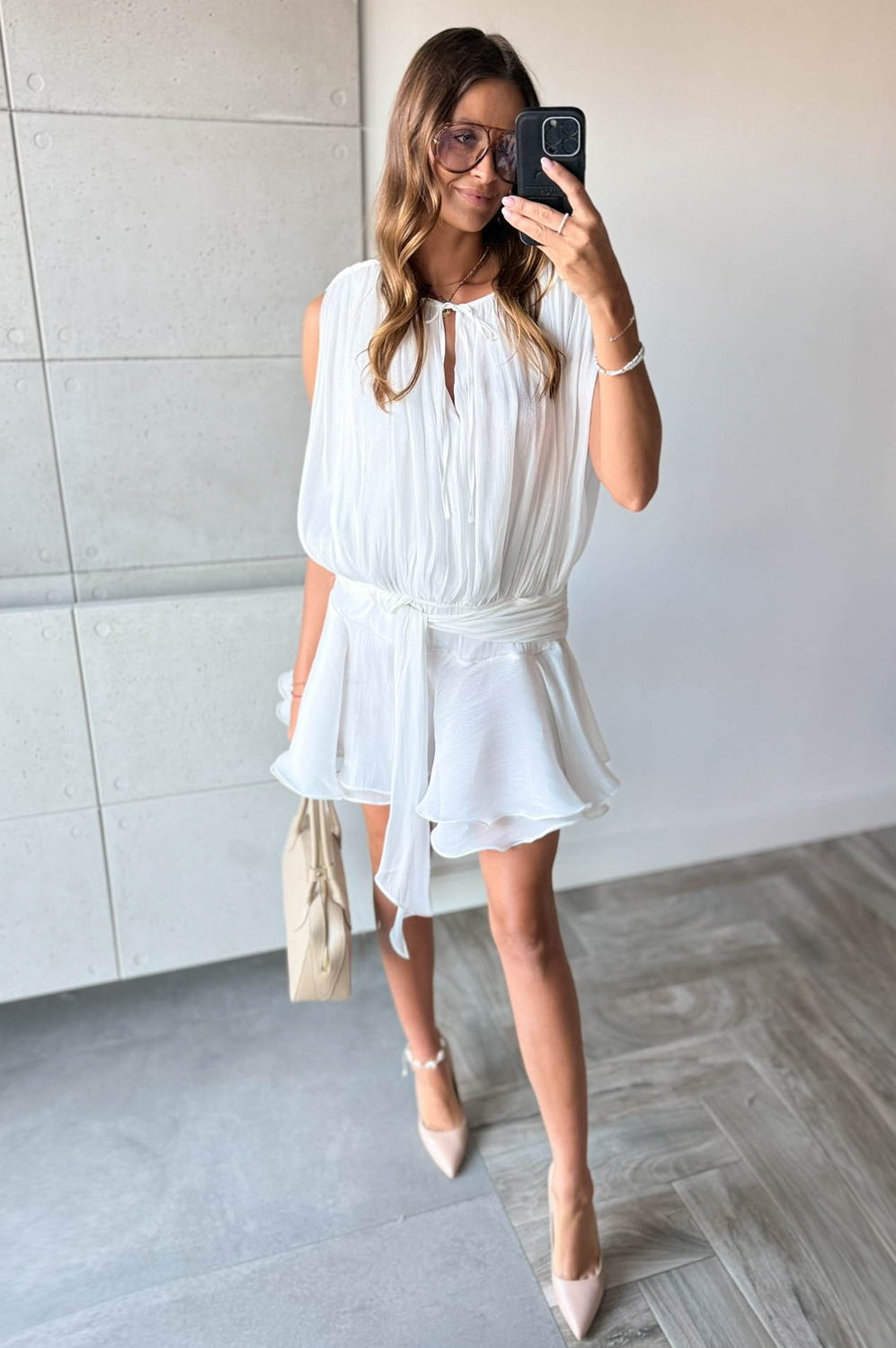 Sukienka TAFTA śmietanka249.00 zł Najniższa cena towaru, która obowiązywała w okresie 30 dni przed zastosowaniem obniżki: 249.00 zł Opis Zwiewna ,elegancka sukienka z marszczeniami na ramionach . Na boku posiada kryty zamek a w pasie wiązankę. WYMIARY:S/M długość 85 cm.biust do100cm. M/L długość 87cm.biust do 108cm SKŁAD:100% poliester MODELKA :Martyna-wzrost 170 cm, biodra 96 cm, pas 66 cm, biust 90 cm. ZASADY KONSERWACJI: PRAĆ W 30 STOPNIACH. Zwrot ZWROTY