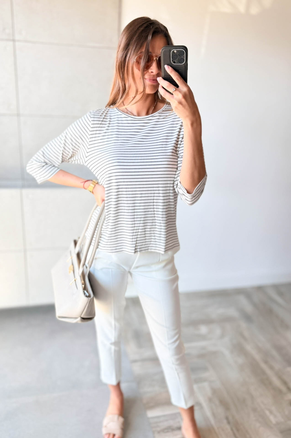 Bluzka w paseczki z dekoltem w łódkę.
