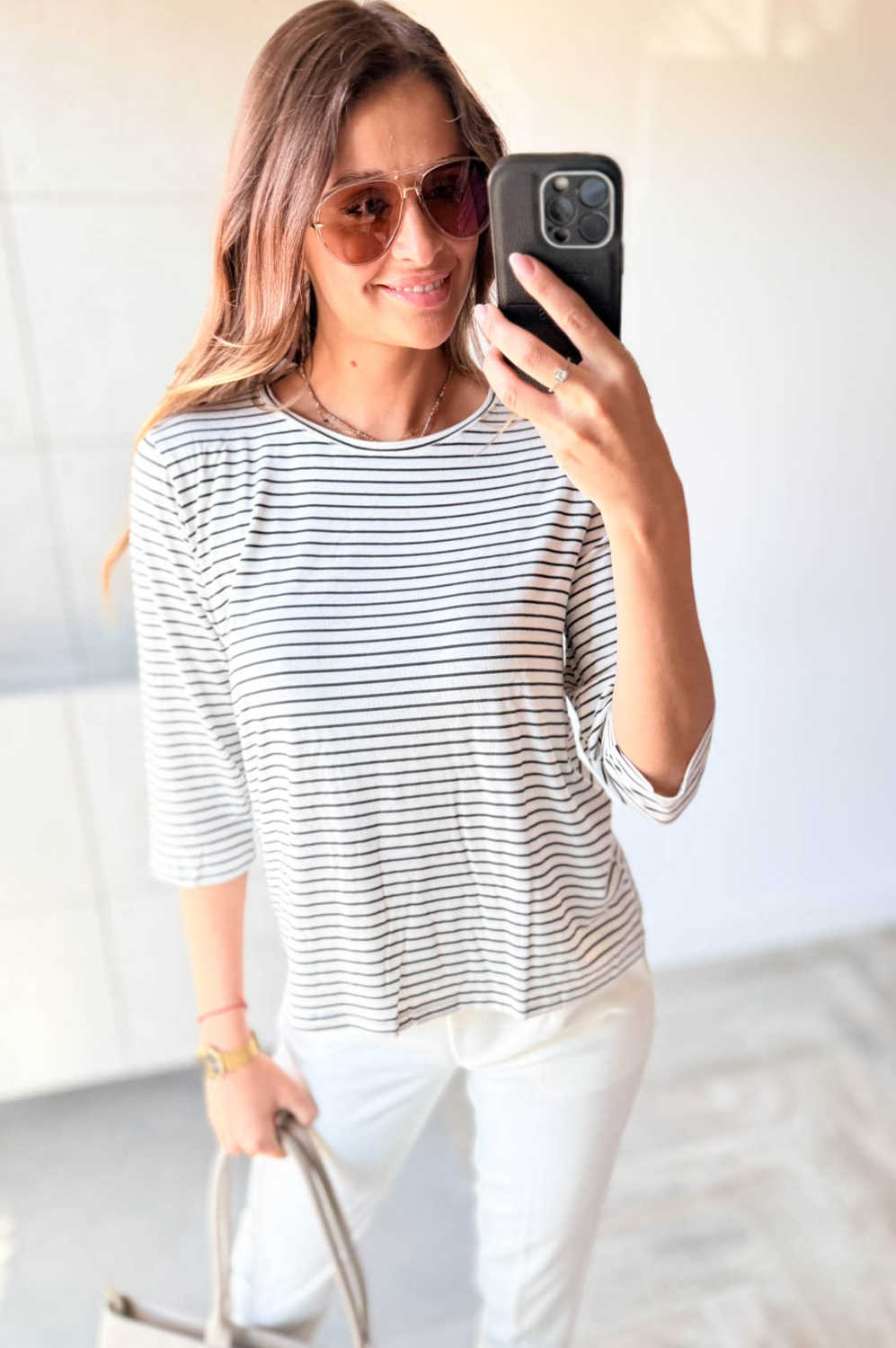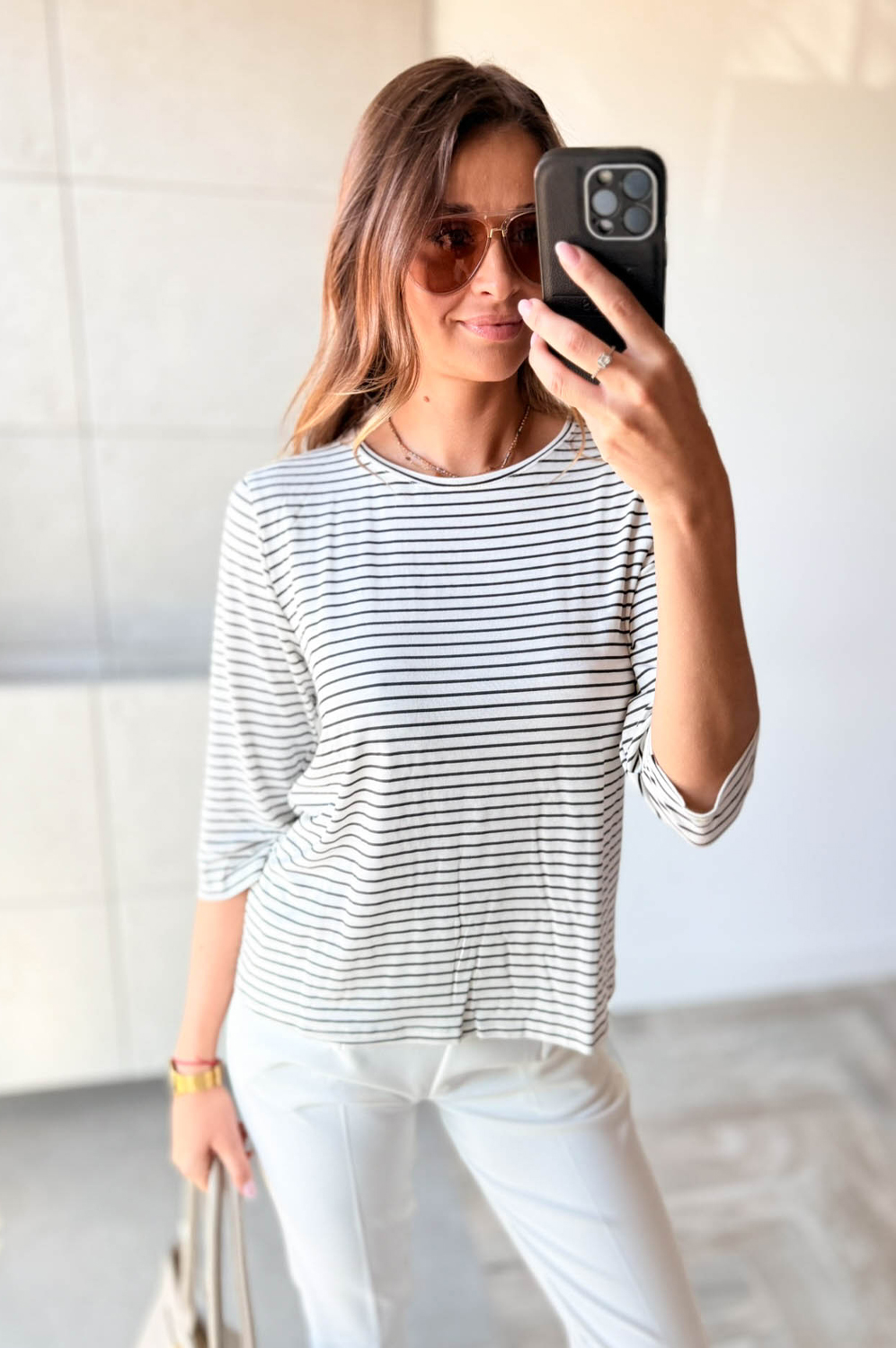 Bluzka DELIKATNE PASKI śmiatanka z czarnym