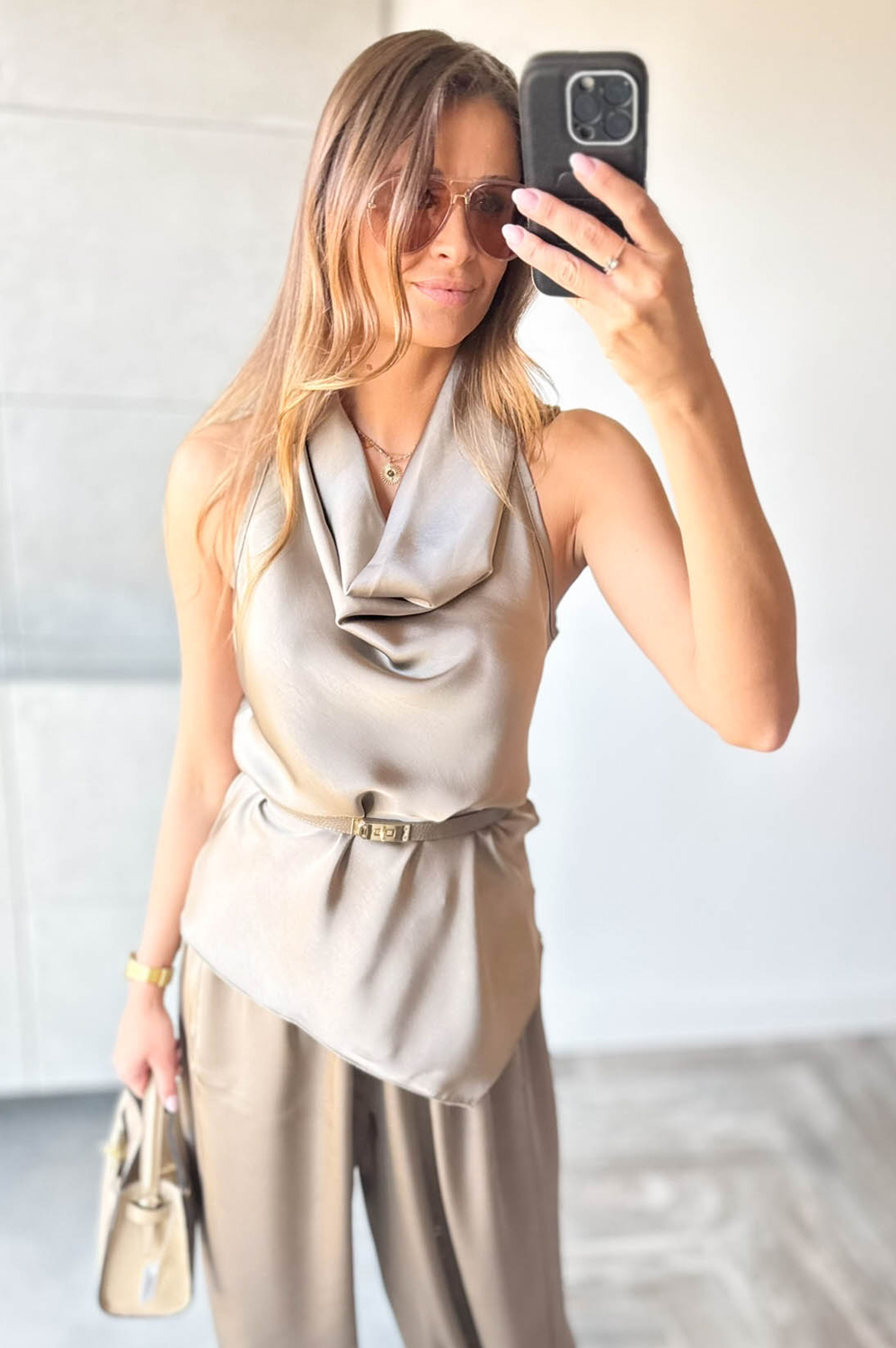 Bluzka TOP SATYNA LUX fango119.00 zł Najniższa cena towaru, która obowiązywała w okresie 30 dni przed zastosowaniem obniżki: 119.00 zł Opis Bluzka Top bez rękawów wykonany z tkaniny satynowej. Tkanina jest mięsista i przyjemna w dotyku, mało się gniecie. Jesli chcesz zakupić pasek zapytaj w wiadomości na Messenger. WYMIARY: Rozmiar uniwersalny. Pasuje na rozmiary XS S M L