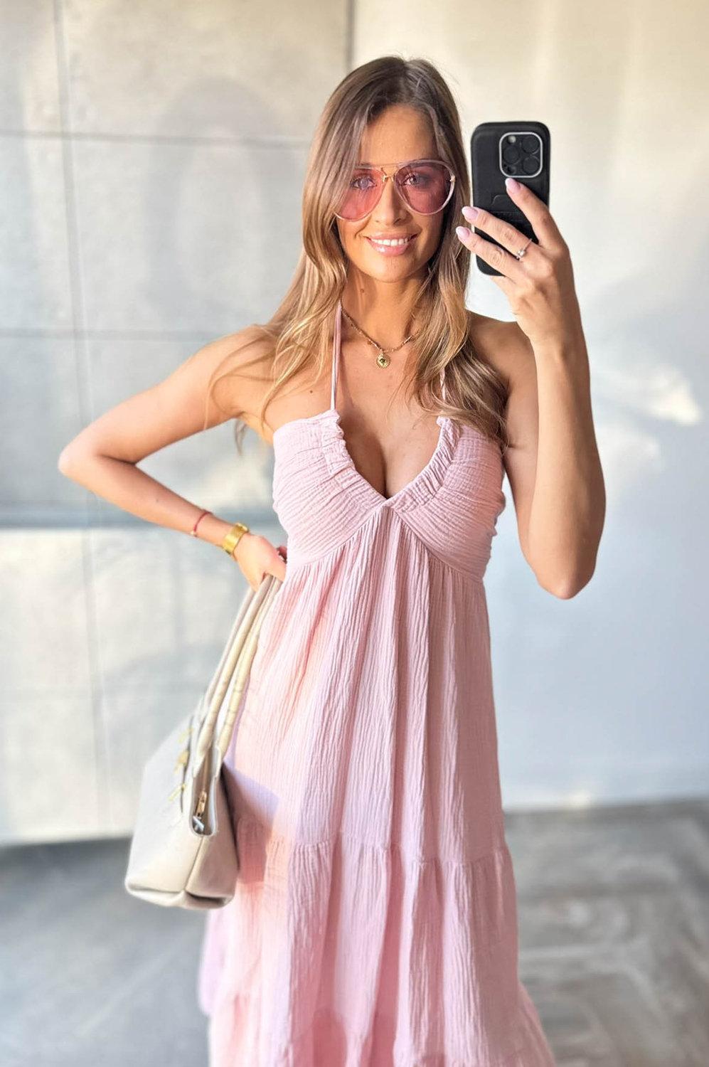 Sukienka BAWŁNIANA Z FALBANAMI pudrowy róż159.00 zł Najniższa cena towaru, która obowiązywała w okresie 30 dni przed zastosowaniem obniżki: 159.00 zł Opis Sukienka gorsetowa ,bawełniana z gumkami w biuście i wiązanką ,lużna na dole z falbanami. WYMIARY: długość-123cm,szerokość w biuście 68-100cmcm SKŁAD: 100% bawełna MODELKA: Modelka Agnieszka - wzrost 176cm, biodra 96cm, pas 70cm, biust 94cm ZASADY KONSERWACJI: PRAĆ W 30 STOPNIACH. Zwrot ZWROTY