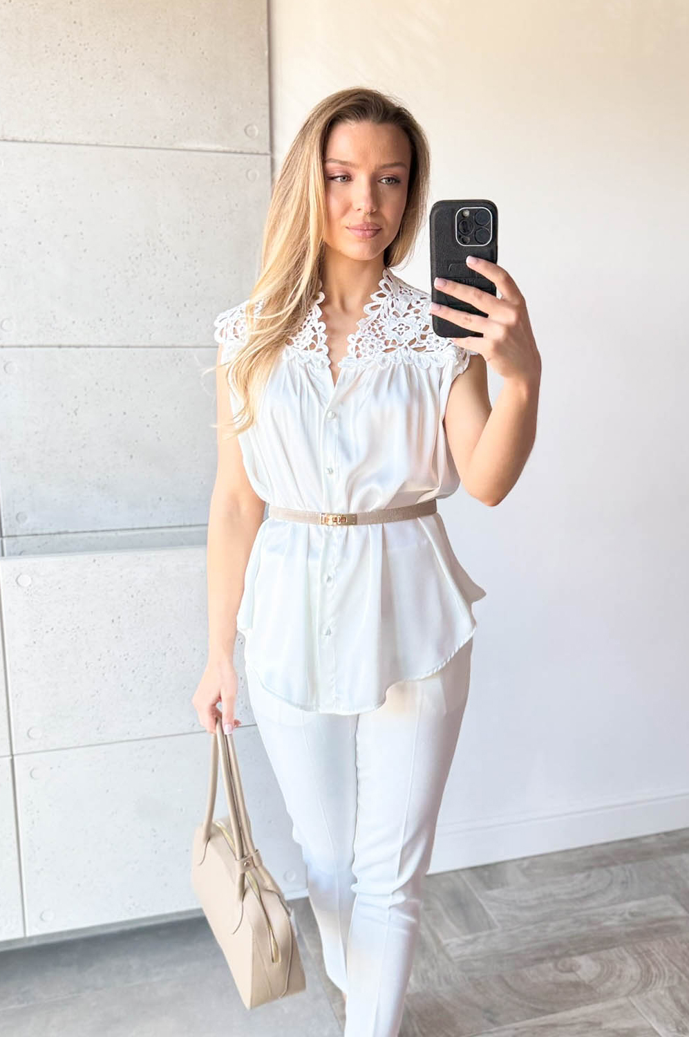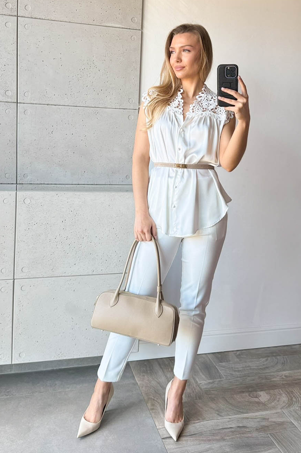 Bluzka GIPIURA & SATYNA śmietanka149.00 zł Najniższa cena towaru, która obowiązywała w okresie 30 dni przed zastosowaniem obniżki: 149.00 zł Opis Piękna bluzka satynowa połączona z gipiurą w formie karczka,zapinana na guziczki. WYMIARY: Rozmiar uniwersalny. Pasuje na rozmiary XS S M L