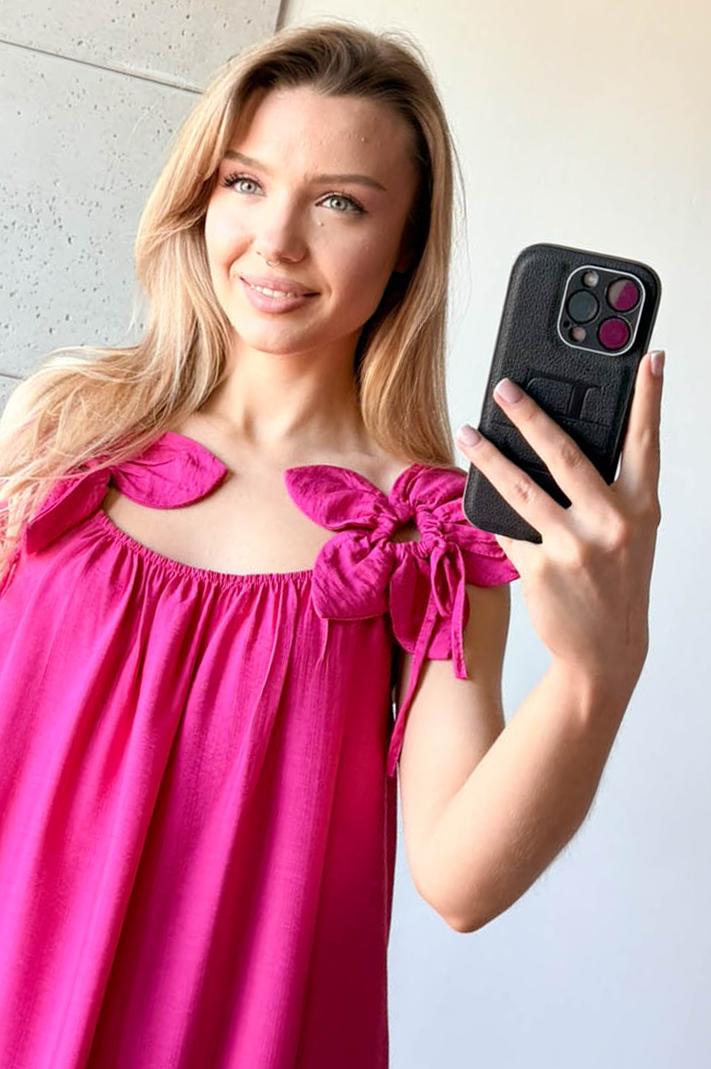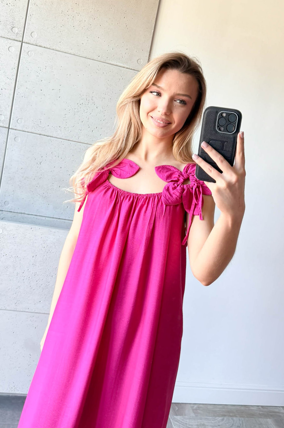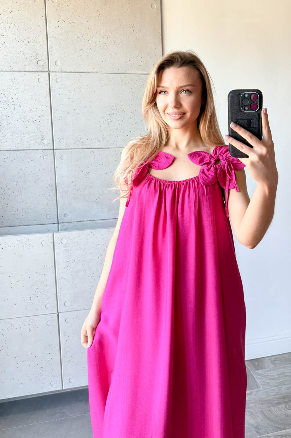 Sukienka KWIAT LOTOSU fuksja159.00 zł Najniższa cena towaru, która obowiązywała w okresie 30 dni przed zastosowaniem obniżki: 159.00 zł Opis Sukienka długa wiskozowa z ozdobą na ramiączkach w formie kwiata. Dekolt z delikatną gumką, tył na gładko. WYMIARY: długość 134cm, szer 140cm SKŁAD: 85%wiskoza,15% poliamid