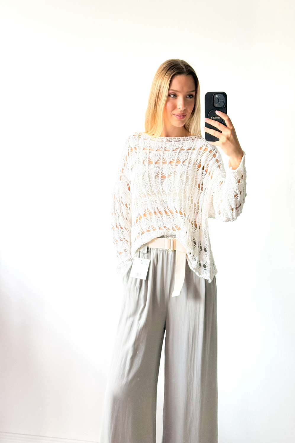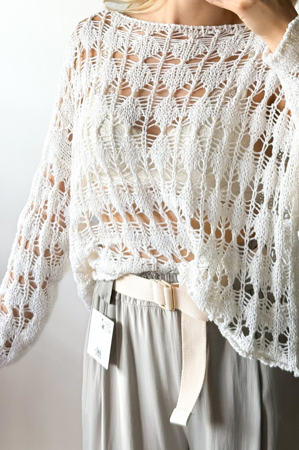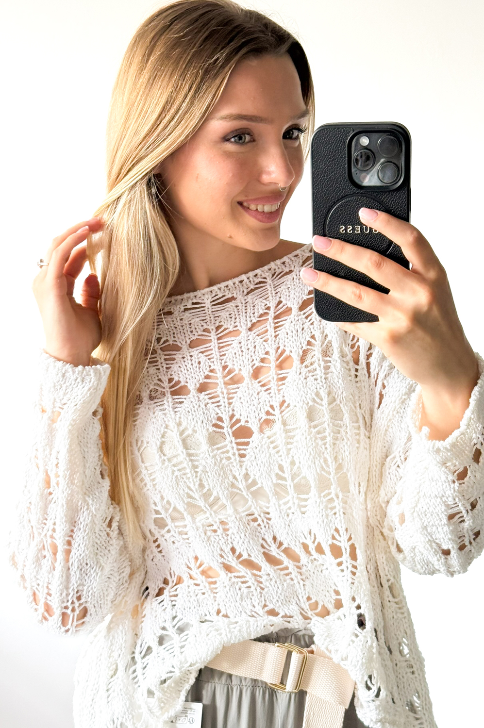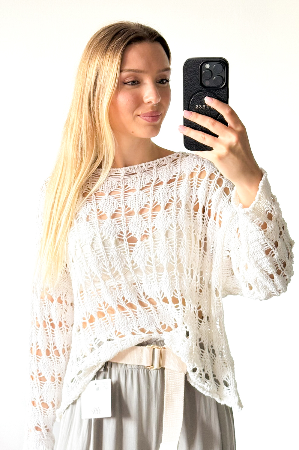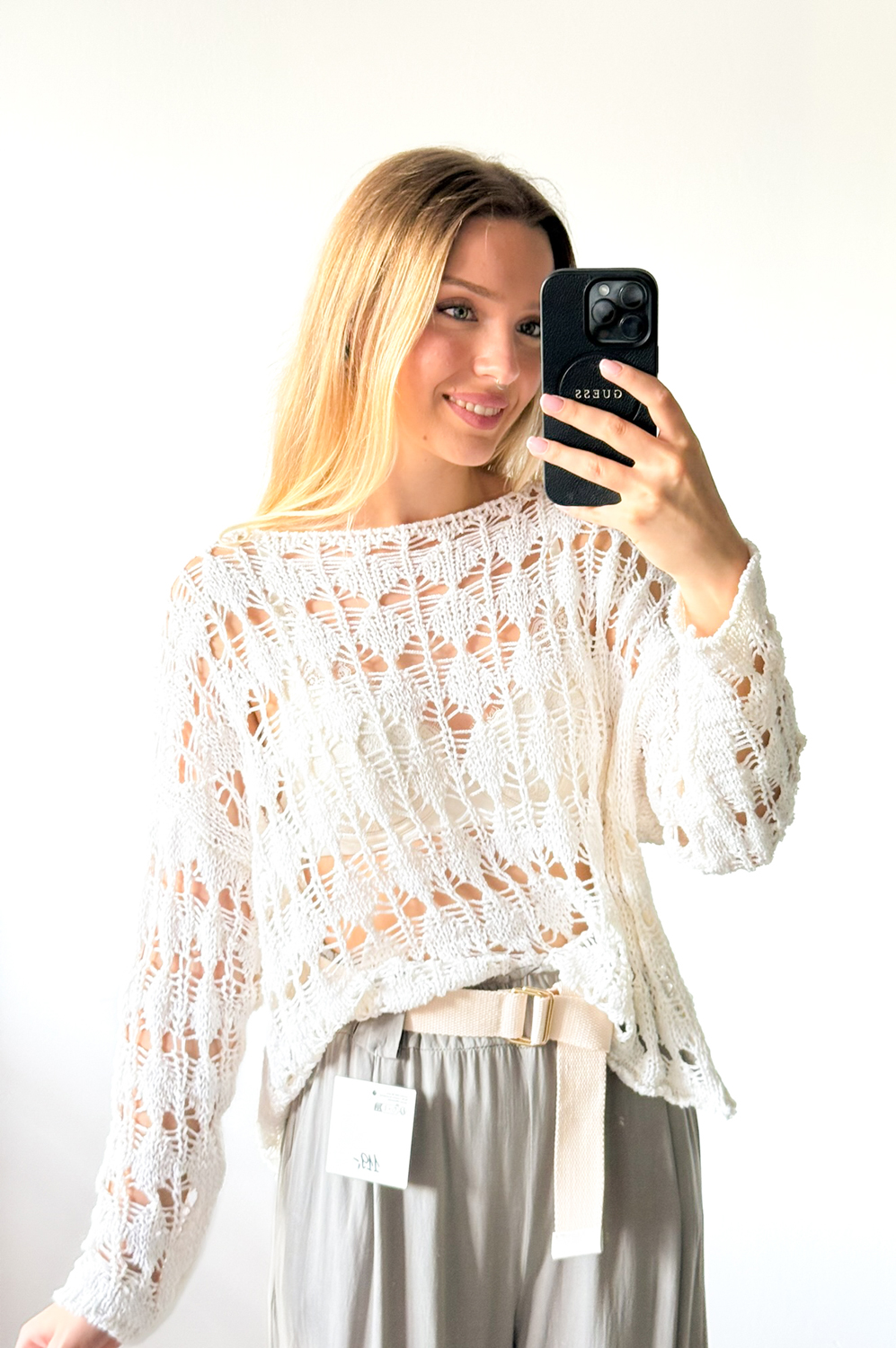 Sweterek AŻUR ECRU139.00 zł Najniższa cena towaru, która obowiązywała w okresie 30 dni przed zastosowaniem obniżki: 139.00 zł Opis Sweterek ażurowy