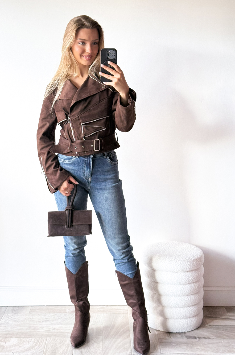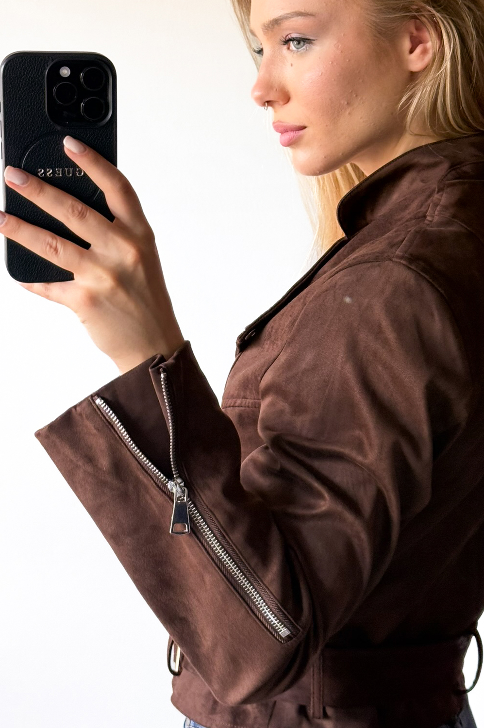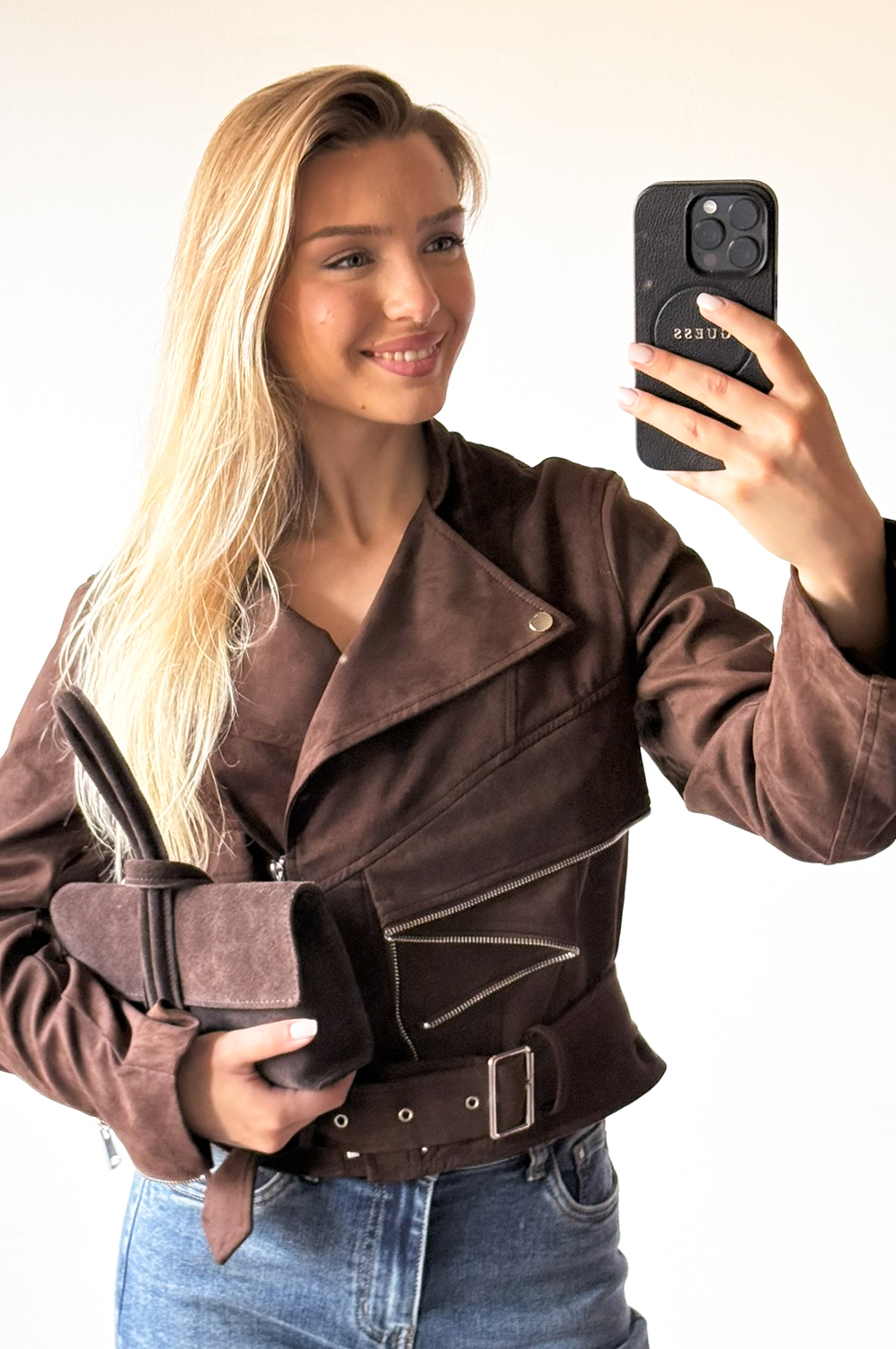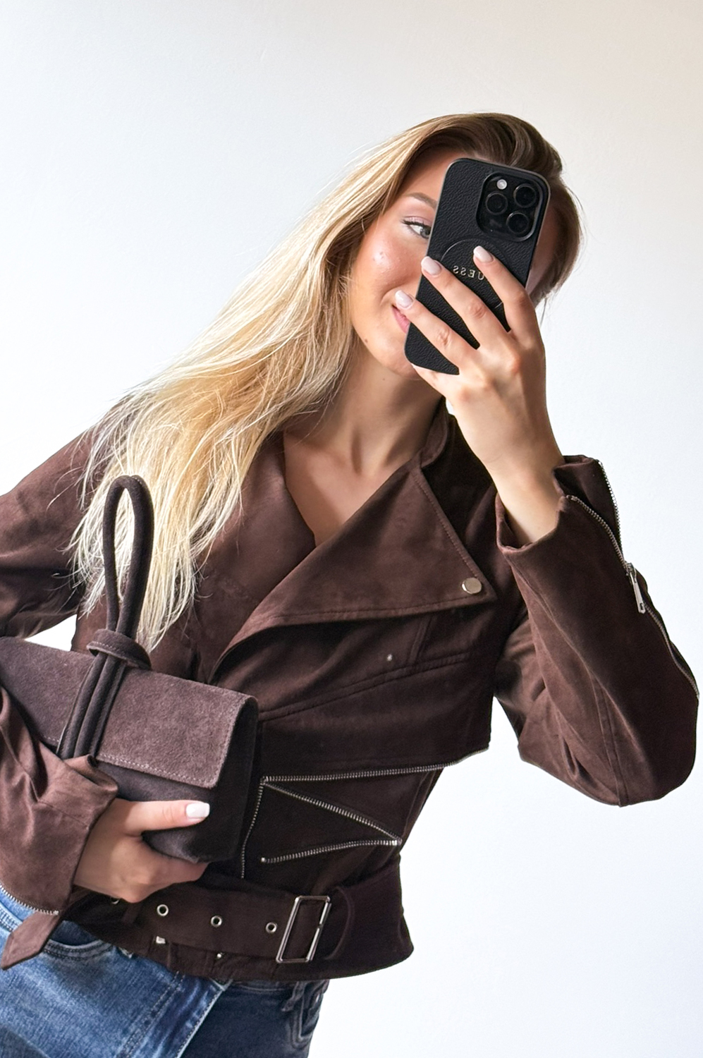 Kurtka ZAMSZOWA ZIPP czekolada